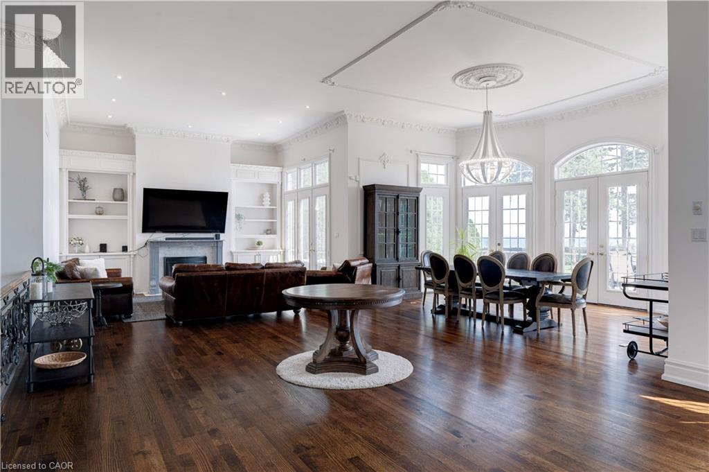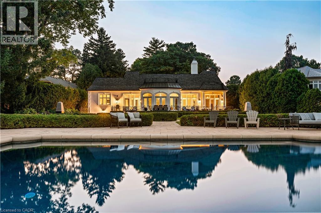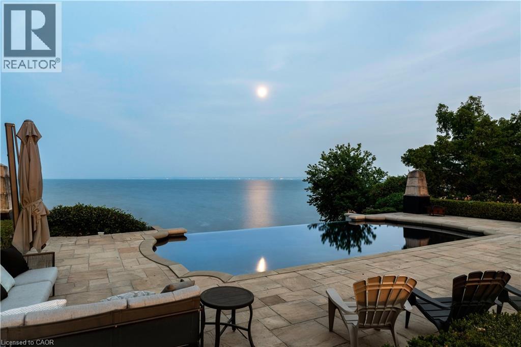 Welcome to 4410 Lakeshore Road, a stunning 1.2-acre lakefront estate in Burlington’s sought-after Shoreacres neighbourhood. This custom-built bungalow offers 5 bedrooms (3 on the main level, 2 on the lower level) and 4 bathrooms, with 4,365 sq. ft. of living space on the main floor alone. Inside, you'll find 12-foot ceilings, detailed crown mouldings, and an elegant yet inviting layout. The expansive great room and chef’s kitchen are perfect for entertaining, while the main-floor primary suite provides stunning lake views. The walk-up lower level features a second kitchen, spacious recreation room, and additional bedrooms—ideal for guests or multigenerational living. Step outside to your private oasis: a sparkling inground pool, lush landscaping, and direct access to Lake Ontario, perfect for serene mornings and captivating sunsets. With a detached 2-car garage and parking for 30+, this property offers the ultimate in both luxury and practicality. Located near top-rated schools, parks, and upscale amenities, this exclusive estate combines privacy with convenience in one of Burlington's finest communities. (id:24334)