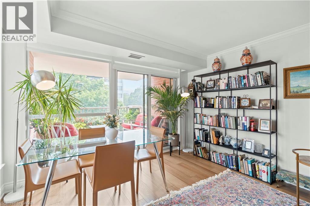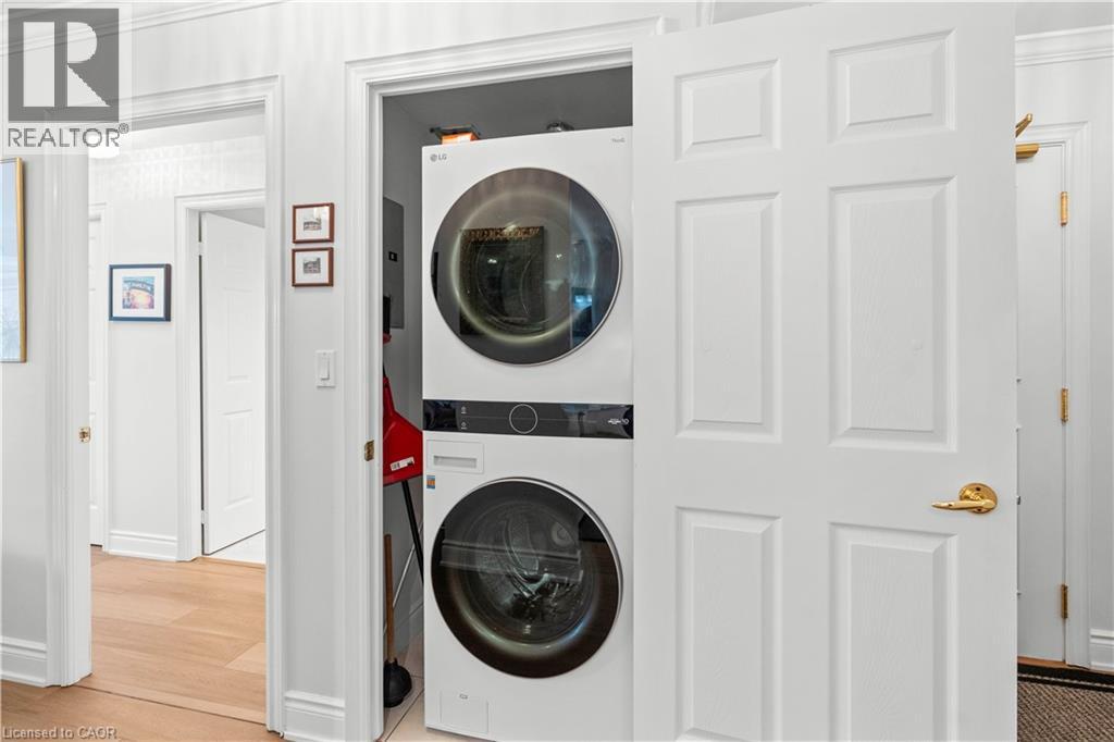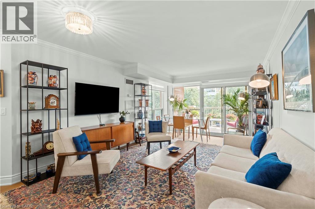 Welcome to refined condo living in the heart of downtown Burlington. This spacious 2-bedroom, 2-bathroom suite offers over 1,000 sq. ft. of beautifully updated living space, ideal for downsizers seeking comfort, convenience, and a lock-and-leave lifestyle. Enjoy a newly renovated kitchen and updated flooring in a bright, open-concept layout perfect for both entertaining and everyday living. Literally steps away from the waterfront, this condo is located directly across from Joseph Brant Hospital and just minutes to downtown Burlington’s shops, restaurants, cafes, grocery stores, and the waterfront, with highway access seconds away for effortless commuting. This well-managed building stands out with premium inclusions, including concierge and security on duty daily from 8:00 AM to 10:00 PM, as well as high-speed internet and Bell cable included in the maintenance fees at no extra cost. Residents also enjoy an indoor pool, hot tub, sauna gym, and entertainment/party room, along with one underground parking space and a locker. An exceptional opportunity to downsize without compromise in one of Burlington’s most sought-after locations. (id:24334)