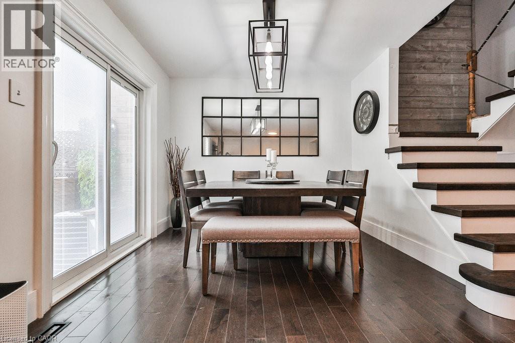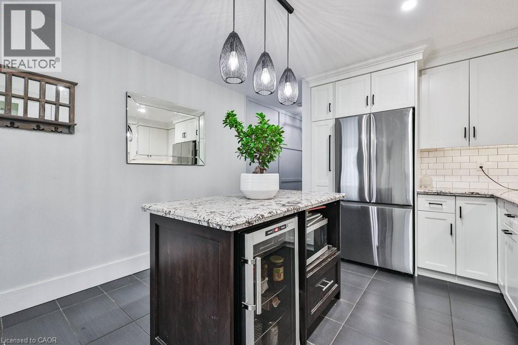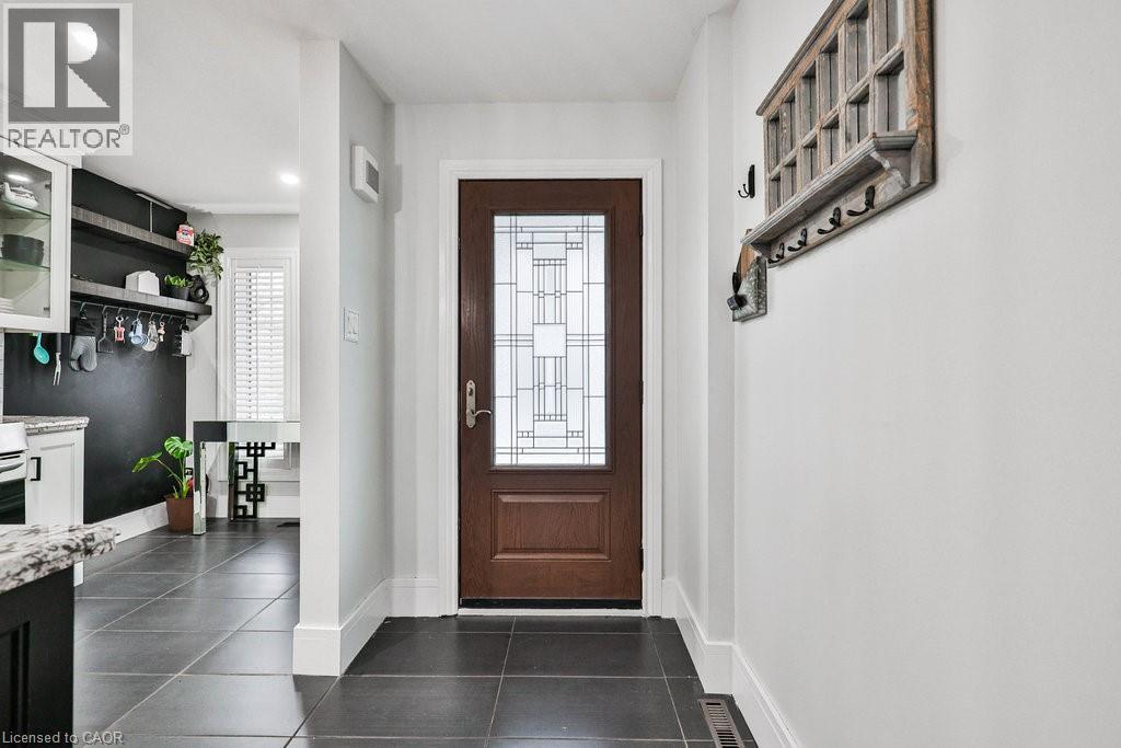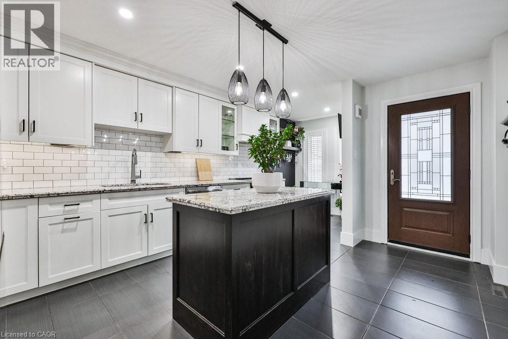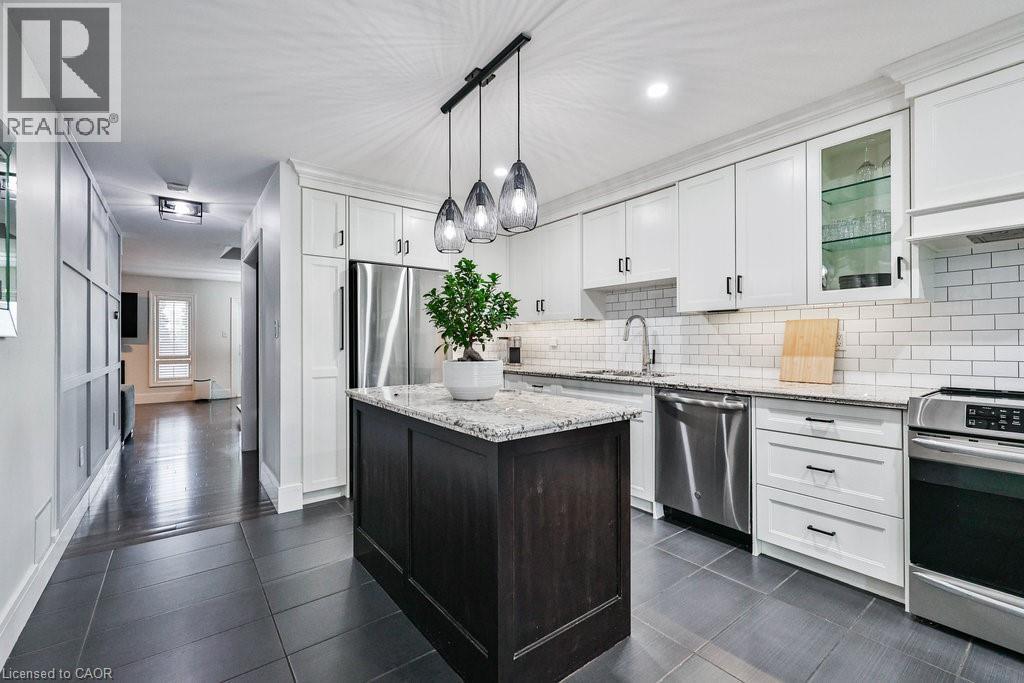Set in the heart of Longmoor, this modern townhome offers the perfect blend of comfort, style, and convenience for growing families. Located just steps from Appleby GO and close to every daily necessity, it provides an easy, connected lifestyle in one of Burlington’s most family-friendly neighbourhoods. A beautifully updated exterior sets the tone, featuring an interlocking stone pathway that extends your parking space, a newer garage door with built-in delivery camera (2021), a freshly redone and sealed driveway, and smart Philips Hue outdoor lighting for the front door, garage, and yard (2022). A Ring doorbell adds extra peace of mind. Inside, the main floor impresses with hardwood throughout and a thoughtfully upgraded, modern kitchen. Families will love the granite countertops, island seating, custom cabinetry, stainless steel appliances (2021), tile backsplash, designer lighting, and Delta VoiceIQ faucet with motion-sensor convenience (2022). The spacious living room invites cozy evenings with its electric fireplace (2021) and stylish wall panelling, while the open-concept dining area offers a seamless walkout to the rear yard. A chic 2pc powder room and contemporary open-style staircase complete this level. Upstairs, the serene primary suite features wall panelling, a barn-door accent, and a modern 3pc ensuite with a walk-in glass shower and heated floors—your own private retreat. Two additional well-sized bedrooms, each upgraded with soundproof wall panelling, provide the perfect spaces for kids, guests, or work-from-home needs, along with a 4pc main bath. The fully fenced backyard is designed for effortless outdoor living, offering a wood deck, patio, and a dedicated garden area—ideal for family BBQs, playtime, and weekend relaxation. A stylish, smart-enabled home in a prime Burlington location—this is the upgrade your family has been waiting for. (id:24334)