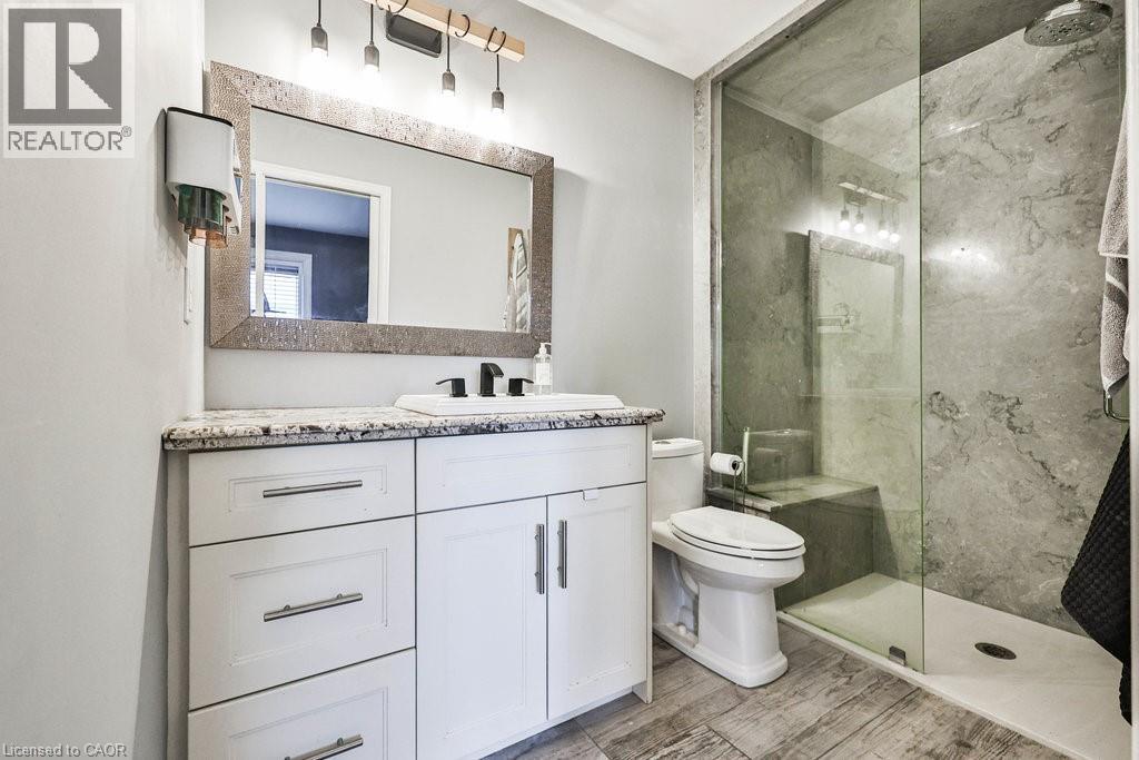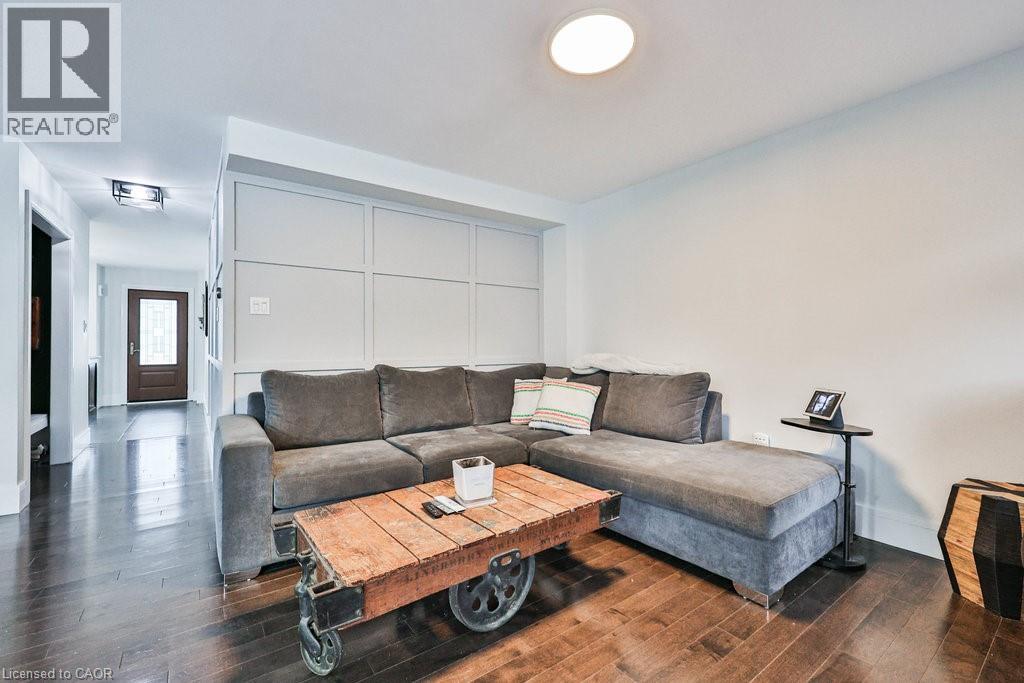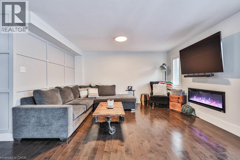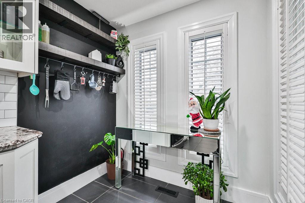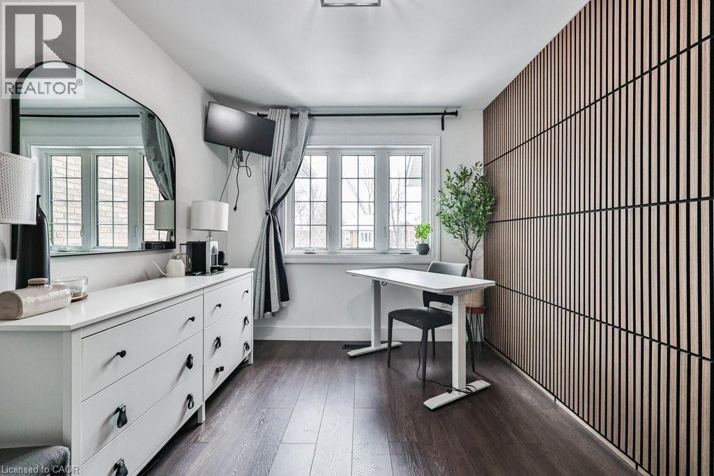 Set in the heart of Longmoor, this modern townhome offers the perfect blend of comfort, style, and convenience for growing families. Located just steps from Appleby GO and close to every daily necessity, it provides an easy, connected lifestyle in one of Burlington’s most family-friendly neighbourhoods. A beautifully updated exterior sets the tone, featuring an interlocking stone pathway that extends your parking space, a newer garage door with built-in delivery camera (2021), a freshly redone and sealed driveway, and smart Philips Hue outdoor lighting for the front door, garage, and yard (2022). A Ring doorbell adds extra peace of mind. Inside, the main floor impresses with hardwood throughout and a thoughtfully upgraded, modern kitchen. Families will love the granite countertops, island seating, custom cabinetry, stainless steel appliances (2021), tile backsplash, designer lighting, and Delta VoiceIQ faucet with motion-sensor convenience (2022). The spacious living room invites cozy evenings with its electric fireplace (2021) and stylish wall panelling, while the open-concept dining area offers a seamless walkout to the rear yard. A chic 2pc powder room and contemporary open-style staircase complete this level. Upstairs, the serene primary suite features wall panelling, a barn-door accent, and a modern 3pc ensuite with a walk-in glass shower and heated floors—your own private retreat. Two additional well-sized bedrooms, each upgraded with soundproof wall panelling, provide the perfect spaces for kids, guests, or work-from-home needs, along with a 4pc main bath. The fully fenced backyard is designed for effortless outdoor living, offering a wood deck, patio, and a dedicated garden area—ideal for family BBQs, playtime, and weekend relaxation. A stylish, smart-enabled home in a prime Burlington location—this is the upgrade your family has been waiting for. (id:24334)