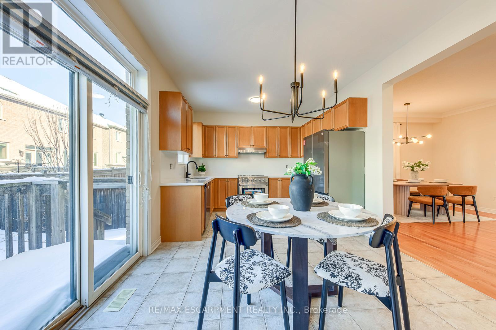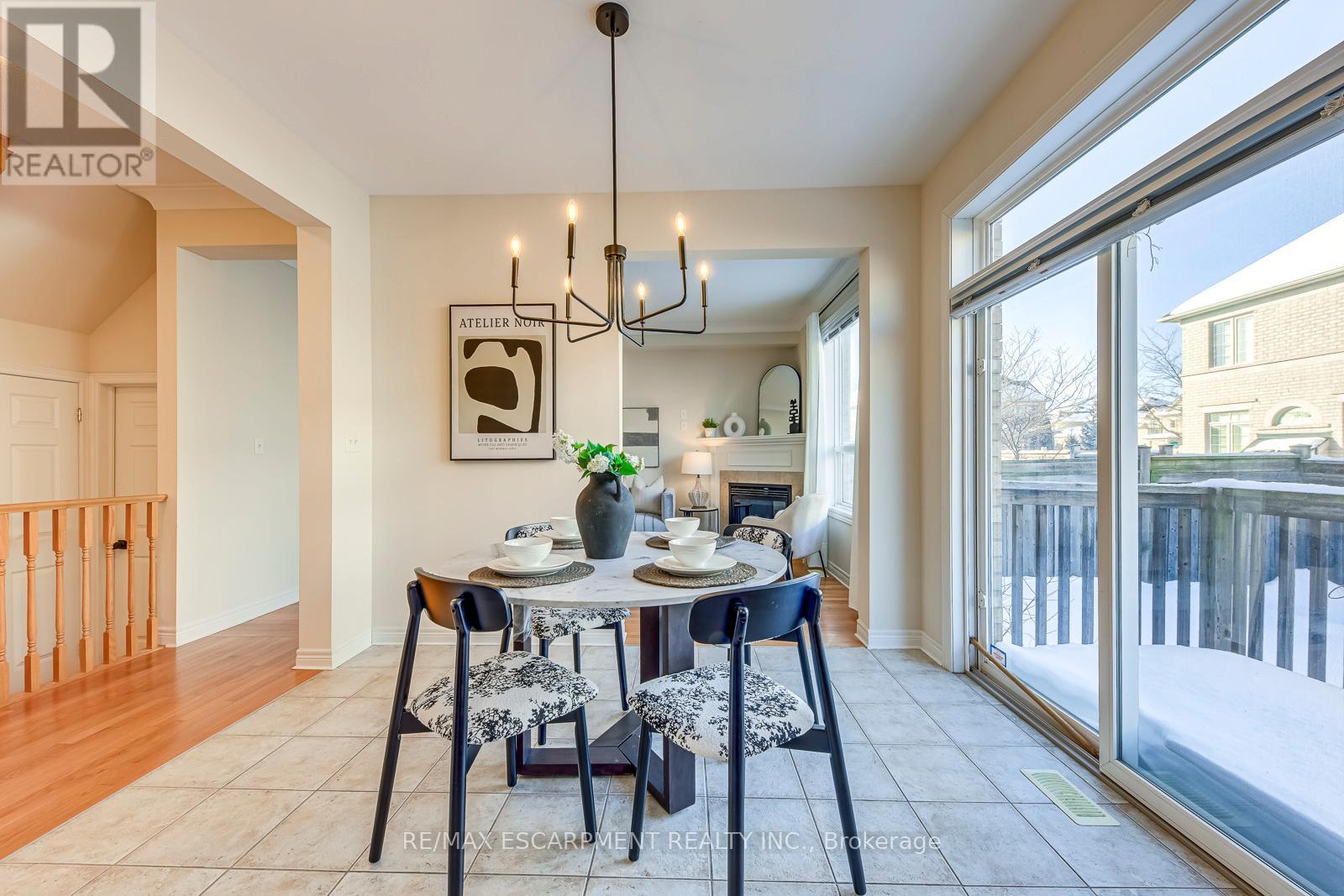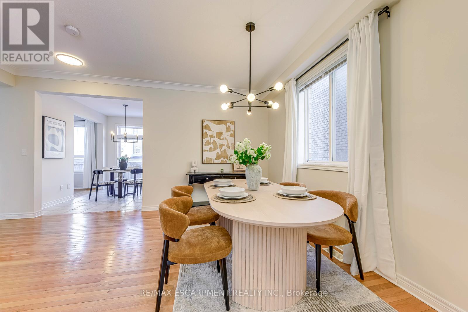 Located in the heart of Burlington's highly sought-after Alton Village, this beautifully maintained one-owner 3-bedroom detached home with a double car garage offers approximately 1,911 sq ft above grade and a highly functional layout ideal for families and professionals alike. The main floor features 9-foot ceilings, hardwood flooring throughout, a spacious formal dining room, and a bright eat-in kitchen showcasing new premium stainless steel appliances, quartz countertops with matching backsplash, and a stainless steel under-mount sink set beneath a sun-filled window. The open-concept family room is anchored by a cozy gas fireplace and overlooks a private, fully fenced backyard-perfect for entertaining or everyday family living. An upgraded hardwood staircase leads to the second level, where the oversized primary bedroom impresses with a sitting area, walk-in closet, and a large 4-piece ensuite complete with a soaking tub and walk-in shower. Two additional bright and generously sized bedrooms provide excellent flexibility, with one offering ensuite access to the second 4-piece bathroom. A versatile second-floor den/family room can easily be converted into a fourth bedroom, home office, or media space. Additional highlights include LED lighting throughout, an owned water heater, and a brand-new roof to be installed in March 2026 for added peace of mind. Ideally situated close to top-rated schools, parks, trails, shopping, restaurants, and all everyday amenities, with easy access to major highways and transit, this move-in-ready home delivers comfort, quality, and exceptional long-term value in one of Burlington's most family-friendly communities. (id:24334)