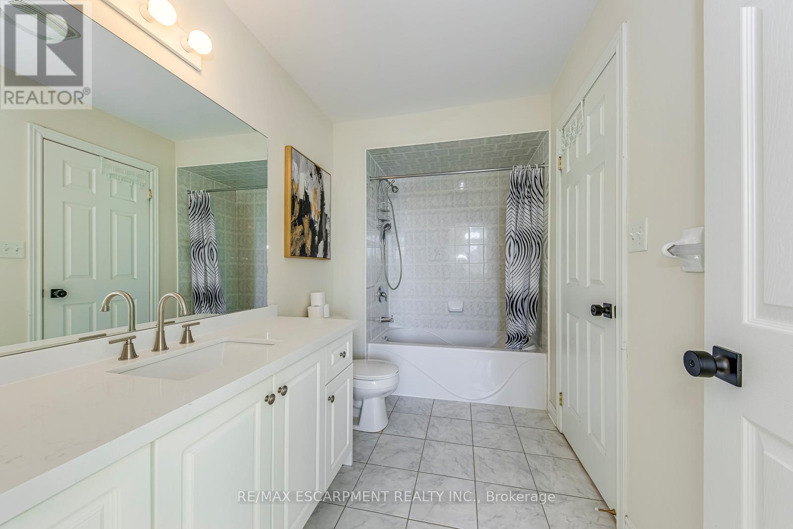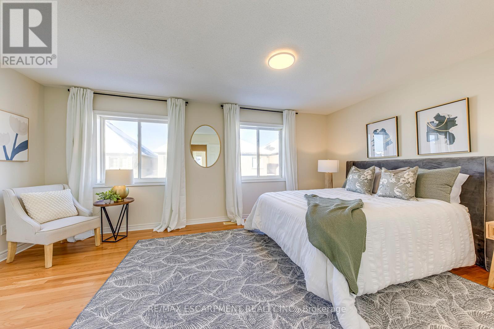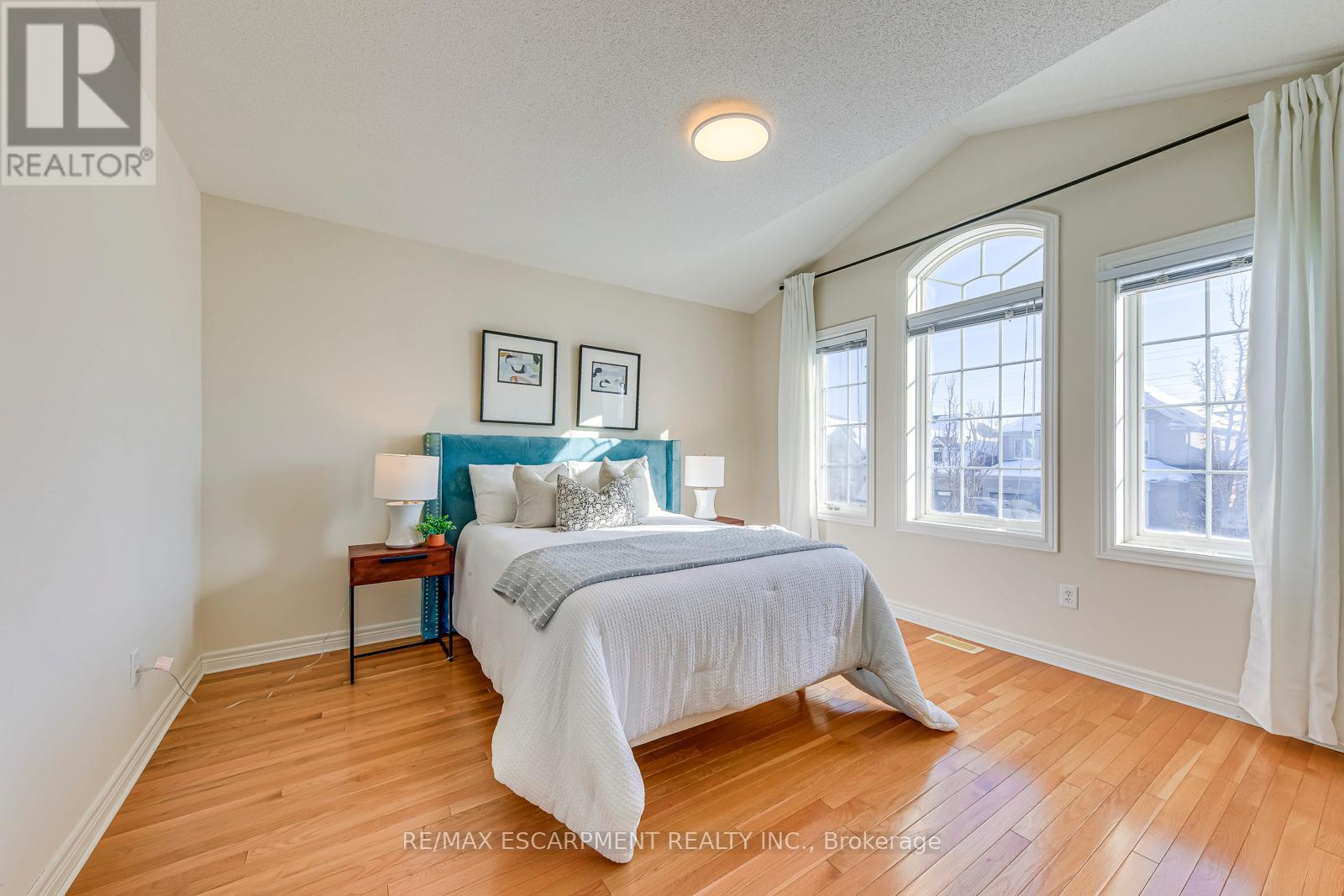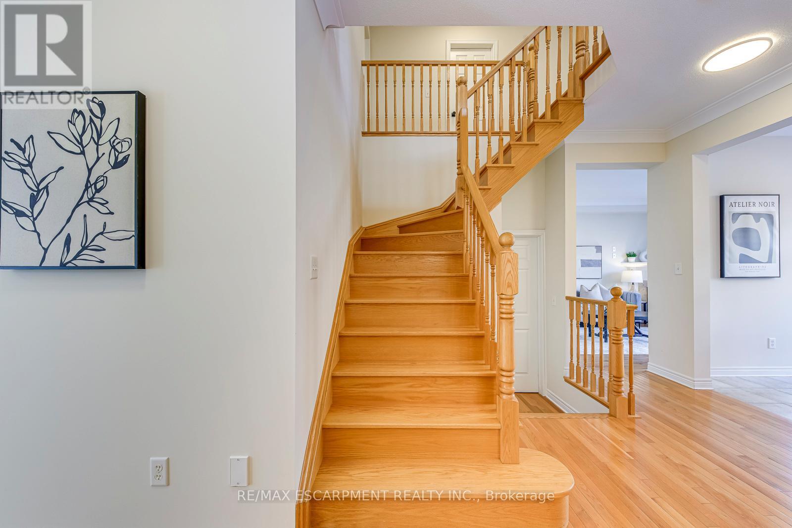 Located in the heart of Burlington's highly sought-after Alton Village, this beautifully maintained one-owner 3-bedroom detached home with a double car garage offers approximately 1,911 sq ft above grade and a highly functional layout ideal for families and professionals alike. The main floor features 9-foot ceilings, hardwood flooring throughout, a spacious formal dining room, and a bright eat-in kitchen showcasing new premium stainless steel appliances, quartz countertops with matching backsplash, and a stainless steel under-mount sink set beneath a sun-filled window. The open-concept family room is anchored by a cozy gas fireplace and overlooks a private, fully fenced backyard-perfect for entertaining or everyday family living. An upgraded hardwood staircase leads to the second level, where the oversized primary bedroom impresses with a sitting area, walk-in closet, and a large 4-piece ensuite complete with a soaking tub and walk-in shower. Two additional bright and generously sized bedrooms provide excellent flexibility, with one offering ensuite access to the second 4-piece bathroom. A versatile second-floor den/family room can easily be converted into a fourth bedroom, home office, or media space. Additional highlights include LED lighting throughout, an owned water heater, and a brand-new roof to be installed in March 2026 for added peace of mind. Ideally situated close to top-rated schools, parks, trails, shopping, restaurants, and all everyday amenities, with easy access to major highways and transit, this move-in-ready home delivers comfort, quality, and exceptional long-term value in one of Burlington's most family-friendly communities. (id:24334)