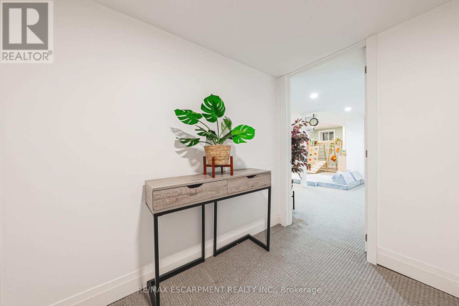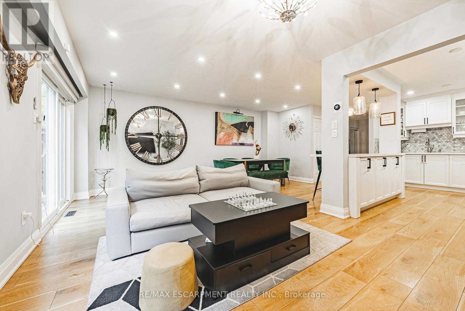 Welcome to 4201 Longmoor Drive #5 - where modern living meets serene surroundings. This beautifully renovated townhome backs directly onto Iroquois Park, offering peaceful views and the perfect spot to watch the kids play while relaxing on your brand-new deck. Step inside to an open-concept main floor featuring a bright living and dining area, updated windows, and a sliding door that opens to a fully fenced backyard. The stylish kitchen boasts abundant white cabinetry, quartz countertops, and stainless steel appliances - perfect for cooking and entertaining. Upstairs, you'll find three spacious bedrooms, including a primary suite complete with his-and-hers closets and a stunning 3-piece ensuite featuring a walk-in shower and quartz vanity. The oversized main bathroom offers a double-sink vanity and deep tub, ideal for family living. The fully finished basement provides even more living space - with a versatile bedroom or office, a recreation room, ample storage, and a dedicated laundry area. Recent updates include a full renovation in 2021, a new roof (2024), a new deck (2024), and a new dryer (2025). Located just steps from the Burlington bike path and within walking distance to schools, parks, and everyday amenities, this home combines convenience with tranquility. A fantastic opportunity for first-time buyers, investors, or those looking to downsize - move-in ready and beautifully updated! LETS GET MOVING! (id:24334)