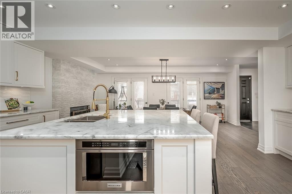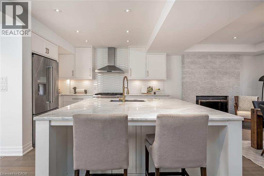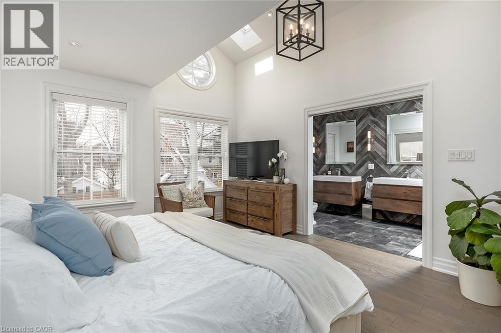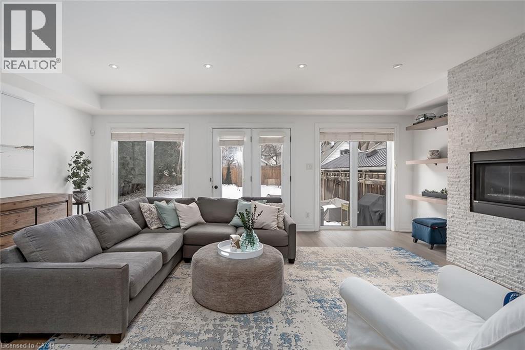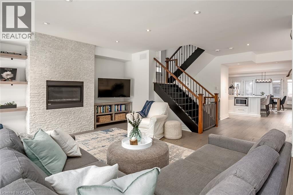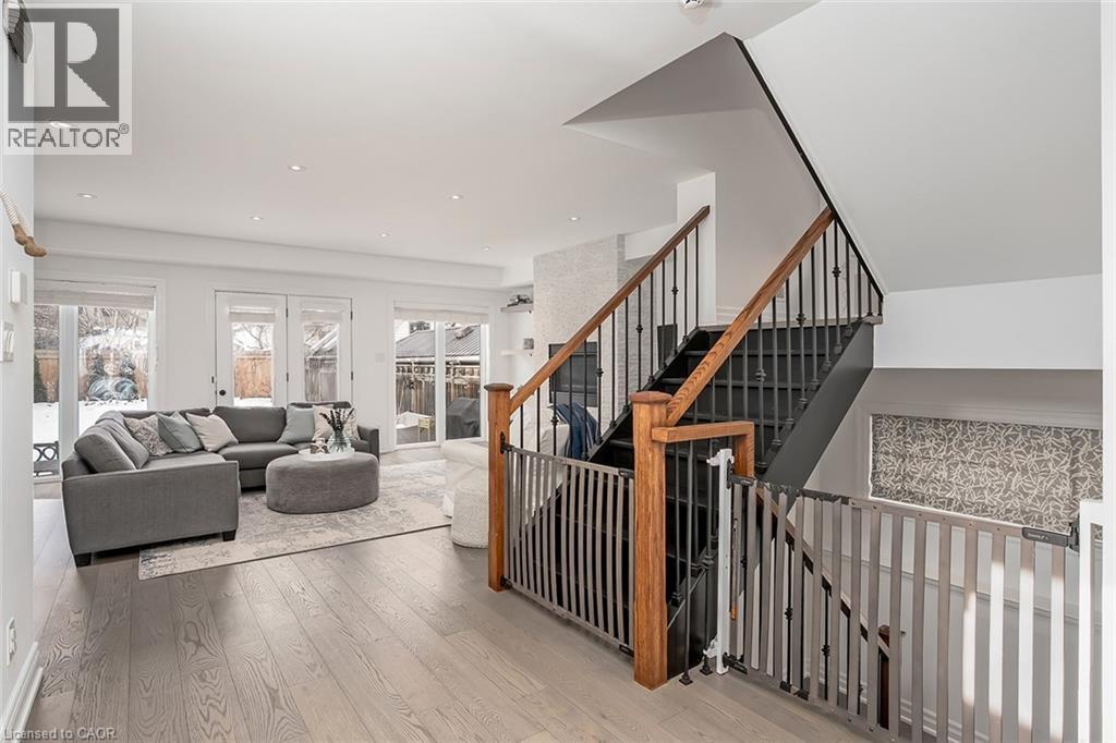 Beautifully renovated and ideally located in the heart of downtown Burlington, this exceptional four bedroom, three and a half bathroom home offers over 3,000 square feet of thoughtfully designed living space on an impressive 48 x 131 foot lot, a rare opportunity in one of the city’s most sought after neighbourhoods. The covered front porch welcomes you with warmth and charm, the perfect place to enjoy your morning coffee or unwind in the evening. A true bonus for downtown living, the home offers parking for four vehicles, including one in the garage and three on the private driveway. Inside, rich hardwood flooring flows throughout, creating an elegant and cohesive feel. The custom designed kitchen is the heart of the home, featuring premium finishes, abundant cabinetry, and a layout ideal for everyday living and entertaining. A dedicated coffee bar with its own sink adds convenience and character. Two gas fireplaces anchor the main level, one in the dining room for intimate gatherings and another in the family room, creating a warm and inviting space to relax. Upstairs, four spacious bedrooms provide comfort and flexibility. The primary suite is a rare find for the area, offering a walk in closet and a beautifully appointed ensuite. Additional bathrooms have been tastefully updated with style and function in mind. The finished lower level adds valuable living space with a bright family room and a well appointed three piece bathroom, ideal for guests, recreation, or a private retreat. The professionally landscaped backyard makes full use of the 131 foot depth, offering excellent space to entertain or enjoy quiet outdoor living. Just steps to downtown Burlington, restaurants, boutiques, cafés, Spencer Smith Park, and the waterfront are all within walking distance. With quality renovations, generous space, private parking, and exceptional walkability, this home delivers the best of downtown Burlington living. (id:24334)