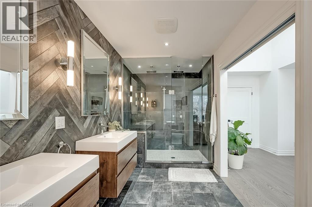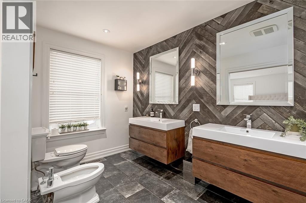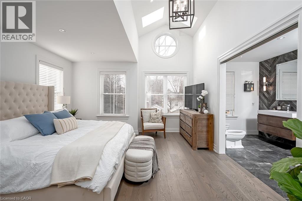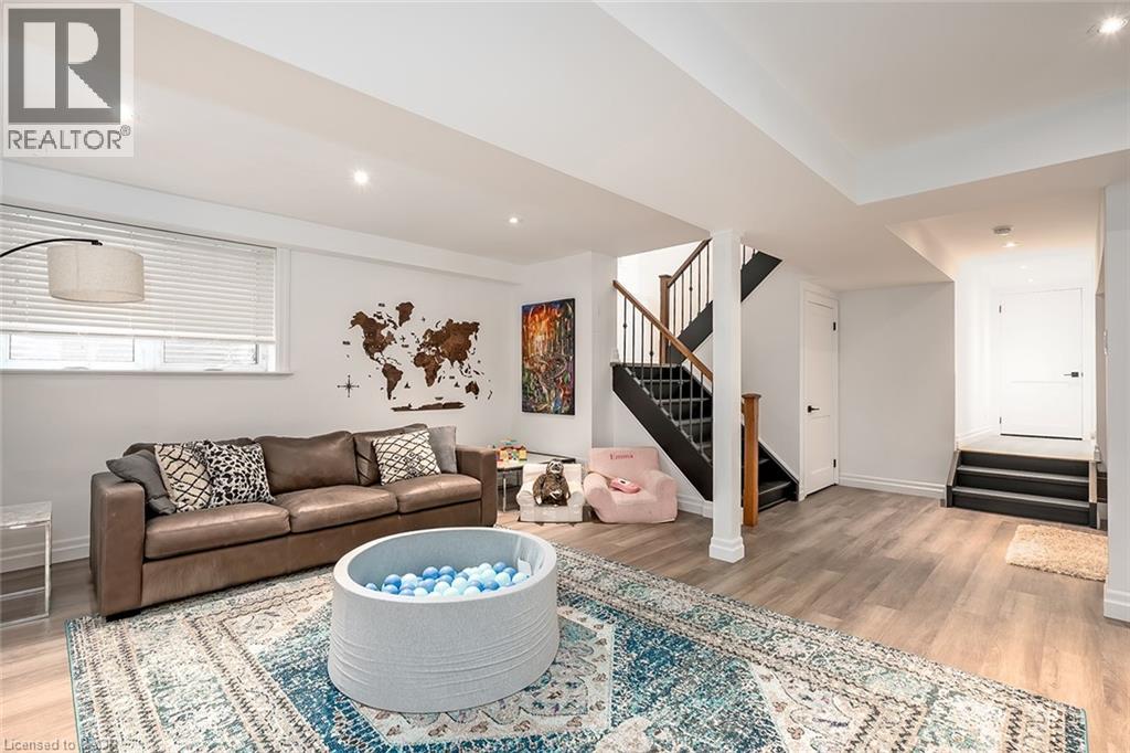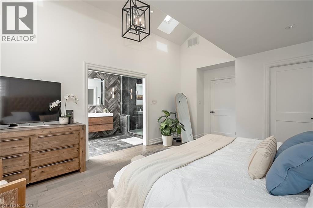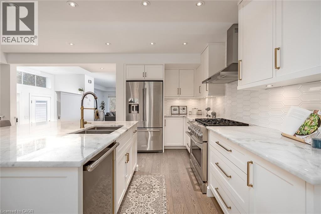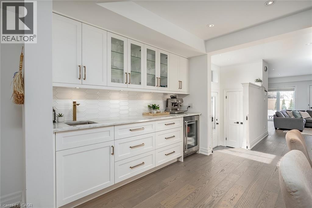 Beautifully renovated and ideally located in the heart of downtown Burlington, this exceptional four bedroom, three and a half bathroom home offers over 3,000 square feet of thoughtfully designed living space on an impressive 48 x 131 foot lot, a rare opportunity in one of the city’s most sought after neighbourhoods. The covered front porch welcomes you with warmth and charm, the perfect place to enjoy your morning coffee or unwind in the evening. A true bonus for downtown living, the home offers parking for four vehicles, including one in the garage and three on the private driveway. Inside, rich hardwood flooring flows throughout, creating an elegant and cohesive feel. The custom designed kitchen is the heart of the home, featuring premium finishes, abundant cabinetry, and a layout ideal for everyday living and entertaining. A dedicated coffee bar with its own sink adds convenience and character. Two gas fireplaces anchor the main level, one in the dining room for intimate gatherings and another in the family room, creating a warm and inviting space to relax. Upstairs, four spacious bedrooms provide comfort and flexibility. The primary suite is a rare find for the area, offering a walk in closet and a beautifully appointed ensuite. Additional bathrooms have been tastefully updated with style and function in mind. The finished lower level adds valuable living space with a bright family room and a well appointed three piece bathroom, ideal for guests, recreation, or a private retreat. The professionally landscaped backyard makes full use of the 131 foot depth, offering excellent space to entertain or enjoy quiet outdoor living. Just steps to downtown Burlington, restaurants, boutiques, cafés, Spencer Smith Park, and the waterfront are all within walking distance. With quality renovations, generous space, private parking, and exceptional walkability, this home delivers the best of downtown Burlington living. (id:24334)