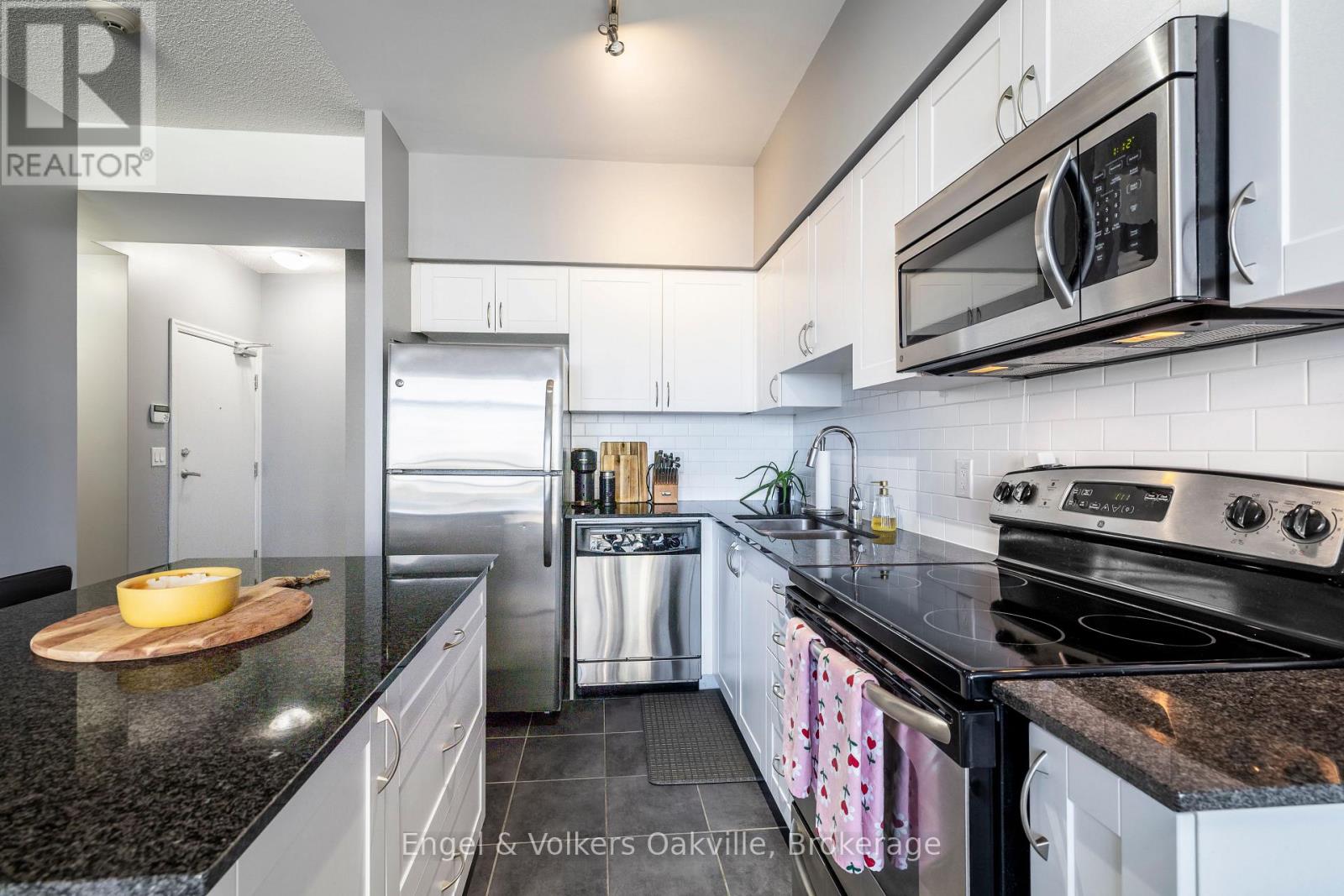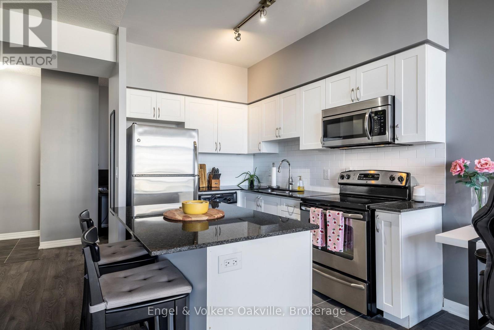Welcome to modern living at its finest! This stunning 1-bedroom plus den, 2-bathroom condo, unit 501, is located in the sought-after "The Ironstone" building at 1940 Ironstone Drive in Burlington's desirable Uptown neighbourhood. Step into a meticulously maintained unit featuring a bright and inviting open-concept layout. The kitchen is a chef's delight, boasting stone countertops, a large island with a breakfast bar, and stainless steel appliances, including a stove, refrigerator, dishwasher, and built-in microwave. The spacious den offers versatile space, perfect for a home office. Enjoy the convenience of in-suite laundry and the comfort of a primary bedroom complete with its own ensuite bathroom. A second bathroom provides added convenience for guests and daily living. Beyond the unit, you'll discover a world of luxurious amenities designed to elevate your lifestyle. The Ironstone offers a party room with a kitchen, a games room with a pool table, and a beautifully landscaped rooftop terrace featuring a gas fireplace, built-in BBQ, and an outdoor kitchenette, perfect for entertaining. Stay active with the fully equipped gym, and find your zen in the yoga studio. The building also provides 24-hour security, a concierge, underground parking, and a car wash bay. Located just moments from major highways (QEW, 407), this condo provides easy access for commuters. Enjoy the urban convenience of being within walking distance to a wide array of gourmet restaurants, high-end shopping at Appleby Crossing, and scenic parks. Experience the perfect blend of city living and outdoor recreation in this exceptional Burlington condo. (id:24334)