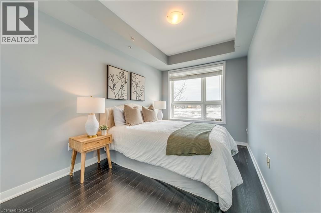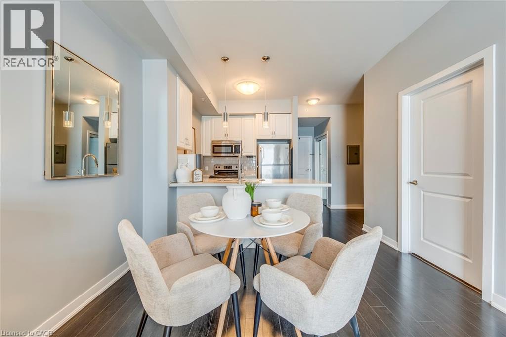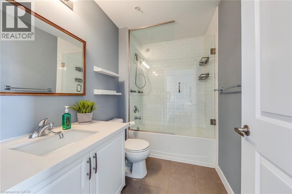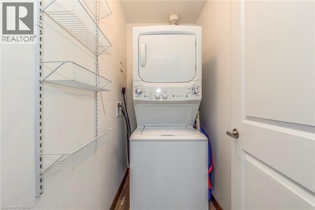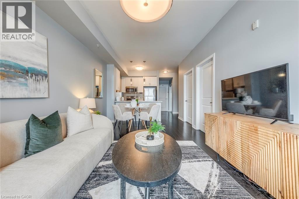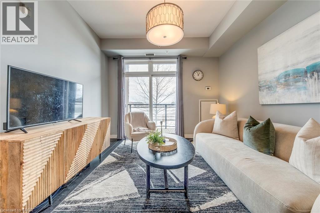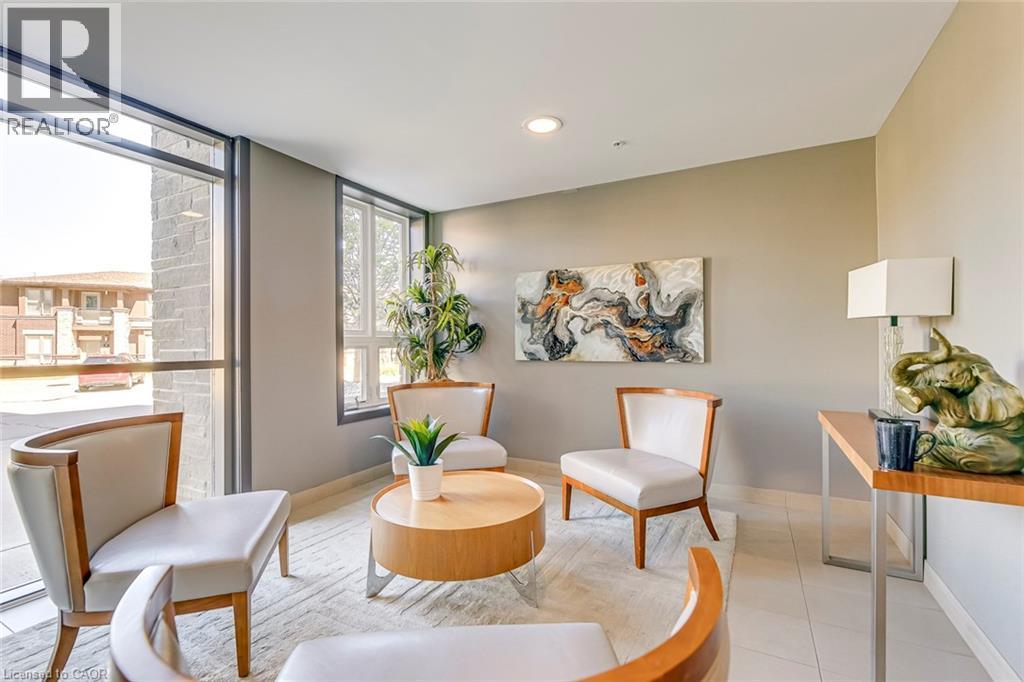 $504.57 MonthlyWelcome to this beautifully upgraded 1 bedroom + DEN condo located in a modern and sought-after Burlington building. This bright main floor unit offers approximately 709 sq. ft. of stylish living space plus a private balcony, with desirable south-facing exposure overlooking peaceful green space. Inside, you’ll find a functional open-concept layout highlighted by 10-foot ceilings and contemporary finishes throughout. The well-appointed kitchen features granite countertops, stainless steel appliances, and a convenient breakfast bar, perfect for everyday living and entertaining. The spacious living and dining area flows seamlessly to the balcony, creating a bright and welcoming space. The separate den provides a versatile area ideal for a home office or additional workspace, while the primary bedroom offers comfortable accommodation with easy access to the upgraded bathroom featuring a glass-enclosed tub and shower. In-suite laundry adds everyday convenience. Residents enjoy excellent building amenities including a fitness centre, party room, theatre room, and rooftop terrace. The unit also comes with 1 underground parking space, a storage locker, and bike storage conveniently located on the same floor. Ideally situated close to shopping, restaurants, parks, and major transit routes, this condo offers a perfect blend of comfort, convenience, and modern living in Burlington. (id:24334)