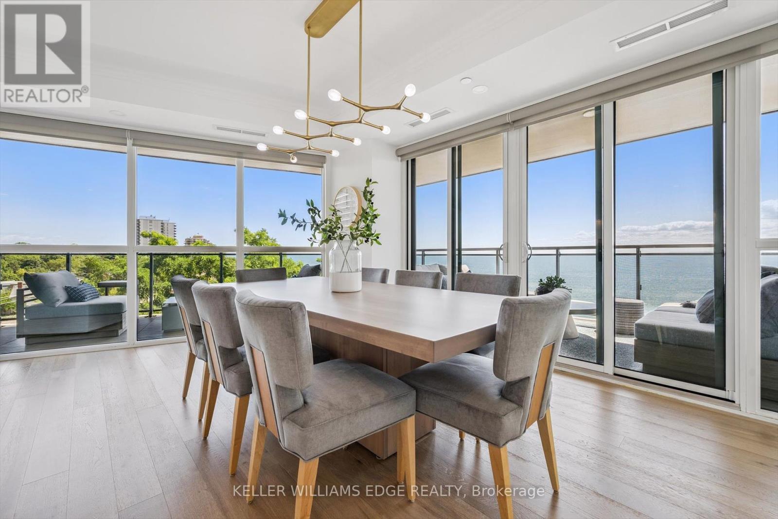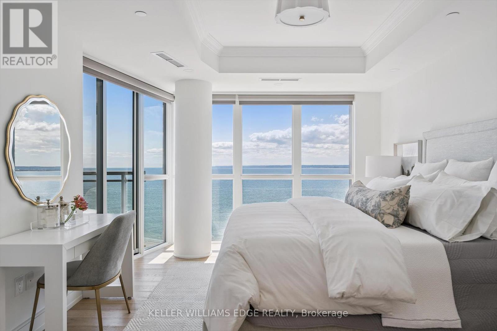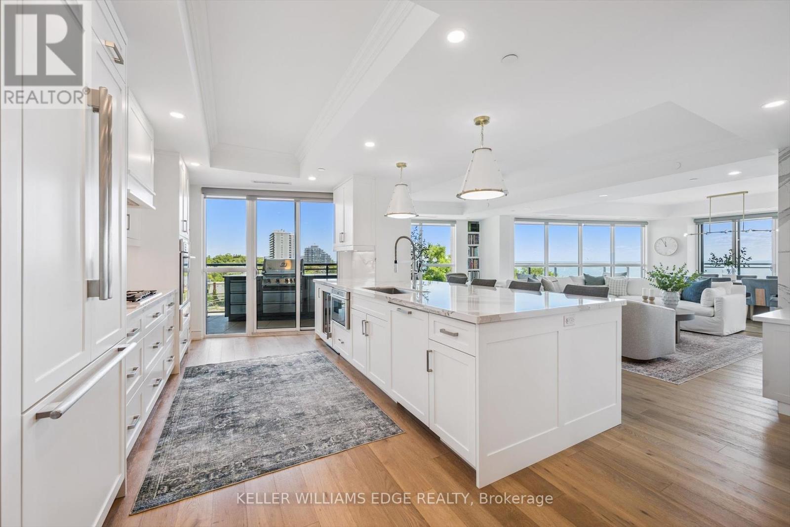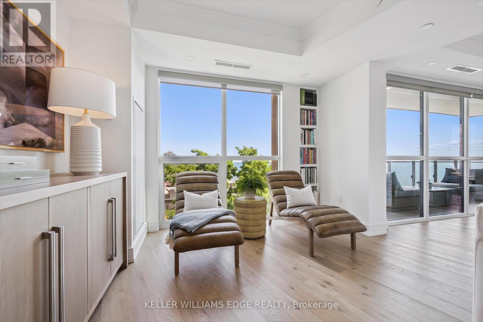 Welcome to Suite 508 at the Bridgewater Residences, where luxury meets lakeside tranquility at one of Burlingtons most prestigious waterfront addresses.This southeast corner suite has 2,200 sq ft of thoughtfully curated living space, complemented by 2 expansive balconies adding another 493 sq ft. Enjoy sweeping water views from every angle. Step inside to discover a beautifully appointed 2-bed+den home with 3 elegant baths, expertly designed with high-end finishes and upgrades throughout. Soaring floor-to-ceiling windows fill the space with natural light, drawing attention to the open-concept layout centred around a cozy gas fireplace. The chef-inspired kitchen is a true showstopper, boasting Thermador appliances, including wine/bev fridge, Cambria quartz island, and custom cabinetry, ideal for seamless entertaining. Retreat to the primary suite for a true sense of indulgence, where youll wake up to breathtaking panoramic views of Lake Ontario and step directly onto the balcony to start your day.Unwind in the spa-inspired ensuite featuring oversized glass shower, soaker tub and high-end finishes. The second bedroom includes its own ensuite, while the separate den offers flex space for work, guests, or a third bedroom. Full laundry room & stylish powder room complete this well-appointed suite.Savour the beauty of waterfront living, an exceptional setting for morning coffee, al fresco dining, or evening sunsets.As a resident of Bridgewater, youll enjoy access to exceptional amenities, including rooftop BBQ terrace, fitness centre, party room, billiards room & exclusive privileges at The Pearle Hotel & Spa with its own gym and luxury indoor pool. Suite includes two premium accessible parking spots next to elevator and 3 storage lockers. Just steps from the lakefront, Spencer Smith Park, Waterfront Trail, shops, restaurants, and downtown Burlingtons cultural scene. An incredible chance to enjoy waterfront living at its best! Condo is being sold fully furnished. (id:24334)
