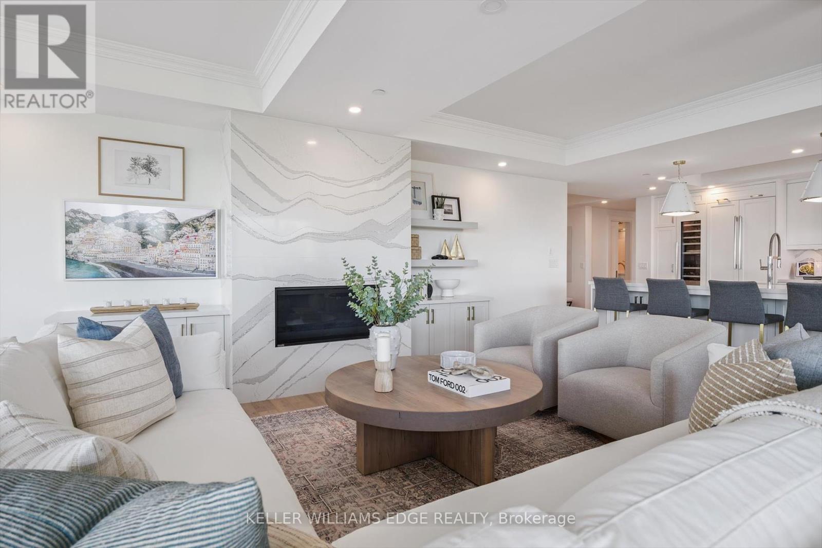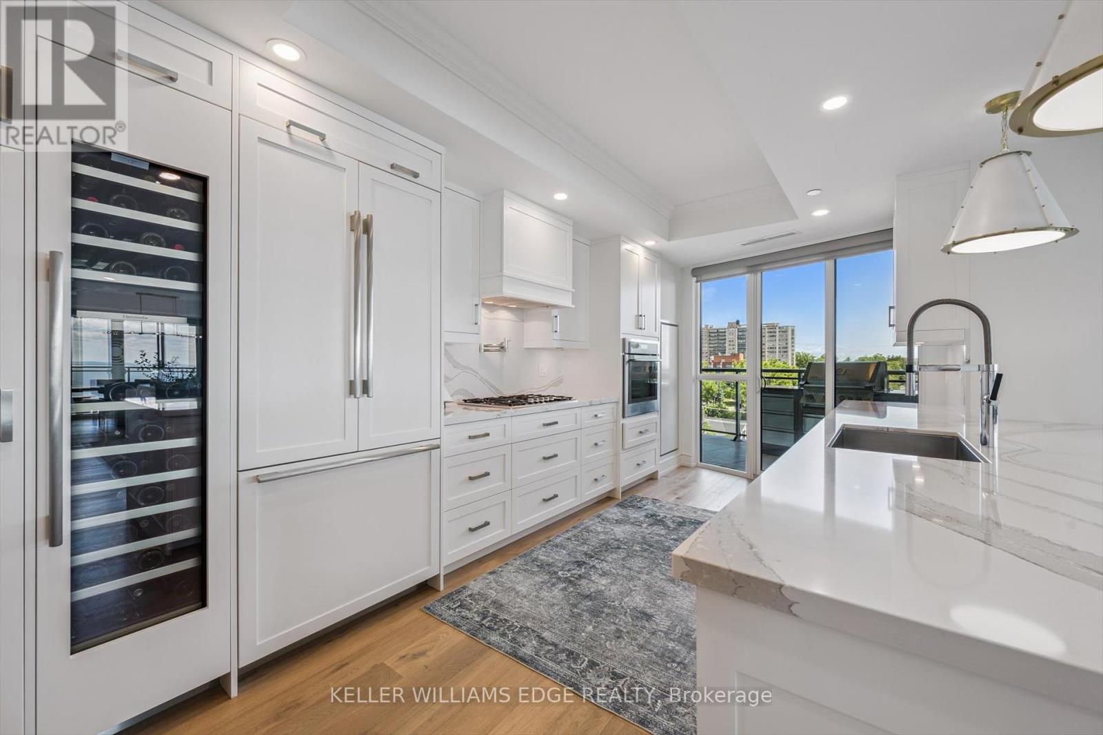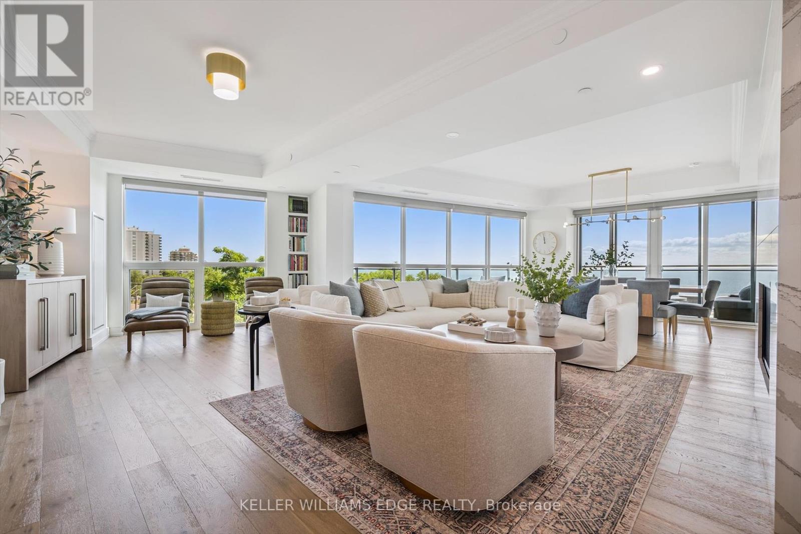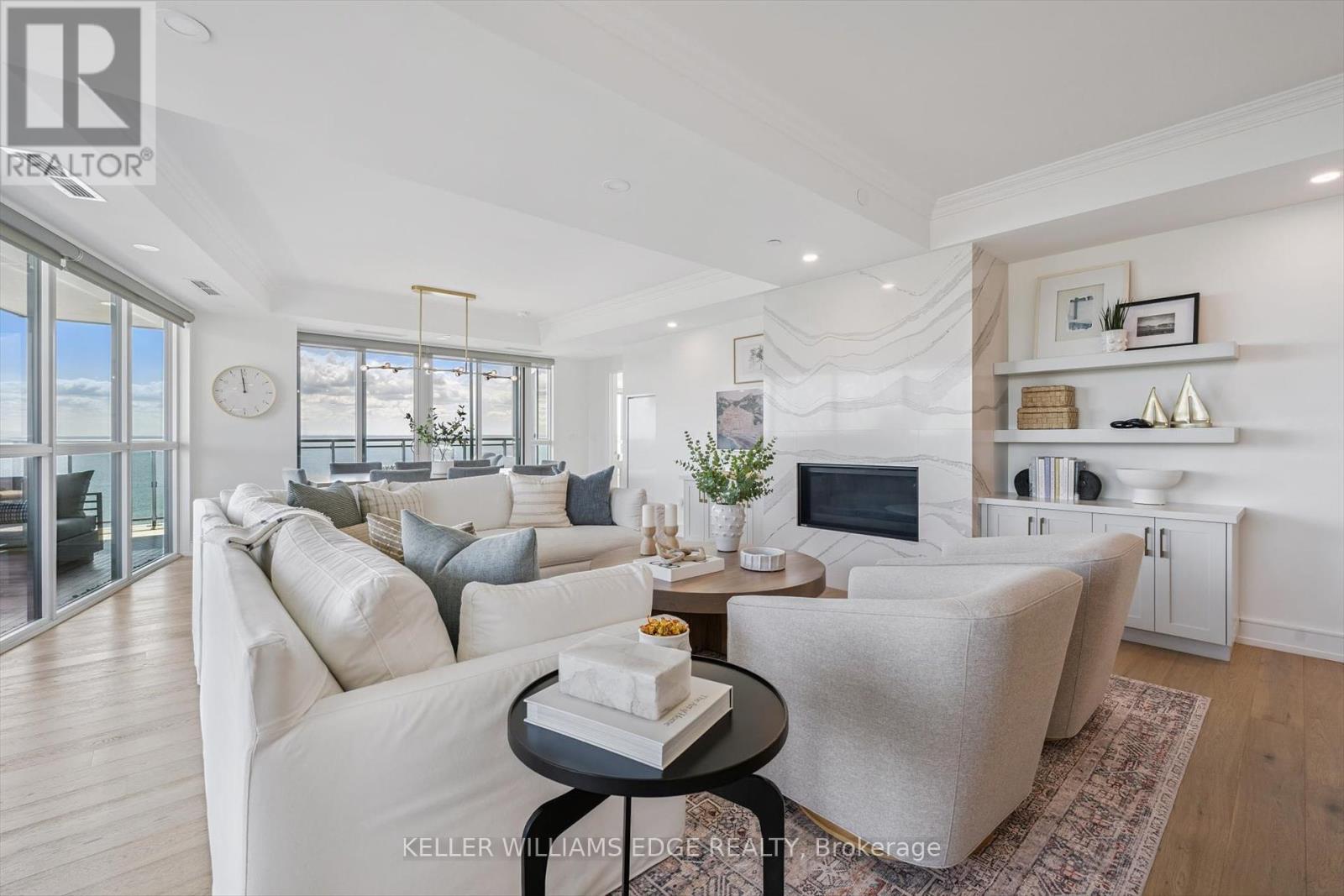Welcome to Suite 508 at the Bridgewater Residences, where luxury meets lakeside tranquility at one of Burlingtons most prestigious waterfront addresses.This southeast corner suite has 2,200 sq ft of thoughtfully curated living space, complemented by 2 expansive balconies adding another 493 sq ft. Enjoy sweeping water views from every angle. Step inside to discover a beautifully appointed 2-bed+den home with 3 elegant baths, expertly designed with high-end finishes and upgrades throughout. Soaring floor-to-ceiling windows fill the space with natural light, drawing attention to the open-concept layout centred around a cozy gas fireplace. The chef-inspired kitchen is a true showstopper, boasting Thermador appliances, including wine/bev fridge, Cambria quartz island, and custom cabinetry, ideal for seamless entertaining. Retreat to the primary suite for a true sense of indulgence, where youll wake up to breathtaking panoramic views of Lake Ontario and step directly onto the balcony to start your day.Unwind in the spa-inspired ensuite featuring oversized glass shower, soaker tub and high-end finishes. The second bedroom includes its own ensuite, while the separate den offers flex space for work, guests, or a third bedroom. Full laundry room & stylish powder room complete this well-appointed suite.Savour the beauty of waterfront living, an exceptional setting for morning coffee, al fresco dining, or evening sunsets.As a resident of Bridgewater, youll enjoy access to exceptional amenities, including rooftop BBQ terrace, fitness centre, party room, billiards room & exclusive privileges at The Pearle Hotel & Spa with its own gym and luxury indoor pool. Suite includes two premium accessible parking spots next to elevator and 3 storage lockers. Just steps from the lakefront, Spencer Smith Park, Waterfront Trail, shops, restaurants, and downtown Burlingtons cultural scene. An incredible chance to enjoy waterfront living at its best! Condo is being sold fully furnished. (id:24334)
