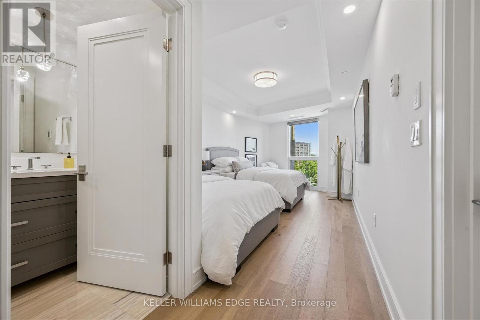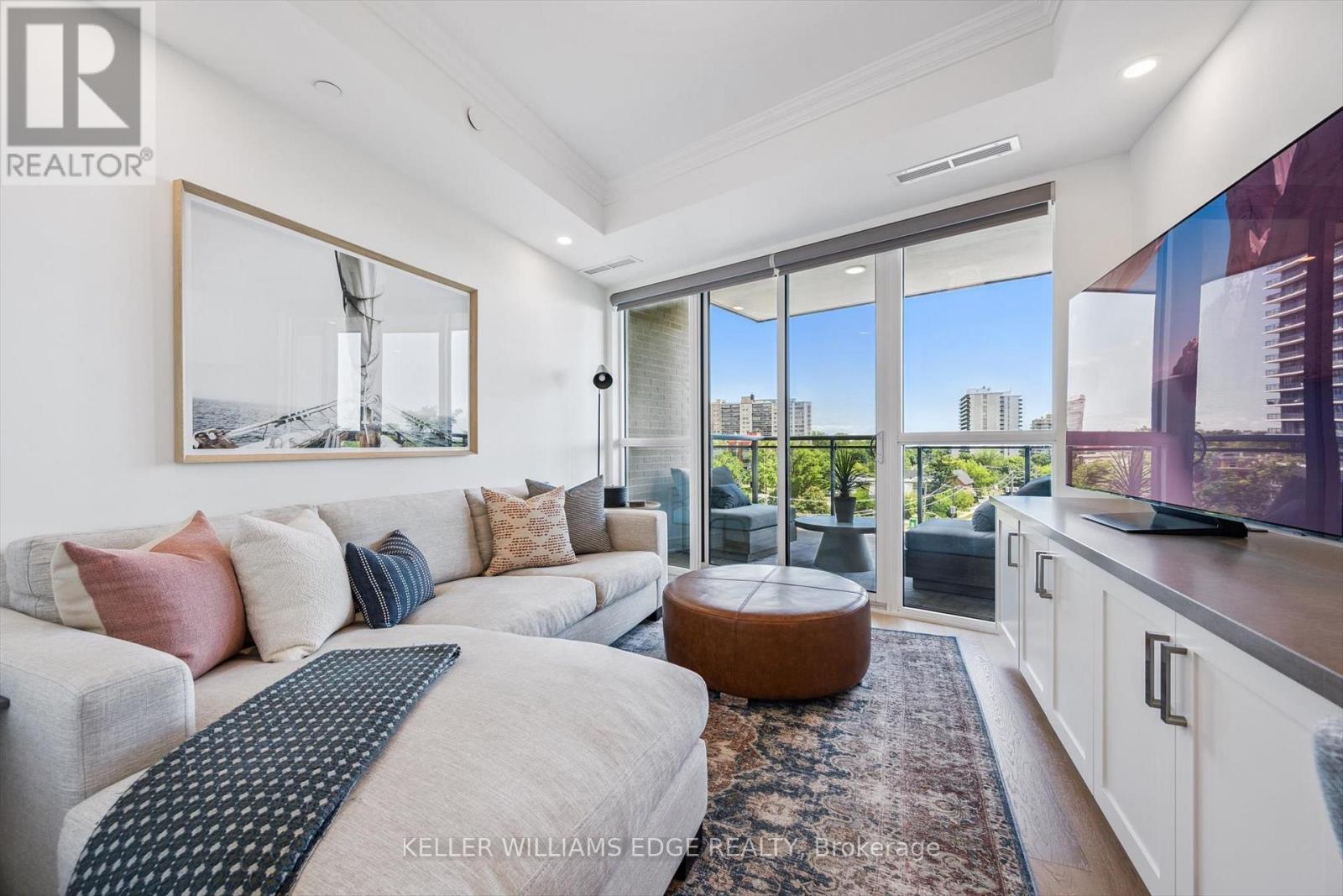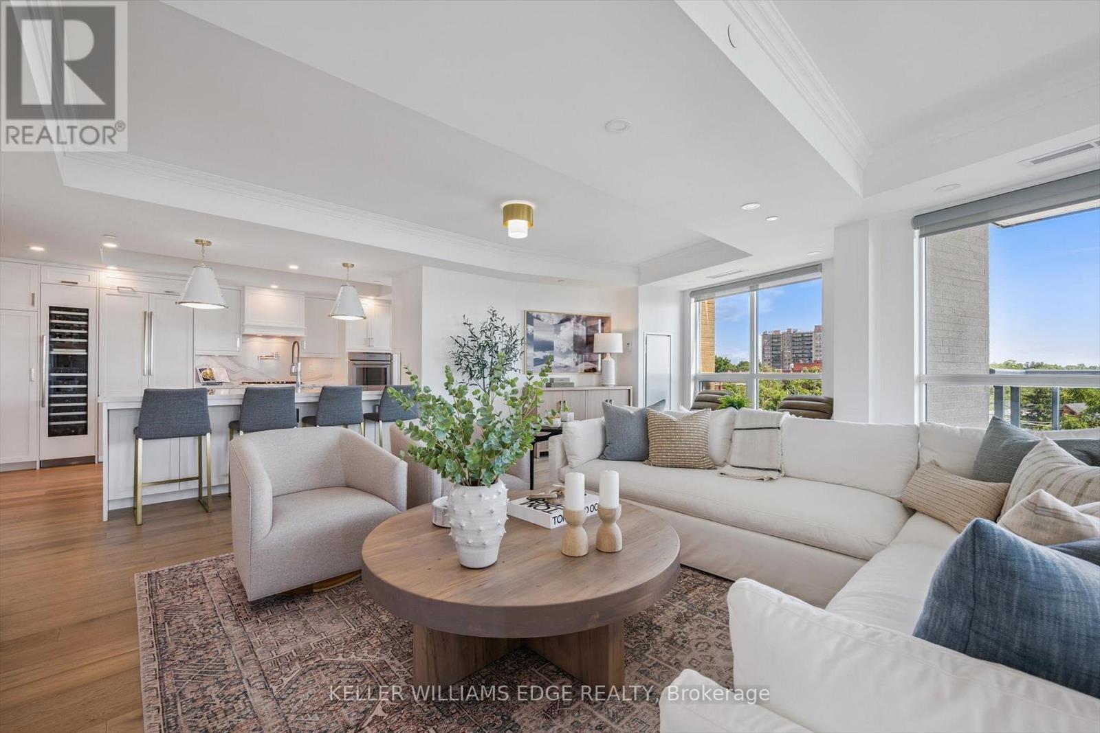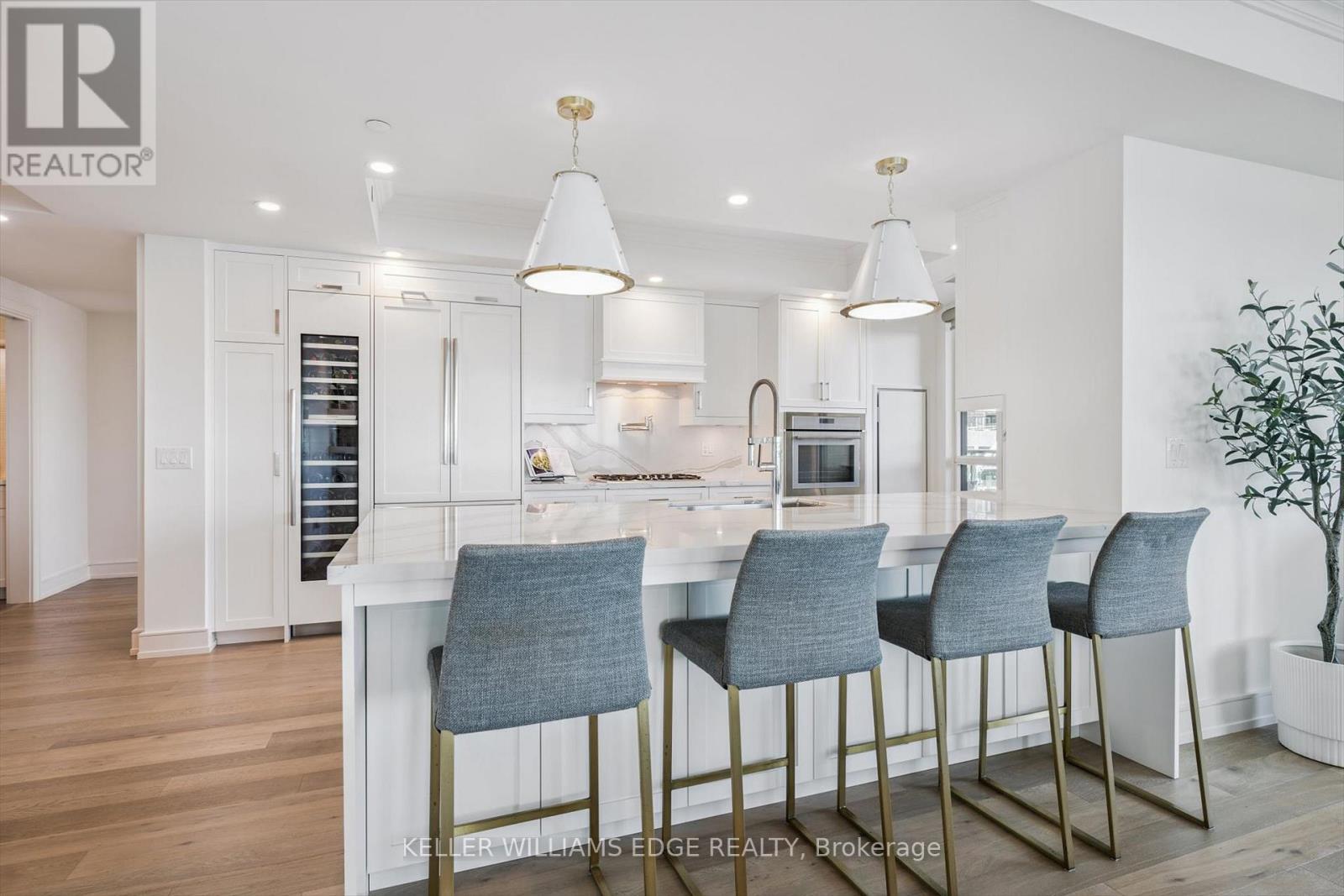 Welcome to Suite 508 at the Bridgewater Residences, where luxury meets lakeside tranquility at one of Burlingtons most prestigious waterfront addresses.This southeast corner suite has 2,200 sq ft of thoughtfully curated living space, complemented by 2 expansive balconies adding another 493 sq ft. Enjoy sweeping water views from every angle. Step inside to discover a beautifully appointed 2-bed+den home with 3 elegant baths, expertly designed with high-end finishes and upgrades throughout. Soaring floor-to-ceiling windows fill the space with natural light, drawing attention to the open-concept layout centred around a cozy gas fireplace. The chef-inspired kitchen is a true showstopper, boasting Thermador appliances, including wine/bev fridge, Cambria quartz island, and custom cabinetry, ideal for seamless entertaining. Retreat to the primary suite for a true sense of indulgence, where youll wake up to breathtaking panoramic views of Lake Ontario and step directly onto the balcony to start your day.Unwind in the spa-inspired ensuite featuring oversized glass shower, soaker tub and high-end finishes. The second bedroom includes its own ensuite, while the separate den offers flex space for work, guests, or a third bedroom. Full laundry room & stylish powder room complete this well-appointed suite.Savour the beauty of waterfront living, an exceptional setting for morning coffee, al fresco dining, or evening sunsets.As a resident of Bridgewater, youll enjoy access to exceptional amenities, including rooftop BBQ terrace, fitness centre, party room, billiards room & exclusive privileges at The Pearle Hotel & Spa with its own gym and luxury indoor pool. Suite includes two premium accessible parking spots next to elevator and 3 storage lockers. Just steps from the lakefront, Spencer Smith Park, Waterfront Trail, shops, restaurants, and downtown Burlingtons cultural scene. An incredible chance to enjoy waterfront living at its best! Condo is being sold fully furnished. (id:24334)