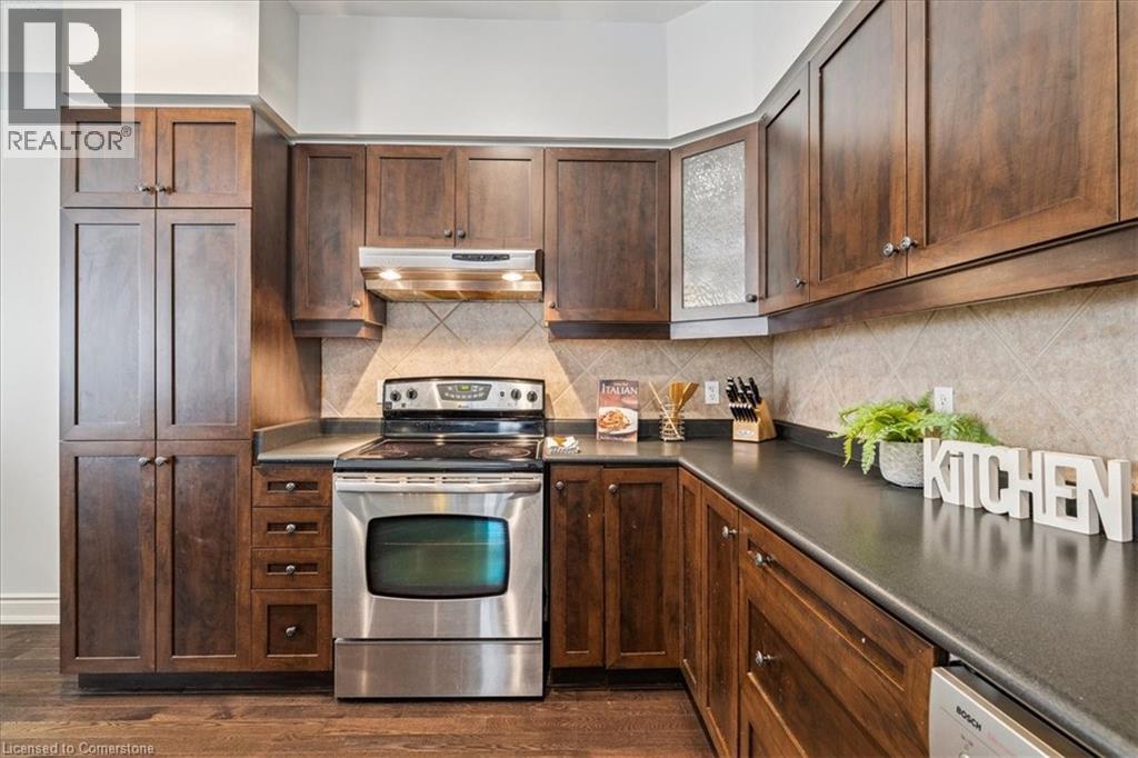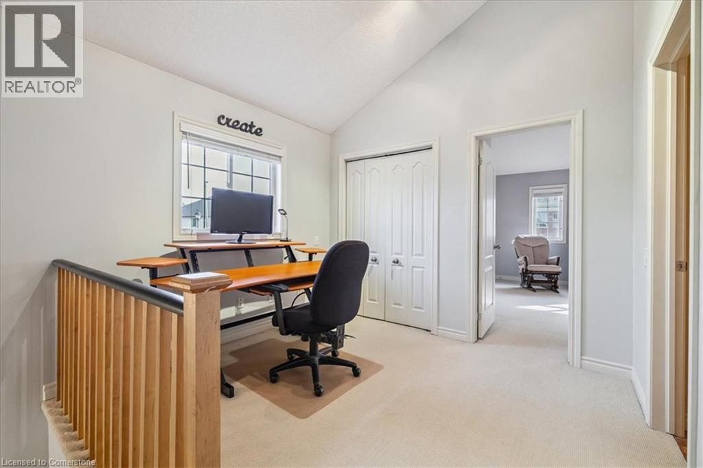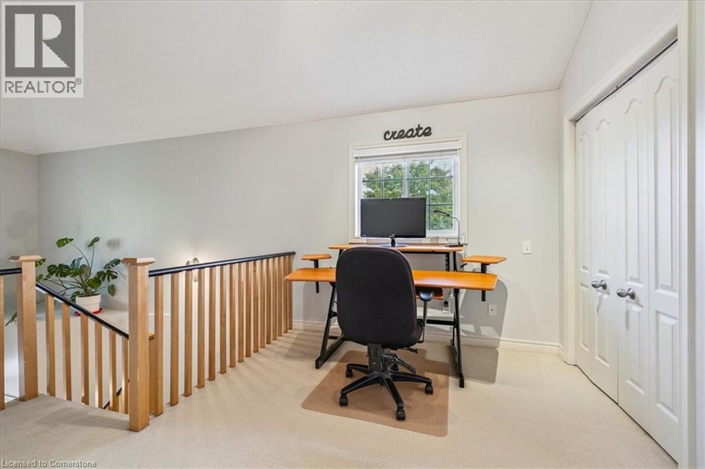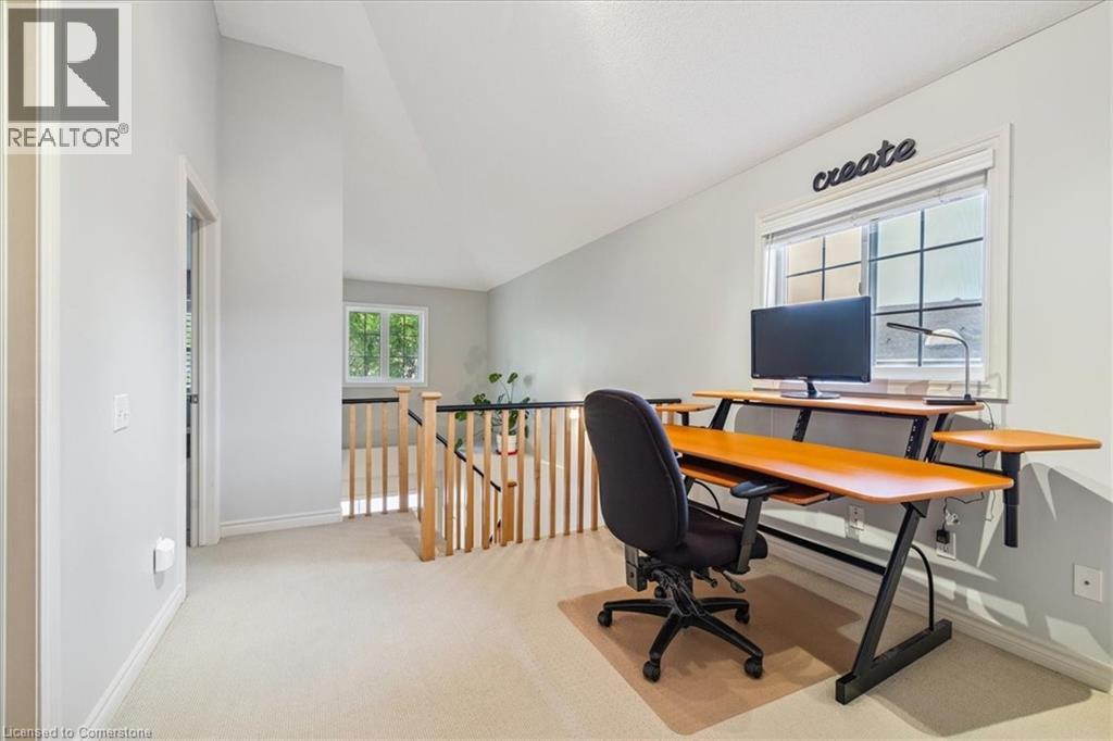 Welcome to Unit 72 at 5080 Fairview Street—an exceptional 2-bedroom, 2-bathroom end-unit freehold townhome with a versatile den/office space, located in Burlington’s desirable Pinedale community. Bright and functional, the open-concept main floor features 9-ft ceilings, hardwood flooring, a cozy gas fireplace, and a welcoming layout. The eat-in kitchen is equipped with stainless steel appliances, peninsula seating, a pantry, and a bay window with built-in bench storage—perfect for casual dining and added functionality. Walk out from the living/dining area to a private, low-maintenance backyard—perfect for relaxing or entertaining. Upstairs, discover 2 generous bedrooms with vaulted ceilings, a 4-piece bath, a large primary suite with his-and-hers closets and den/office space. Enjoy the convenience of an insulated garage, powder room at the entry, and ample storage. With a striking 18-ft ceiling in the foyer, this home is filled with natural light and character. Situated across from the Appleby GO Station and just minutes to the QEW, top-rated schools, shopping, parks, trails, and the lake—this home is ideal for families, commuters, or investors alike. Freehold ownership with a low monthly fee of $179.41 covering snow removal and lawn care. This is easy, low-maintenance living in one of Burlington’s most connected and family-friendly neighbourhoods! (id:24334)