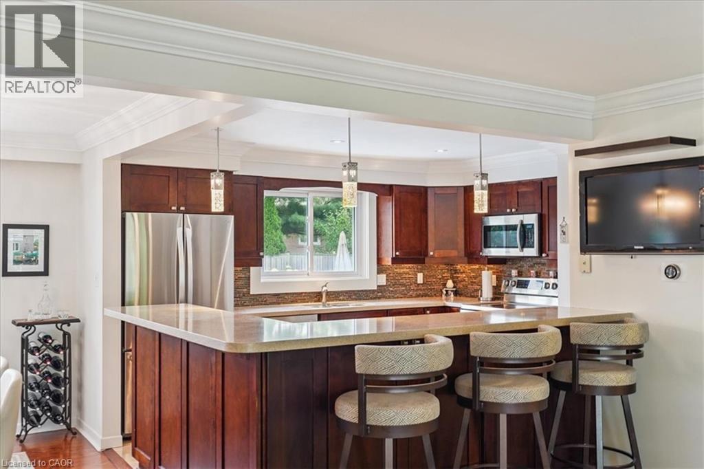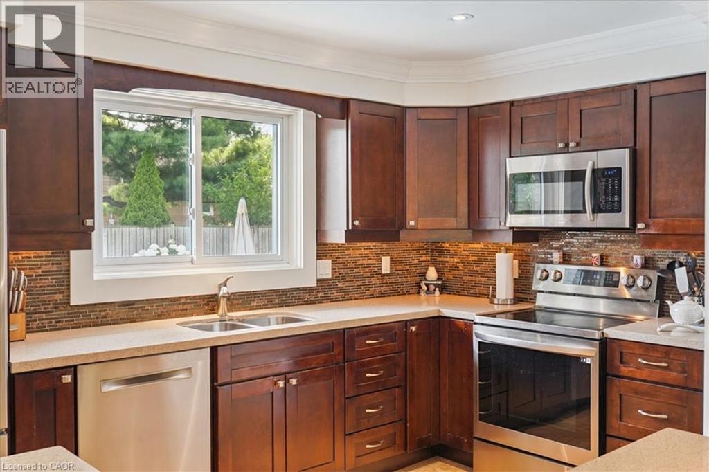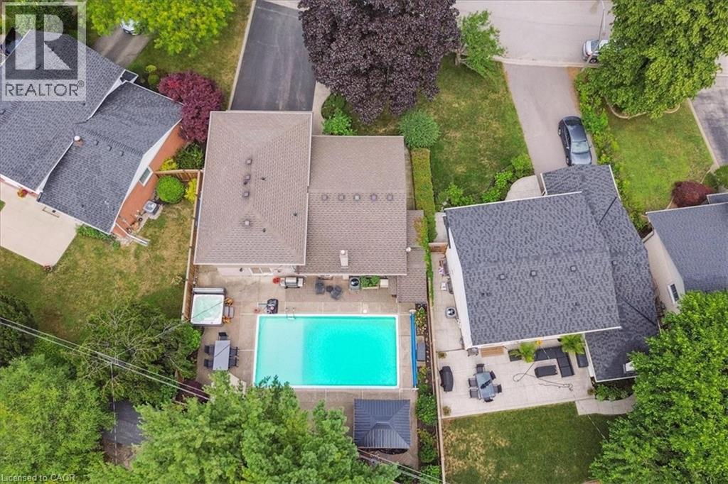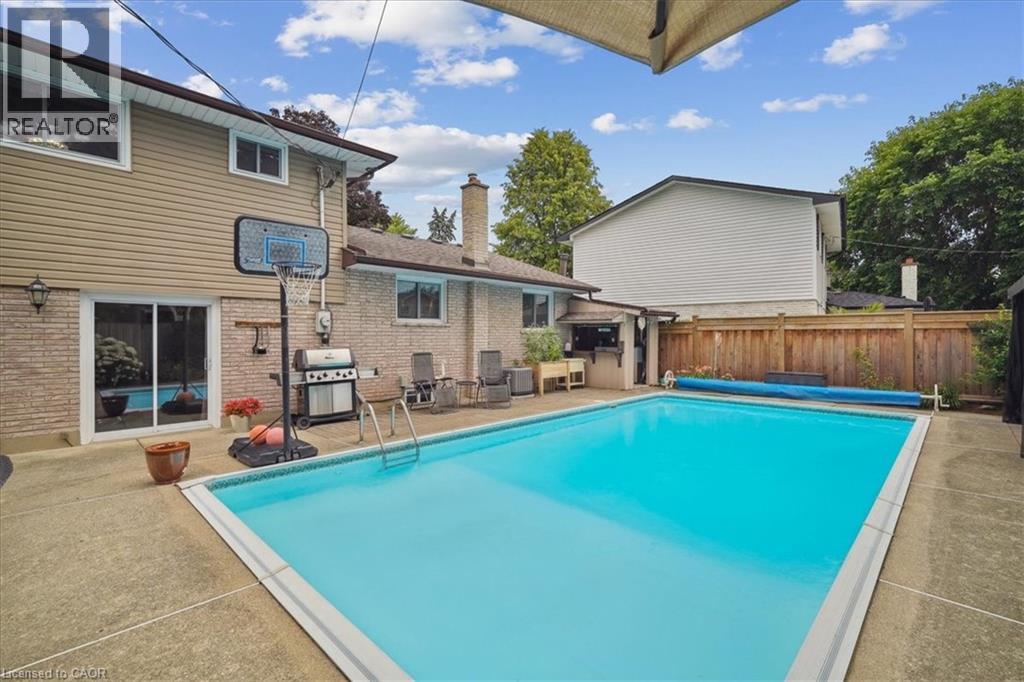Tucked away in a peaceful cul-de-sac in South Burlington, this charming 3(+1) bdrm, 2 bth home offers the perfect blend of comfort, convenience, and outdoor luxury. The front is beautifully landscaped with a welcoming private front porch to sit and enjoy your morning coffee. Inside greets you with a open-concept kitchen that seamlessly overlooks the bright living and dining areas, ideal for hosting friends or cozy family dinners. The upper level features 3 generously sized bedrooms and a updated 4th piece bath with ensuite privileges. Just off the kitchen and on the ground level, a warm and inviting family room awaits, complete with built-in shelving and direct walk-out access to your private backyard oasis, you'll find everything you need for entertaining or unwinding: a stunning pool (pump, filter, & heater 2021), hot tub (2024), gazebo, outdoor bar, and beautifully landscaped surroundings all designed to create your personal private retreat. Inside, the ground floor also features a stylish laundry space (washer/dryer 2023) and 3-piece bathroom. The lower level offers a versatile bonus room perfect for movie nights/game days as well as a possible fourth bedroom/home office/workout space. You'll also appreciate the ample storage in the large crawl space. A large double-car garage completes this picture-perfect package. Located minutes from shopping, downtown Burlington, the QEW, and Fairview GO station, this home offers effortless access to everything the area has to offer while maintaining that serene court-side setting. Don't miss your chance to experience this beautifully cared for family home! (id:24334)