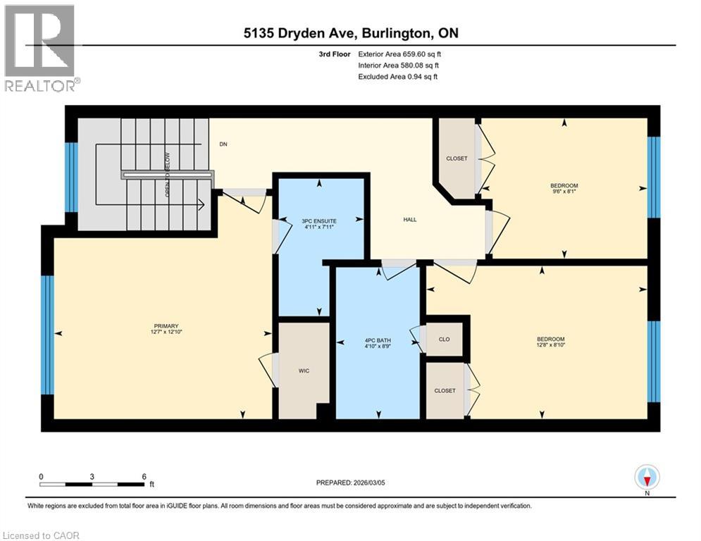 | Third Level | Primary Bedroom | 12'10'' x 12'7'' | ||