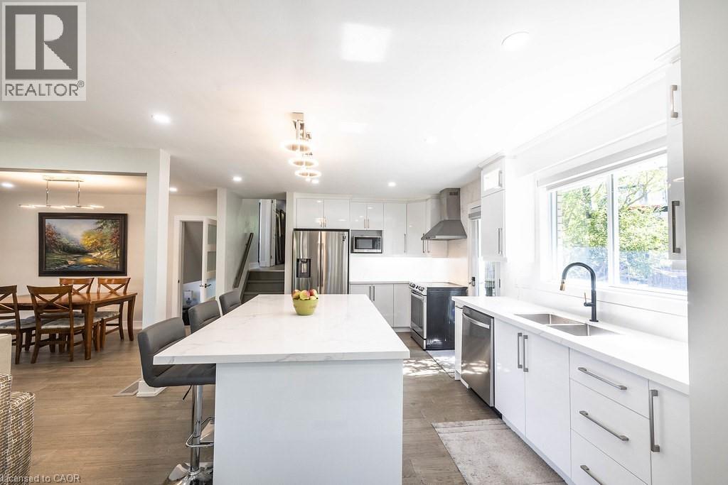 In a quiet neighbourhood in sought after Southeast Burlington this home features a private backyard with inground pool. Inside 3 Bedrooms and 2 baths in this carpet free, newly renovated, modern space. Open concept main level is perfect for entertaining, featuring a large island and stainless-steel appliarices. The fully finished, bright lower level with a walk out, provides ample space for relaxing, entertaining, working out a home office or even another bedroom and includes a three-piece bath and laundry and storage area. Double car garage plus driveway parking for 4 cars on a very family friendly street. Close to schools, transportation, shopping and within walking distance to the lake. This home is available for a 1 year lease or potential for shorter term lease and can be available furnished (id:24334)