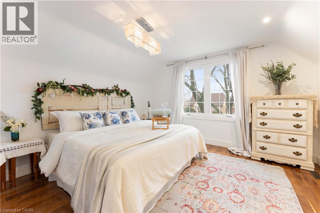 Walk to downtown and the lake from this beautifully renovated home on a quiet cul-de-sac. Set on an oversized 150-ft deep private lot, the property features mature perennial gardens and an interlock walkway leading to the front entrance. The open-concept main floor offers large windows, a gas fireplace, and a custom kitchen equipped with premium Viking appliances, including a gas range, dual-door refrigerator, panelled dishwasher, and built-in microwave. Patio doors off the dining area open to a private backyard with a custom wood deck and generous lawn surrounded by mature trees. Upstairs are two spacious bedrooms and a fully renovated 4-piece bathroom. The finished basement includes a separate entrance, kitchen space, open layout, and laundry, offering excellent flexibility. Ideally located within walking distance to Spencer Smith Park and Brant Street's shops and restaurants, with quick access to the QEW, Mapleview Mall, and daily amenities. (id:24334)