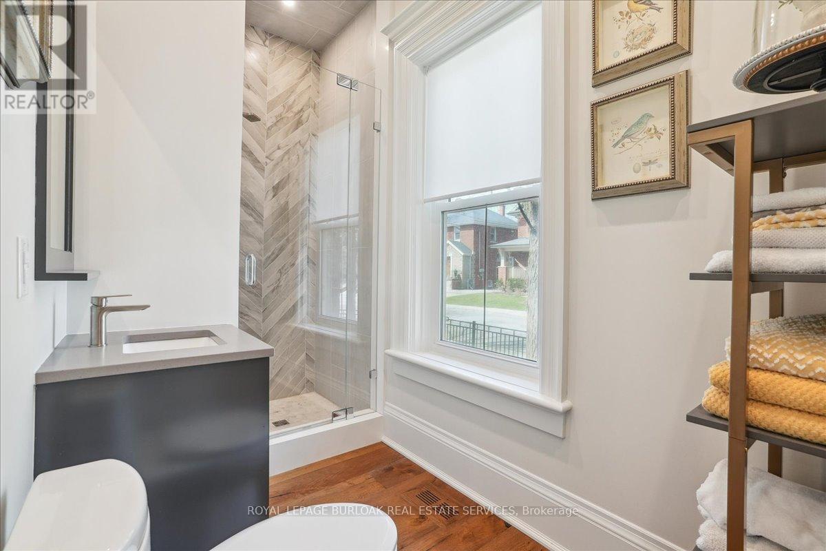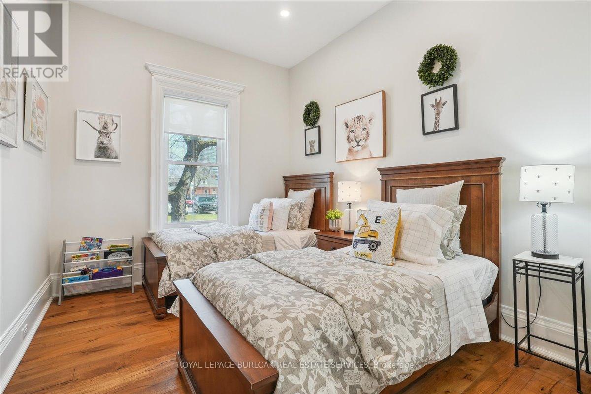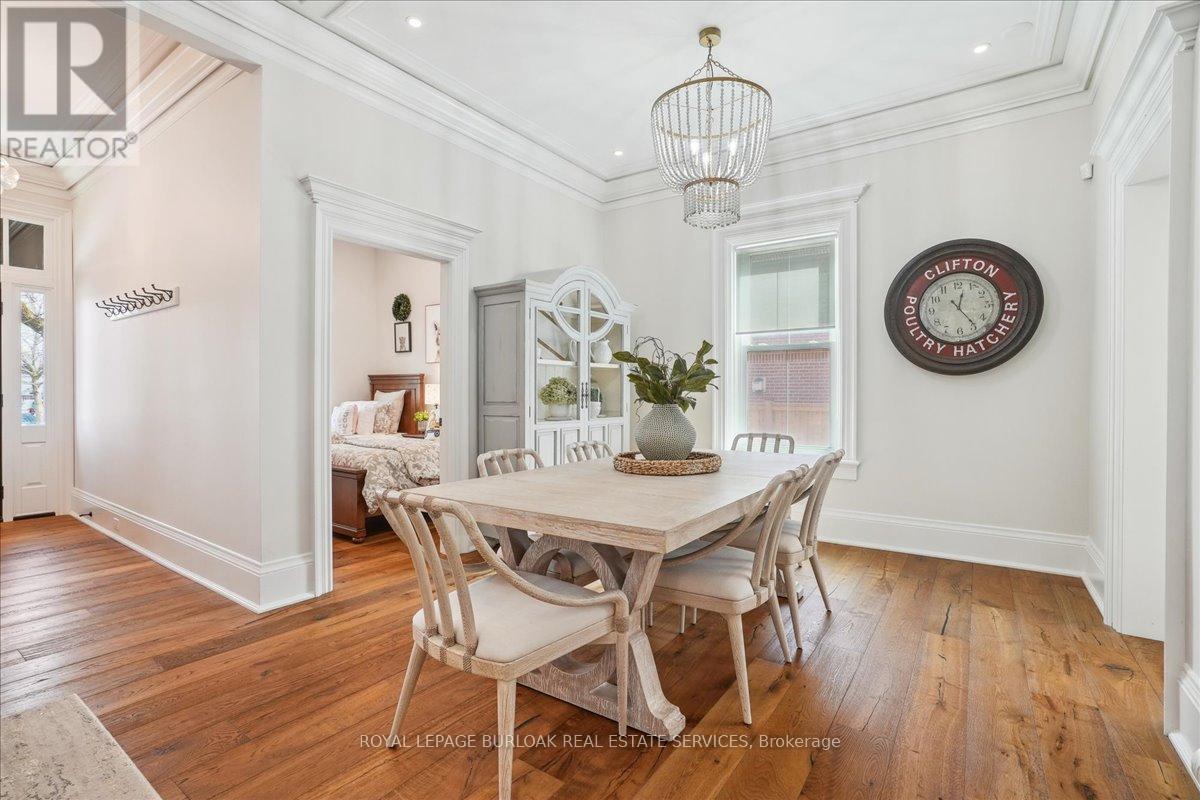 Charming, restored 1880s building in the heart of Downtown Burlington steps to the lake, Spencer Smith Park, top-rated restaurants, shops & the Burlington Performing Arts Centre. This rare gem offers nearly 2,000 sq ft of beautifully preserved character with hardwood floors, crown moulding, pot lights & updated lighting. Exceptional curb appeal with new fencing, interlock walkway and landscaping. This beautiful home features 3 spacious bedrooms, 1.5 bathrooms, main floor laundry, triple-pane windows (2019), furnace & AC (2022), 200-amp panel, EV charger & 2 separate driveways with room for 6 cars. Enjoy the newly landscaped backyard with a 10x30 patio, privacy trees & garden shed (2025). Whether you're a professional seeking a live/work setup, a buyer looking to be close to the lake, or an investor seeking long-term flexibility this location, charm & utility-rich home checks every box. Zoned DC-347 for flexible use ideal for residential, office or service commercial. (id:24334)