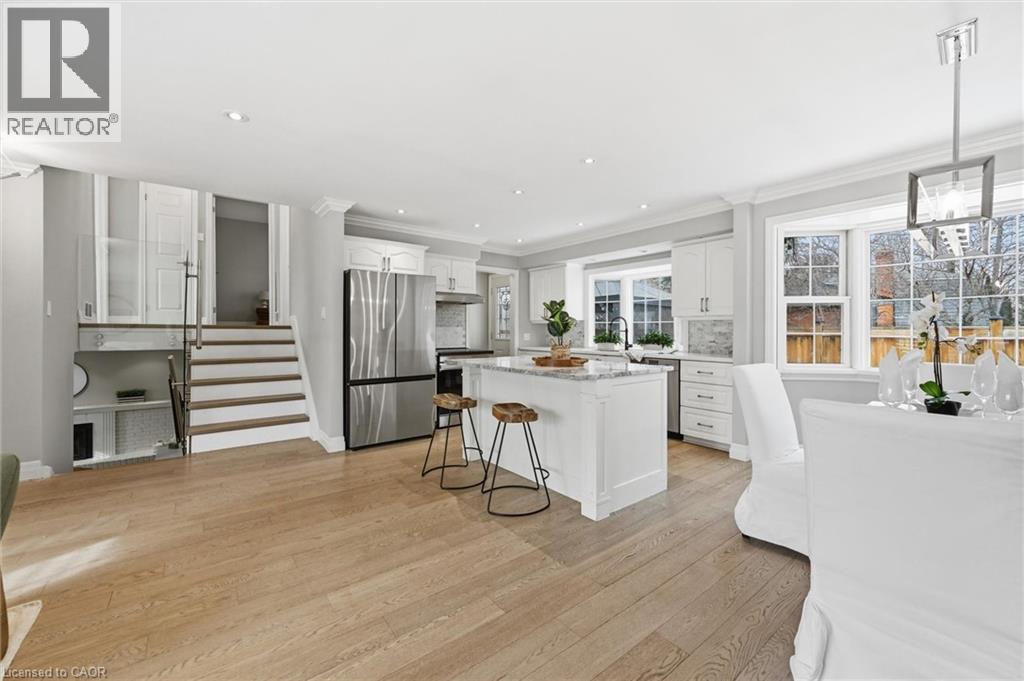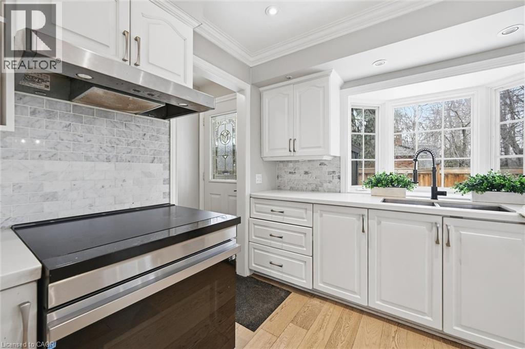 Finally! An open concept, completely renovated detached home in Elizabeth Gardens with a garage!! Which brings me to the top 7 reasons to buy this home: 1. Open concept renovated kitchen featuring timeless white cabinets, quartz counters, large eat-in island, matching backsplash, and s/s appliances. 2. Four total levels of space totalling over 2200 sqft 3. Quiet, family friendly location in Elizabeth gardens near parks, trails, only a 10 min walk down to the lake, and 8 min drive to the Appleby GO Train/QEW 4. Garage with 2 side by side driveway parking; no more juggling cars in the morning! 5. The essential 2 full bathrooms both renovated with new vanities, modern tile and light fixtures. 6. Large 65 by 115ft lot totally over 7400 sqft or .171 acres. 7. Move-in-ready condition with engineered hardwood, matching hardwood stairs, trendy glass railings, updated light fixtures and pot lights, california shutters, gas fireplace in huge lower-level family room, upgraded fencing (2019) around the whole back and side yard, large deck (2018) with pergola, roof replaced in 2018, upgraded light switches and polished nickel hardware, crown mouldings and upgraded window casings. The Seller is even offering a $5k credit on closing for landscaping improvements! But don't delay, these renovated open concept homes are very rare under 1.3m and may never be seen again! (id:24334)