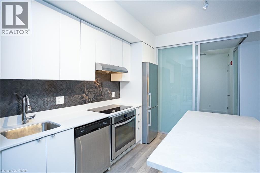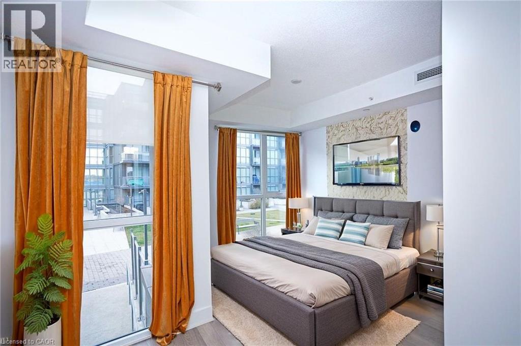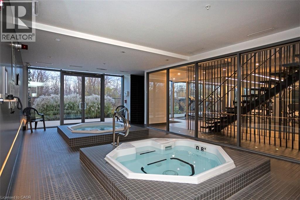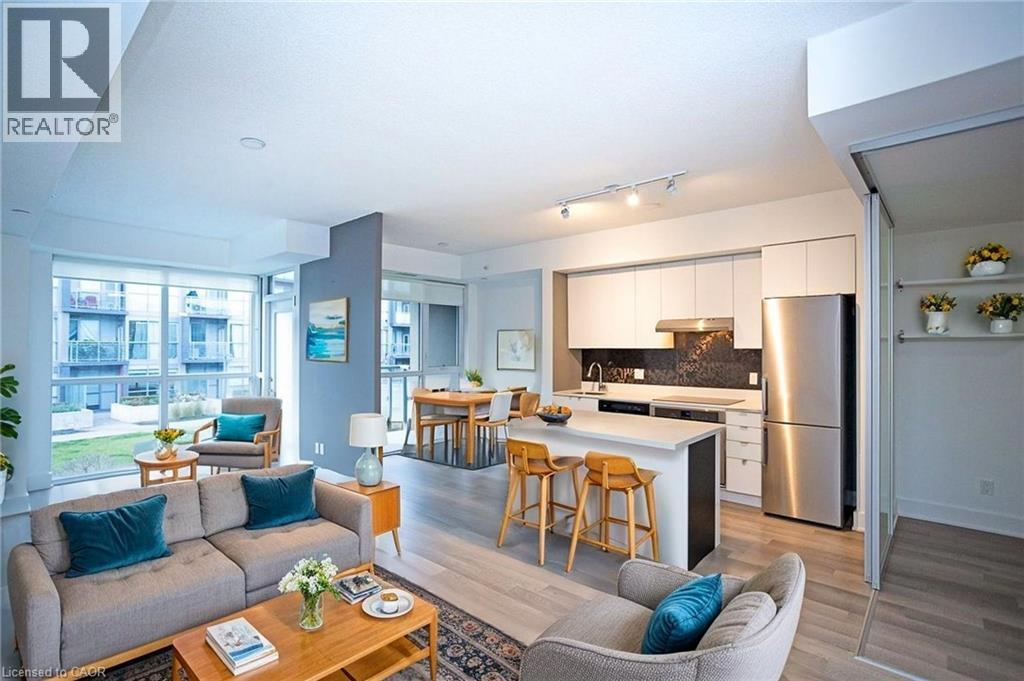 Beautiful and rare 1,000+ sq ft modern condo in the sought-after Orchard neighbourhood. Ideally located close to parks, hiking trails, Bronte Creek, schools, restaurants, transit, and major highways (QEW/407) for easy commuting. This spacious 2-bed, 2-bath suite features a sleek open-concept kitchen with stainless steel appliances, a large island with breakfast bar, and a bright dining area. The living room offers floor-to-ceiling windows that fill the space with natural light and open onto a private balcony overlooking the landscaped courtyard. The primary bedroom includes a stylish ensuite. Additional features include 1 underground parking spot, concierge, exercise room, party room, sauna, and visitor parking. (id:24334)