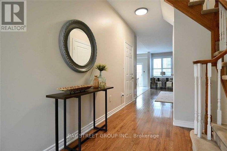 Nestled in the highly sought-after Orchard community of Burlington, this attractive and meticulously maintained freehold townhome offers exceptional curb appeal with its tasteful landscaping, elegant interlocking stonework, and a welcoming front porch that sets the tone for what lies inside. The main floor boasts a modern, open-concept layout enhanced by soaring 9-foot ceilings, creating a bright and airy atmosphere perfect for both everyday living and entertaining. The spacious great room features a cozy gas fireplace, adding warmth and charm to your living space, while the eat-in kitchen and adjoining dinette provide ample room for family meals and gatherings, with sliding doors leading to a fully fenced backyard complete with a stamped concrete patioideal for outdoor relaxation or summer barbecues. Upstairs, the serene primary bedroom serves as a private retreat with a generous walk-in closet and a well-appointed 4-piece ensuite. Two additional large bedrooms offer comfort and functionality, sharing access to a stylish 4-piece main bathroom, making this home a perfect blend of elegance, comfort, and family-friendly living. (id:24334)