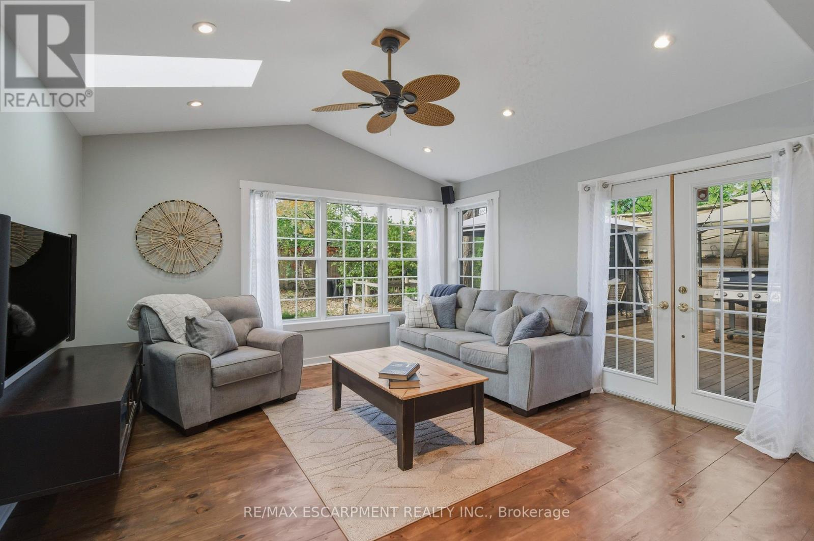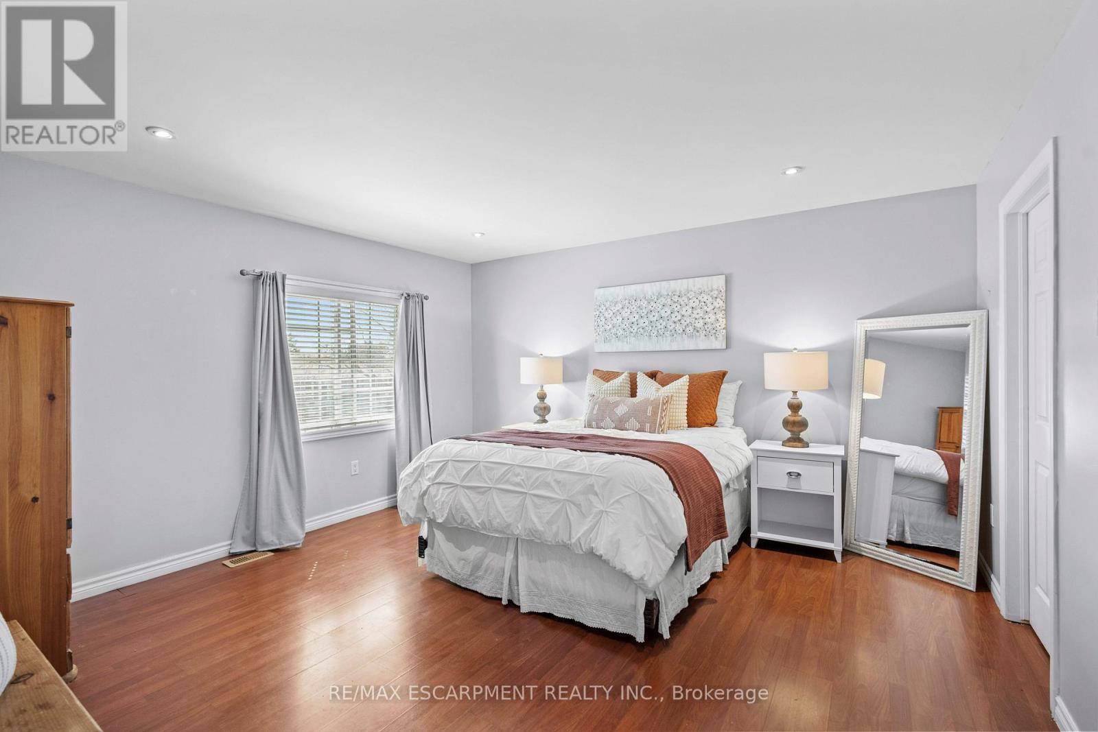 You don't want to miss this rare gem! This is a unique 5 bedroom (above grade) 3 bathroom side-split home with almost 2500 square feet of finished living space in Burlington's Elizabeth Gardens Community for under 1.2M. You don't hear that very often. The main level features a spacious separate dining room, a gorgeous white kitchen open to the bright and airy living room with vaulted ceilings and loads of natural light, main floor laundry and beautiful freshly stained 9 inch wide plank Pine flooring throughout. The second level has 3 bedrooms and a 4 piece bathroom for the guests and kids. Up top there's a massive Primary suite with an updated 4 piece ensuite and walk - in closet and an additional 5th bedroom or great office/flex space. The lower levels got a good sized family/rec room with a 2 piece bathroom and additional storage. Out back is equipped with some new fencing and a great mature yard with plenty of space for that family BBQ. Don't miss this amazing opportunity minutes to the lake and beautiful walking trails, close to great schools and steps to public transportation. Come check out this amazing home today!!! (id:24334)