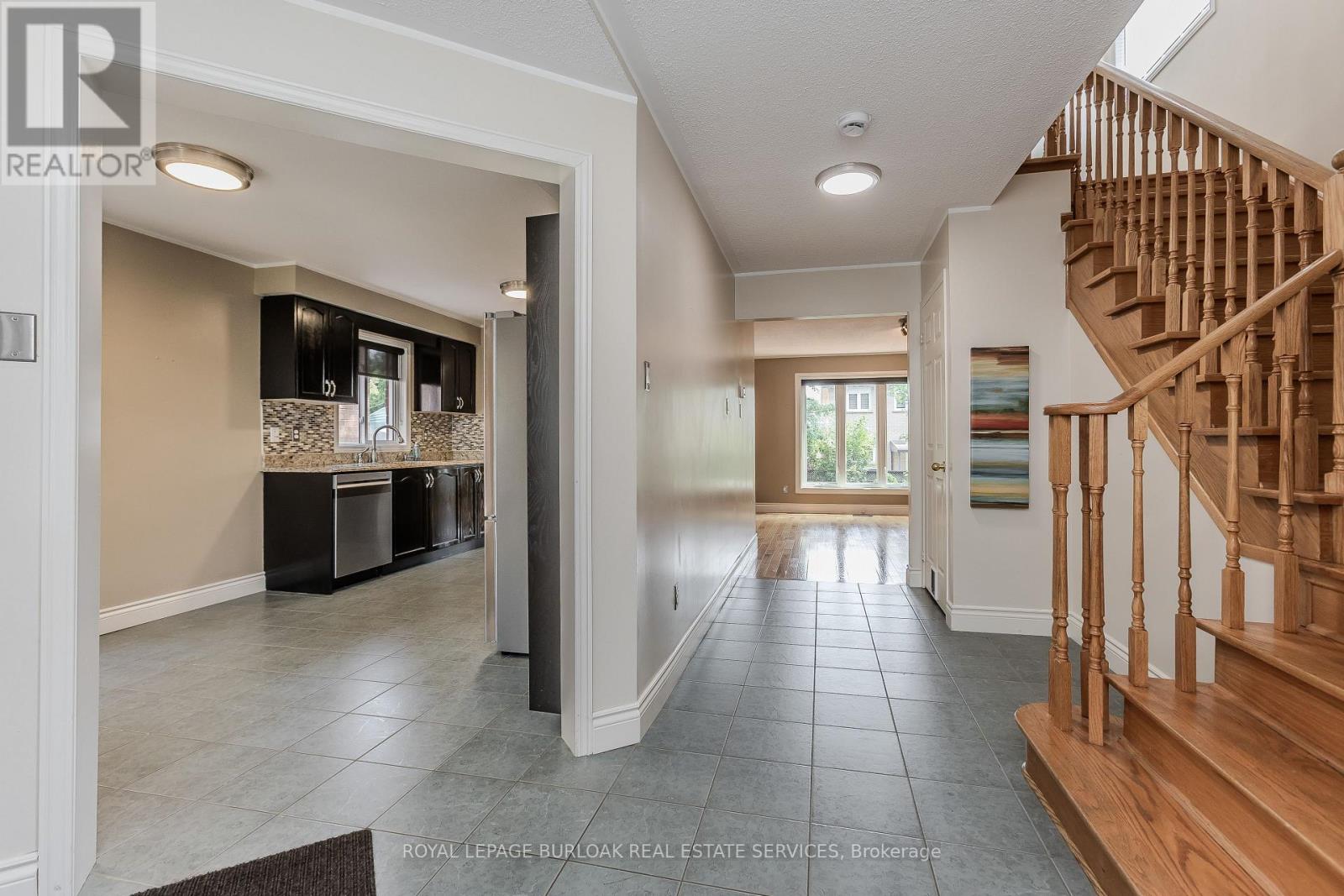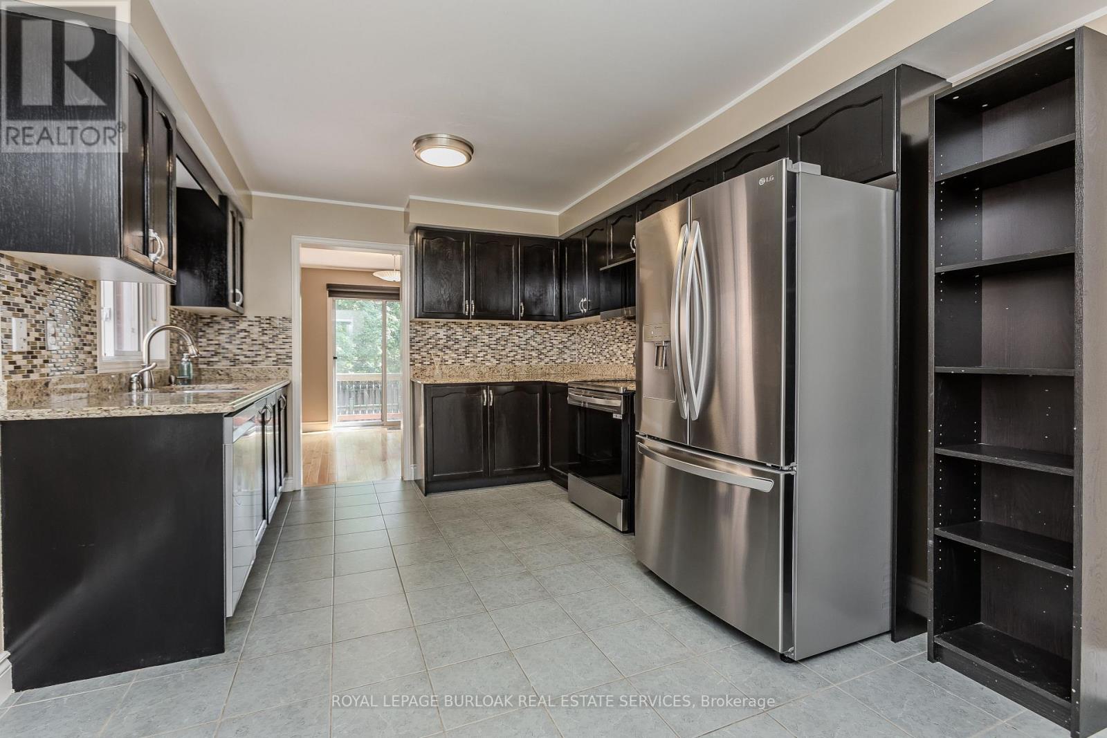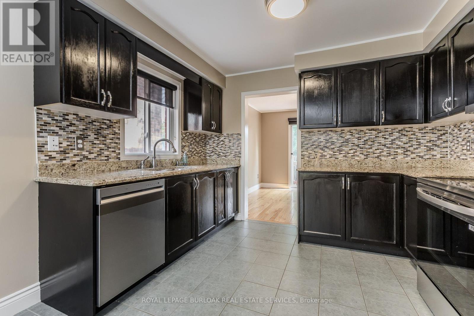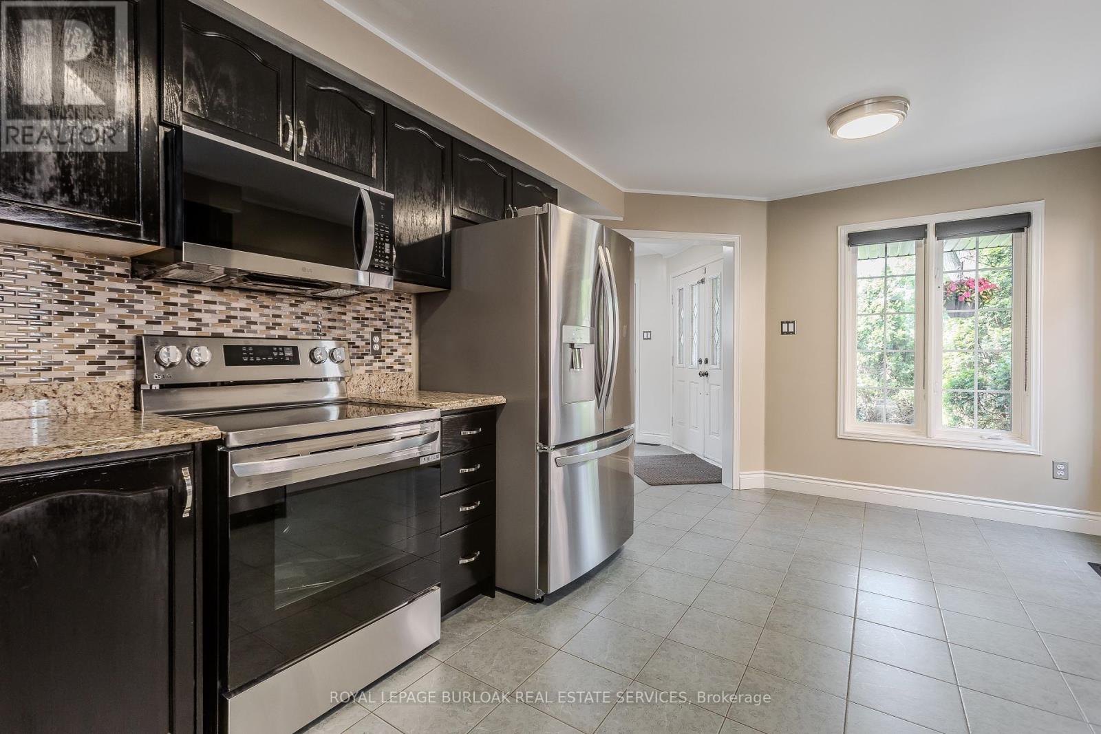 Looking for a Nice Home, Great Location & Value? Look No further.. This lovely detached home sits on a well-sized lot and offers 2122 sf of living space in one of Burlingtons most sought-after and family-friendly communities. Just a short drive to the lake and steps from several parks, this full brick home provides the perfect blend of comfort and convenience. Families will appreciate the proximity to excellent schools, shopping, GO Station (6 mins), and quick highway access for commuting. The front exterior is beautifully landscaped with mature trees and welcoming curb appeal - plus a 2-car garage for added security and convenience during snowy winter months. Inside, the main floor features hardwood throughout and a layout designed for ideal living. The eat-in kitchen showcases granite countertops, glass tile backsplash, brand new SS appliances, ceramic flooring, and a large over-sink window that floods the space with natural light. Enjoy casual meals in the breakfast nook or host guests in the dining area, which flows seamlessly into the living room. The heart of the home, the living room offers warmth and character with its stone gas fireplace w/ built-in media niche, and walk out to the back deck ideal for indoor-outdoor entertaining. Upstairs, you'll find 3 bedrooms, all with new laminate flooring. The bright primary suite features a 4pc ensuite, while a second 4pc bath serves the additional bedrooms. The finished lower level provides an abundance of additional living and a large open layout perfect for a rec room, play area, or home gym. Step outside to your own backyard retreat fully fenced, surrounded by mature trees, perennial gardens, offering both privacy and beauty. A wood deck creates the perfect setting for BBQs and relaxation, while ample green space provides room for yourself, kids or pets to enjoy freely. This home checks all the boxes thoughtful updates, a practical layout, and an ideal location. Don't miss your chance to make it yours! (id:24334)