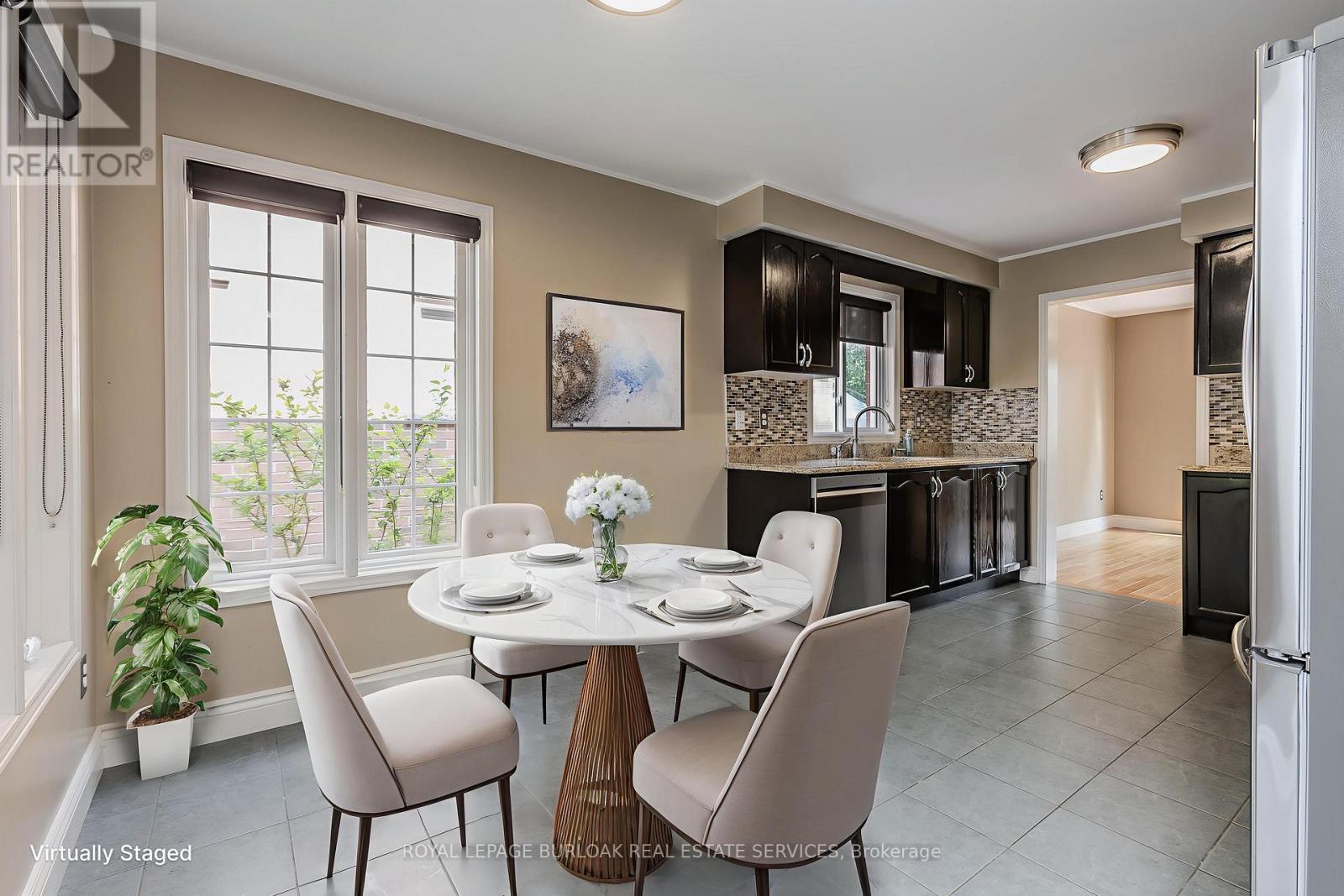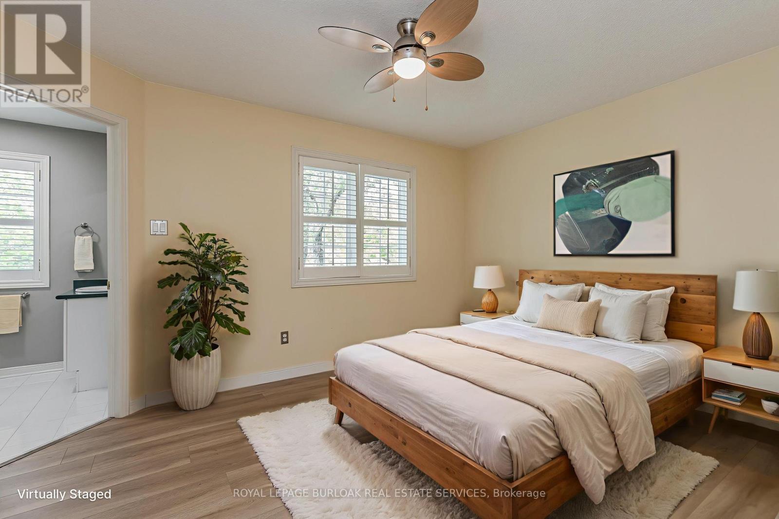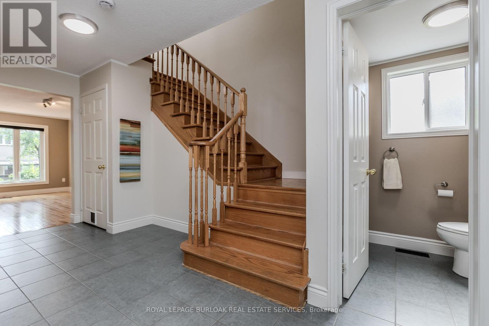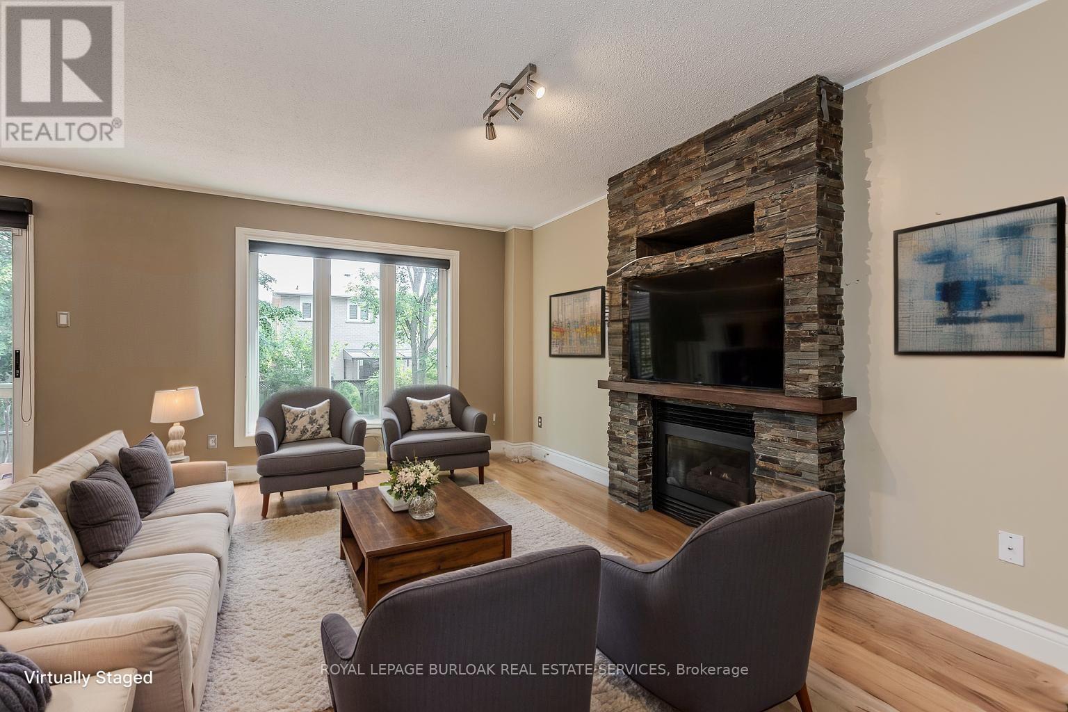 Looking for a Nice Home, Great Location & Value? Look No further.. This lovely detached home sits on a well-sized lot and offers 2122 sf of living space in one of Burlingtons most sought-after and family-friendly communities. Just a short drive to the lake and steps from several parks, this full brick home provides the perfect blend of comfort and convenience. Families will appreciate the proximity to excellent schools, shopping, GO Station (6 mins), and quick highway access for commuting. The front exterior is beautifully landscaped with mature trees and welcoming curb appeal - plus a 2-car garage for added security and convenience during snowy winter months. Inside, the main floor features hardwood throughout and a layout designed for ideal living. The eat-in kitchen showcases granite countertops, glass tile backsplash, brand new SS appliances, ceramic flooring, and a large over-sink window that floods the space with natural light. Enjoy casual meals in the breakfast nook or host guests in the dining area, which flows seamlessly into the living room. The heart of the home, the living room offers warmth and character with its stone gas fireplace w/ built-in media niche, and walk out to the back deck ideal for indoor-outdoor entertaining. Upstairs, you'll find 3 bedrooms, all with new laminate flooring. The bright primary suite features a 4pc ensuite, while a second 4pc bath serves the additional bedrooms. The finished lower level provides an abundance of additional living and a large open layout perfect for a rec room, play area, or home gym. Step outside to your own backyard retreat fully fenced, surrounded by mature trees, perennial gardens, offering both privacy and beauty. A wood deck creates the perfect setting for BBQs and relaxation, while ample green space provides room for yourself, kids or pets to enjoy freely. This home checks all the boxes thoughtful updates, a practical layout, and an ideal location. Don't miss your chance to make it yours! (id:24334)