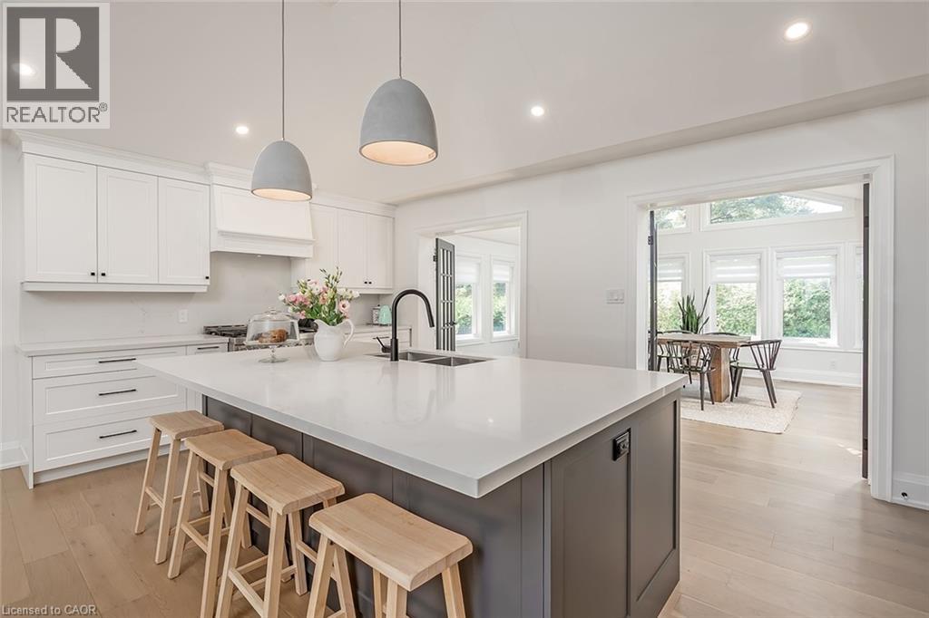 This incredible BUNGALOW in south Burlington has been extensively renovated and is move-in ready. Boasting top quality finishes and situated on a private lot, this home features 2+2 bedrooms, 3 full bathrooms and a double car garage! This home is located on a quiet street and is perfect for young families or empty nesters/retirees alike. Featuring a stunning open-concept floor plan, the main floor has smooth vaulted ceilings with pot lights and wide plank engineered hardwood flooring throughout. The amazing kitchen / dining room combination has 10.5-foot vaulted ceilings. The eat-in kitchen is wide open to the living room and features airy white custom cabinetry, a large accent island, quartz counters, gourmet stainless steel appliances and access to the large family room addition- with 11- foot vaulted ceilings and plenty of natural light. There are also 2 bedrooms, 2 fully renovated bathrooms and main floor laundry! The primary bedroom has a 4-piece ensuite with dual vanities, a walk-in shower and heated flooring. The finished lower level includes a large rec room, 3-piece bathroom with heated flooring, a bedroom, 2nd smaller bedroom, den and plenty of storage space! The exterior of the home has a private back / side yard with plenty of potential. There is a stone patio, pergola, large double car garage and a double driveway with parking for 6 cars! Situated in a quiet neighbourhood and close to all amenities- this home is completely move-in ready! (id:24334)