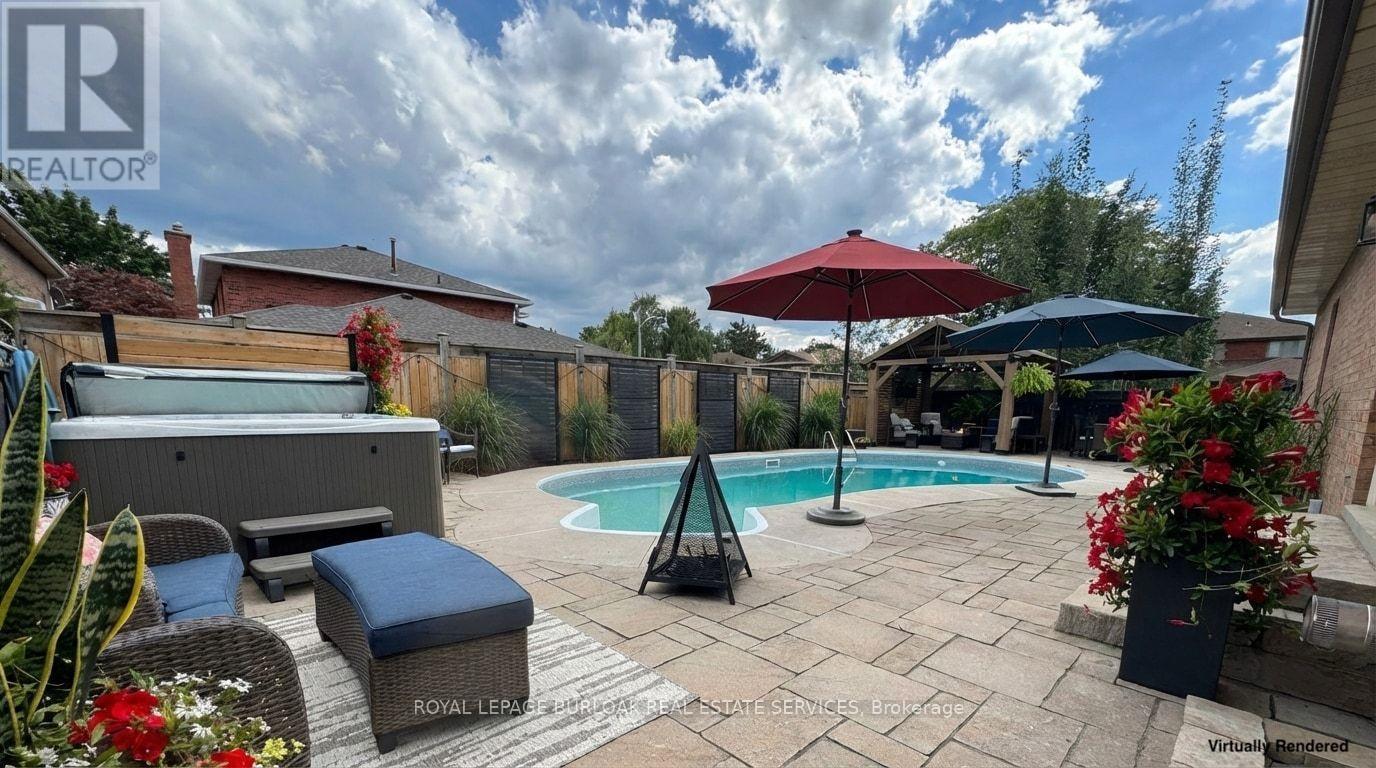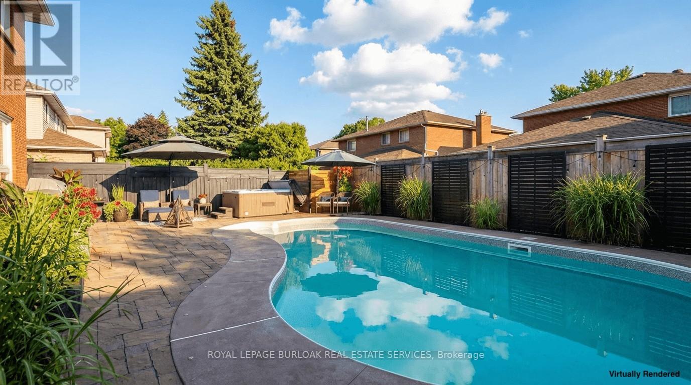 Welcome to a must-see fully upgraded home siding onto a quiet, family-friendly court in one of Dynes' most sought-after neighbourhoods within the Tuck Nelson school district and just mins to DT Burlington & Oakville. Offering an exceptional blend of luxury and timeless charm, this residence delivers 3,927sf of living space and an in-ground pool designed for comfort & entertaining. Upon arrival, the home impresses w/ manicured landscaping, & an interlock walkway. Inside, find hardwood floors throughout and a functional layout ideal for family living. A spacious living room w/ a large picture window invites quiet mornings, while the dining room shines w/ designer lighting. At the heart of the home, the chef's kitchen is both stunning & practical-complete w/ quartz countertops, subway tile backsplash, SS appliances, wall oven, gas range w/ pot filler & hood, custom cabinetry, valence lighting, coffee bar, beverage fridge, walk-in pantry & an oversized island w/ breakfast bar. Walkouts from both the kitchen & family room create seamless indoor-outdoor flow. The family room is warm and inviting w/ a rustic stone gas fireplace, wood mantle, & custom built-ins-perfect for movie nights. A stylish powder room and home office complete this level. Upstairs, the expansive primary retreat features a walk-in closet, wall-to-wall built-in wardrobe, and a spa-inspired ensuite w/ dual vanity & oversized glass shower w/ bench. 3 additional bedrooms & a beautifully finished 5pc main bath provide ample space for a growing family. The fully finished lower level offers versatility w/ premium vinyl flooring, generous storage, laundry room, additional bedroom, glass-enclosed exercise room, sleek 4pc bath, a rec room w/ wetbar & a striking stone gas fireplace. Step outside to a private, south-facing backyard oasis-fully fenced and designed for entertaining w/ an in-ground pool, interlock patio, cabana w/ lighting, hot tub, & landscaping. This is family living at its finest, inside and out. (id:24334)