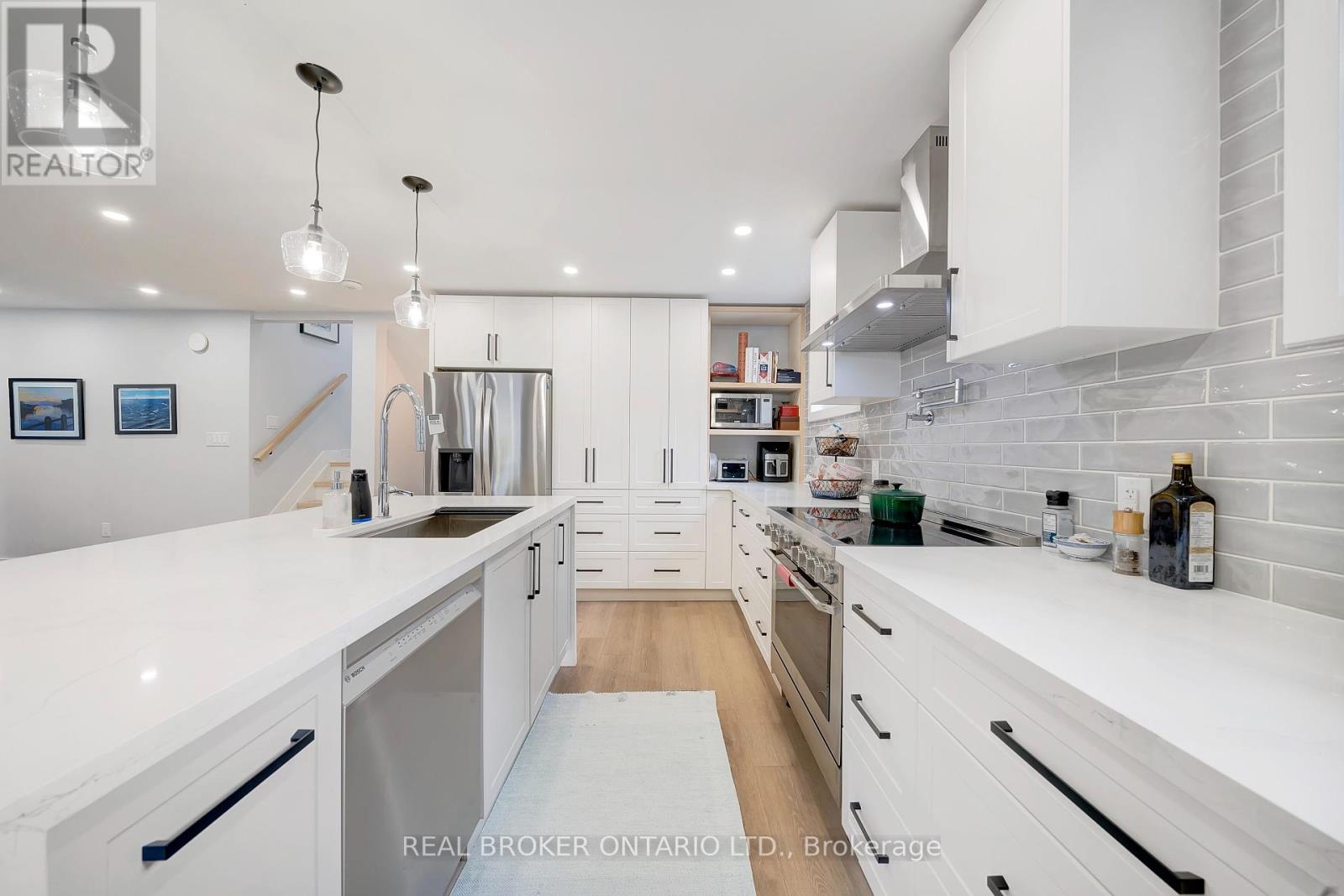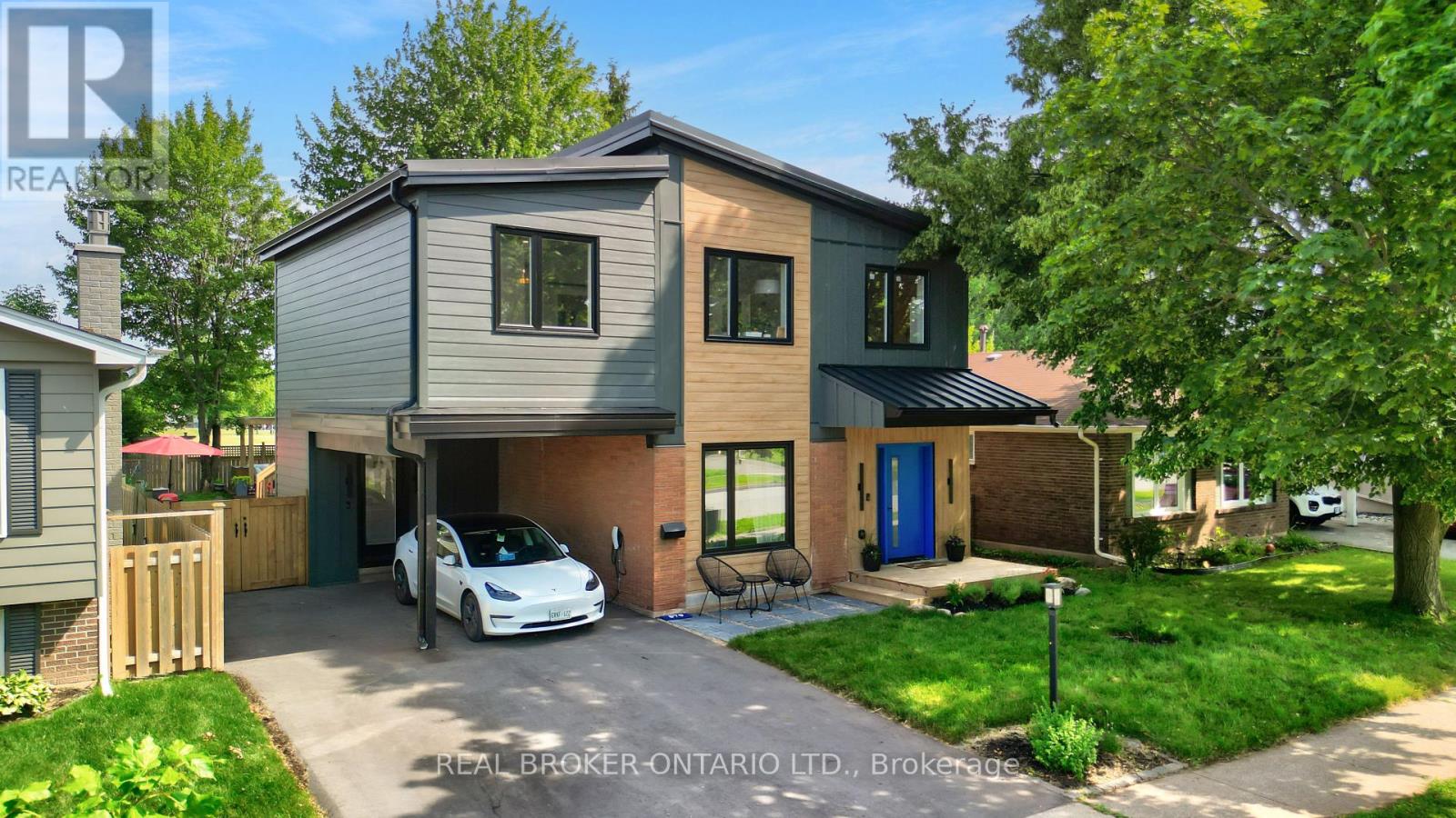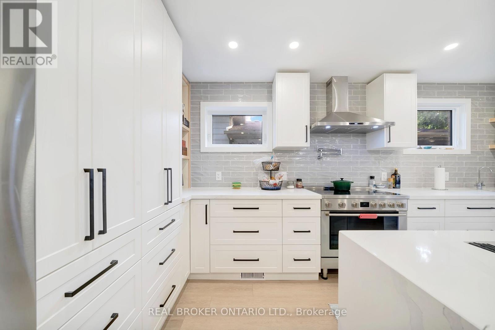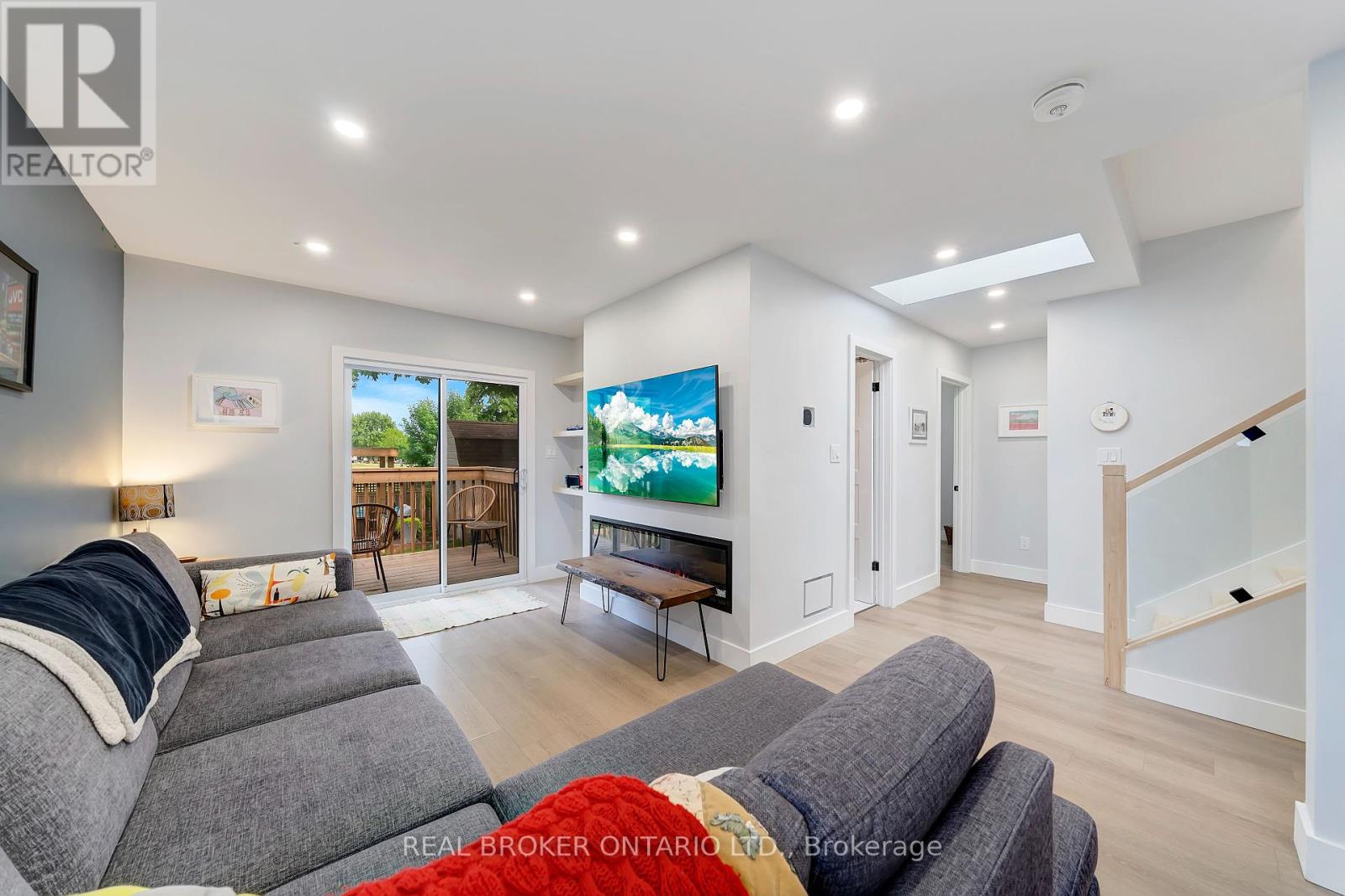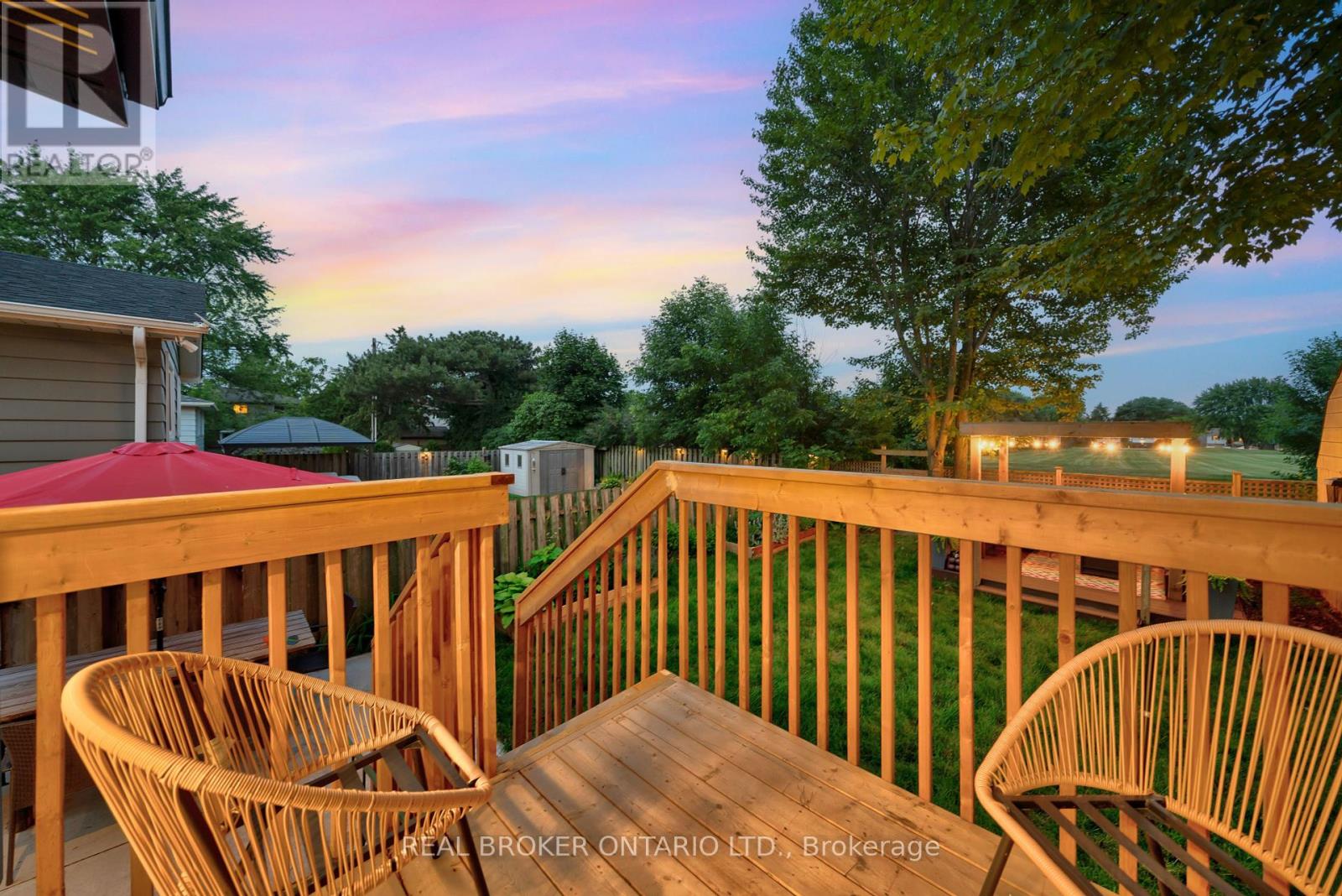 Welcome to 579 Chamberlain Road, a custom-renovated 4-bedroom + a separate home office, 4-bath home in the heart of Southeast Burlington. Set on a quiet street with Longmoor Park as your backyard, this property combines modern comfort with timeless style. The exterior makes a strong first impression with James Hardie siding, ChamClad accents, and a metal roof that's as durable as it is attractive. Inside, the chef's kitchen is the centrepiece of the home, featuring a quartz waterfall island, stainless steel appliances, and plenty of storage. Open living and dining spaces create a natural flow for family gatherings and entertaining. Upstairs, a bright family room walks out to the backyard, while the primary suite offers a walk-in closet and a spa-inspired ensuite with a skylight, double vanity, glass shower, and soaker tub. Four additional bedrooms provide flexibility for work, hobbies, or guests, with convenient second-floor laundry and four full bathrooms. The lower level adds even more living space with a recreation room, fitness area, snack bar, and a separate entrance. The backyard enjoys peaceful park views and direct access to the Centennial Bike Path. Upgrades include an EV charger, smart thermostat, video doorbells, smart switches, ethernet wiring, skylights, and a tankless water heater. Parking for three cars, a large shed, and a family-focused location near Nelson High School, Appleby GO, and major highways complete the package. Originally a backsplit, this home has been transformed with a custom second-floor addition a rare upgrade you couldn't rebuild today for this price. This is a rare opportunity to own a turnkey home in one of Burlington's most connected neighbourhoods. (id:24334)