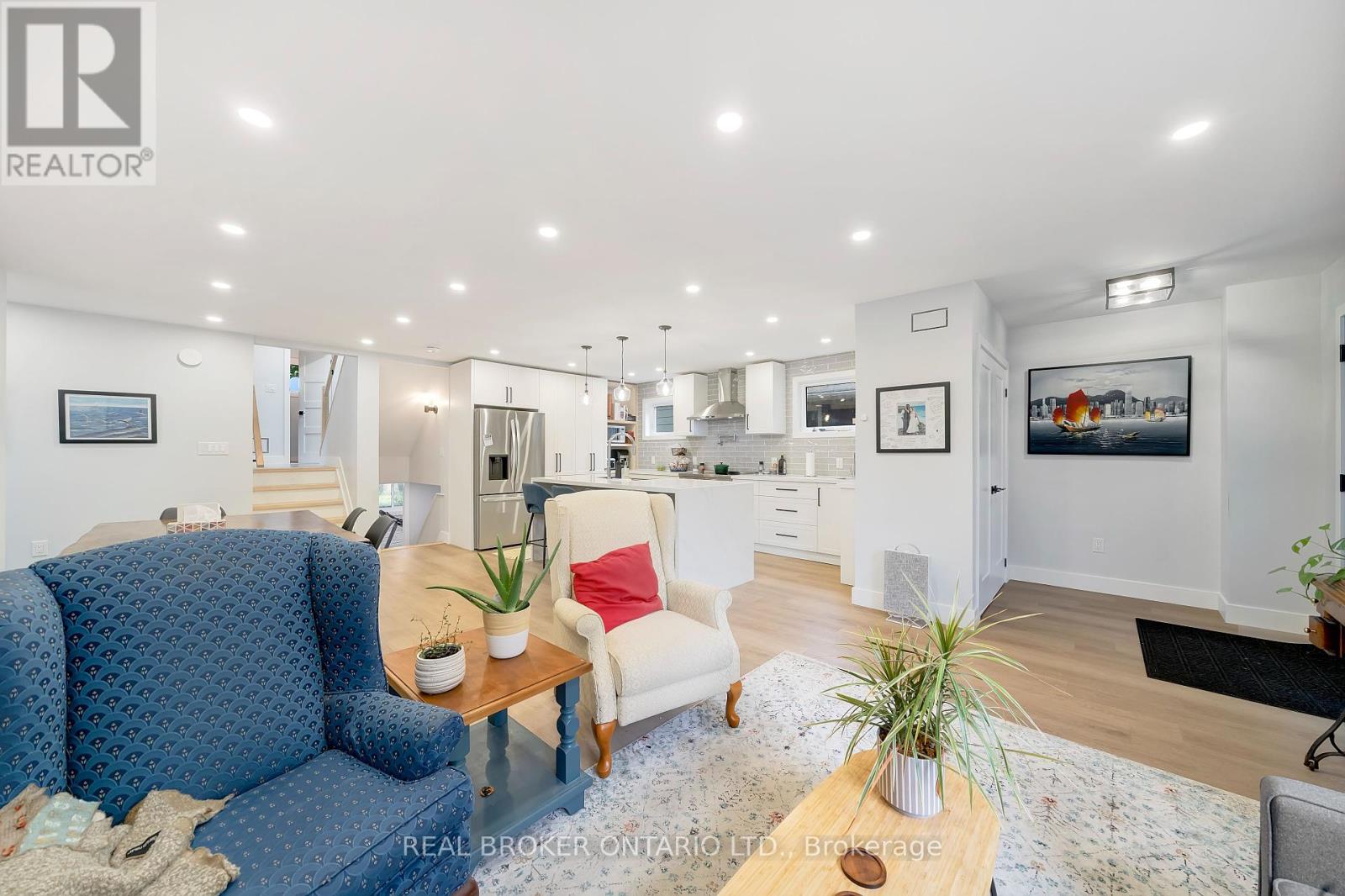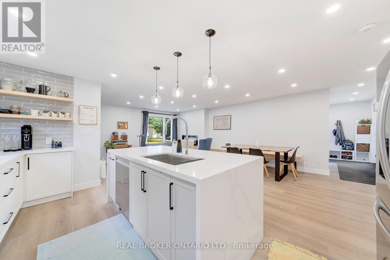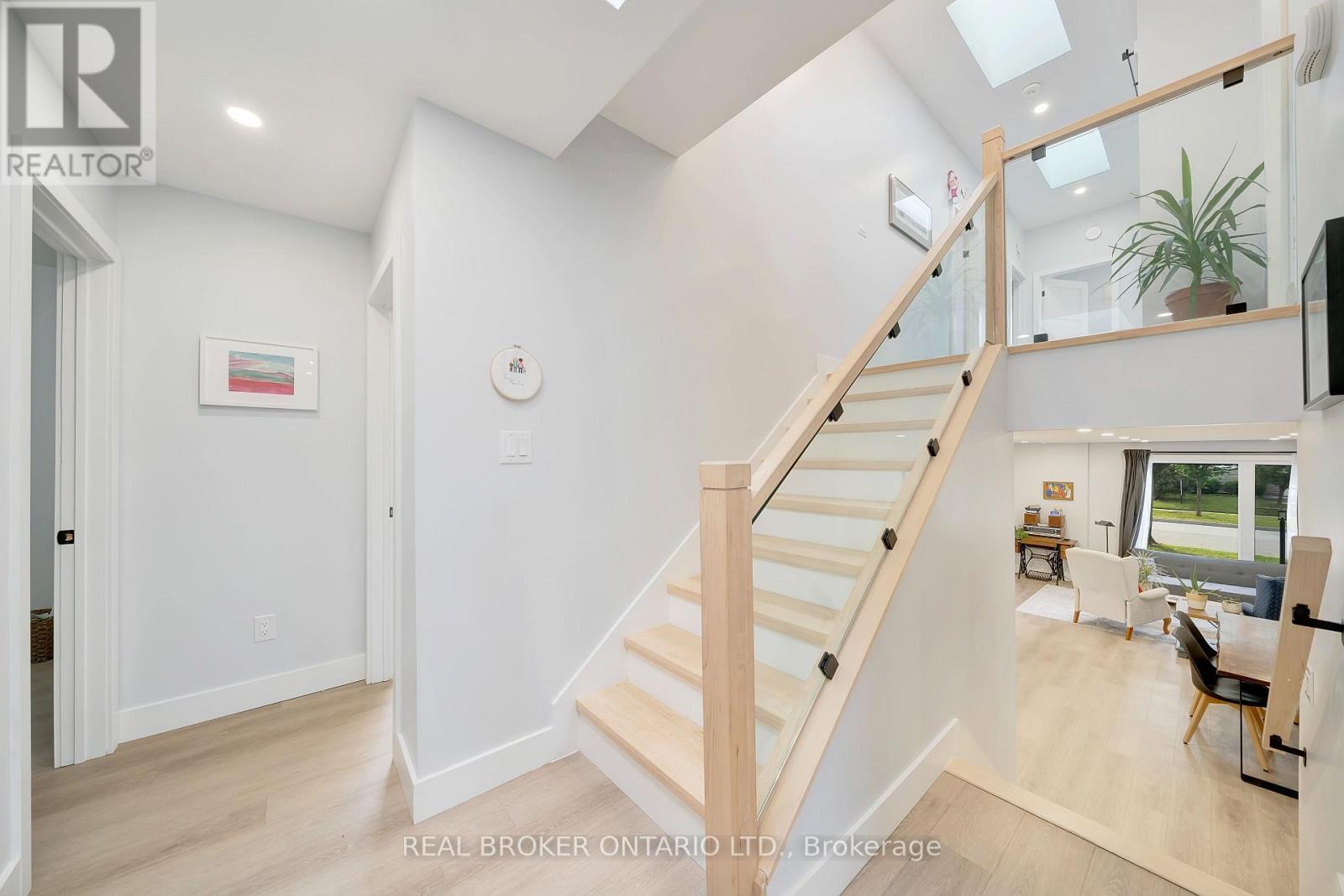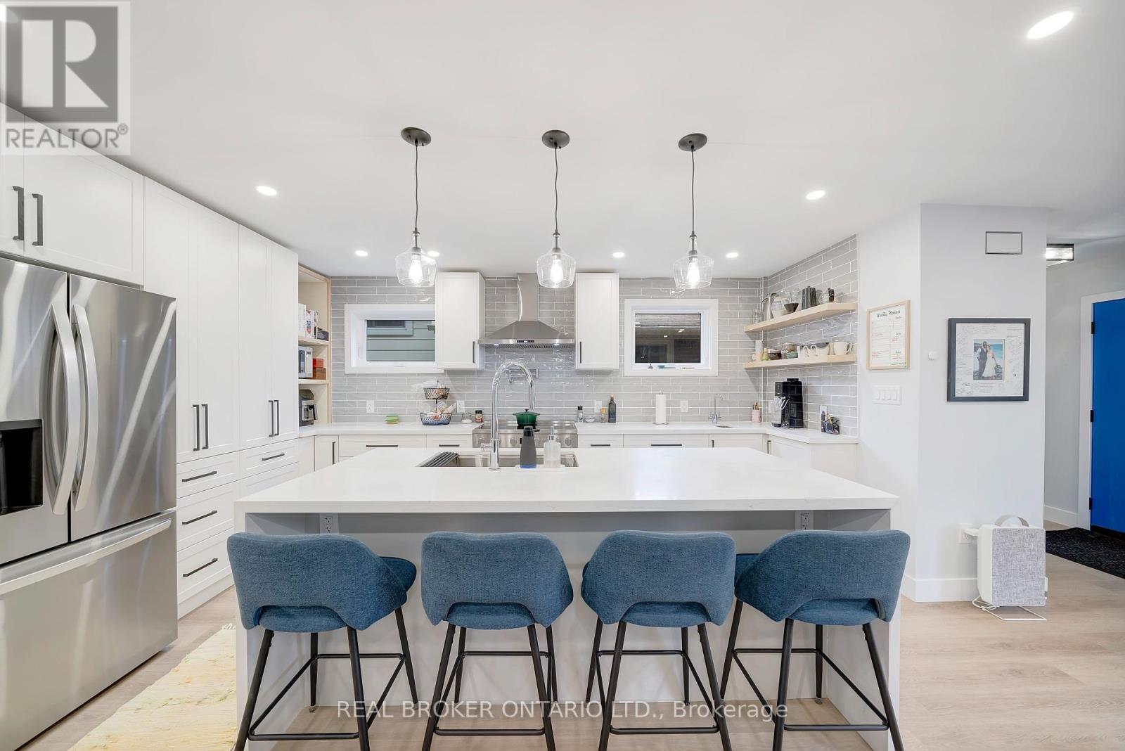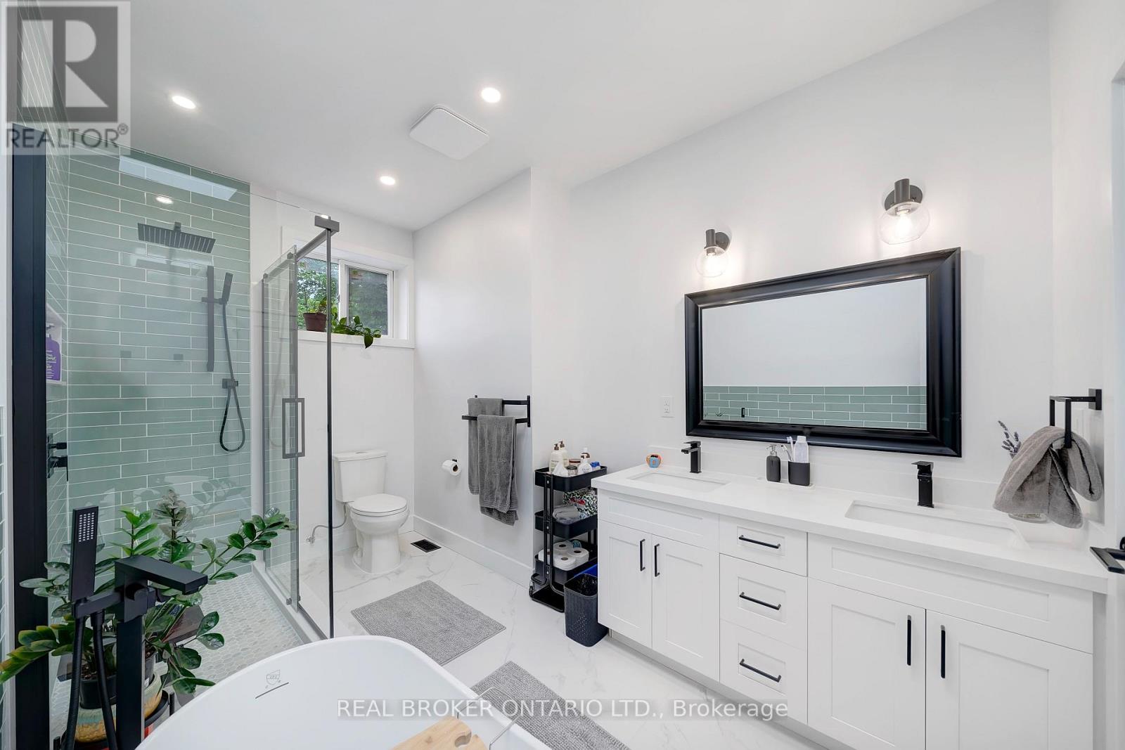 Welcome to 579 Chamberlain Road, a custom-renovated 4-bedroom + a separate home office, 4-bath home in the heart of Southeast Burlington. Set on a quiet street with Longmoor Park as your backyard, this property combines modern comfort with timeless style. The exterior makes a strong first impression with James Hardie siding, ChamClad accents, and a metal roof that's as durable as it is attractive. Inside, the chef's kitchen is the centrepiece of the home, featuring a quartz waterfall island, stainless steel appliances, and plenty of storage. Open living and dining spaces create a natural flow for family gatherings and entertaining. Upstairs, a bright family room walks out to the backyard, while the primary suite offers a walk-in closet and a spa-inspired ensuite with a skylight, double vanity, glass shower, and soaker tub. Four additional bedrooms provide flexibility for work, hobbies, or guests, with convenient second-floor laundry and four full bathrooms. The lower level adds even more living space with a recreation room, fitness area, snack bar, and a separate entrance. The backyard enjoys peaceful park views and direct access to the Centennial Bike Path. Upgrades include an EV charger, smart thermostat, video doorbells, smart switches, ethernet wiring, skylights, and a tankless water heater. Parking for three cars, a large shed, and a family-focused location near Nelson High School, Appleby GO, and major highways complete the package. Originally a backsplit, this home has been transformed with a custom second-floor addition a rare upgrade you couldn't rebuild today for this price. This is a rare opportunity to own a turnkey home in one of Burlington's most connected neighbourhoods. (id:24334)