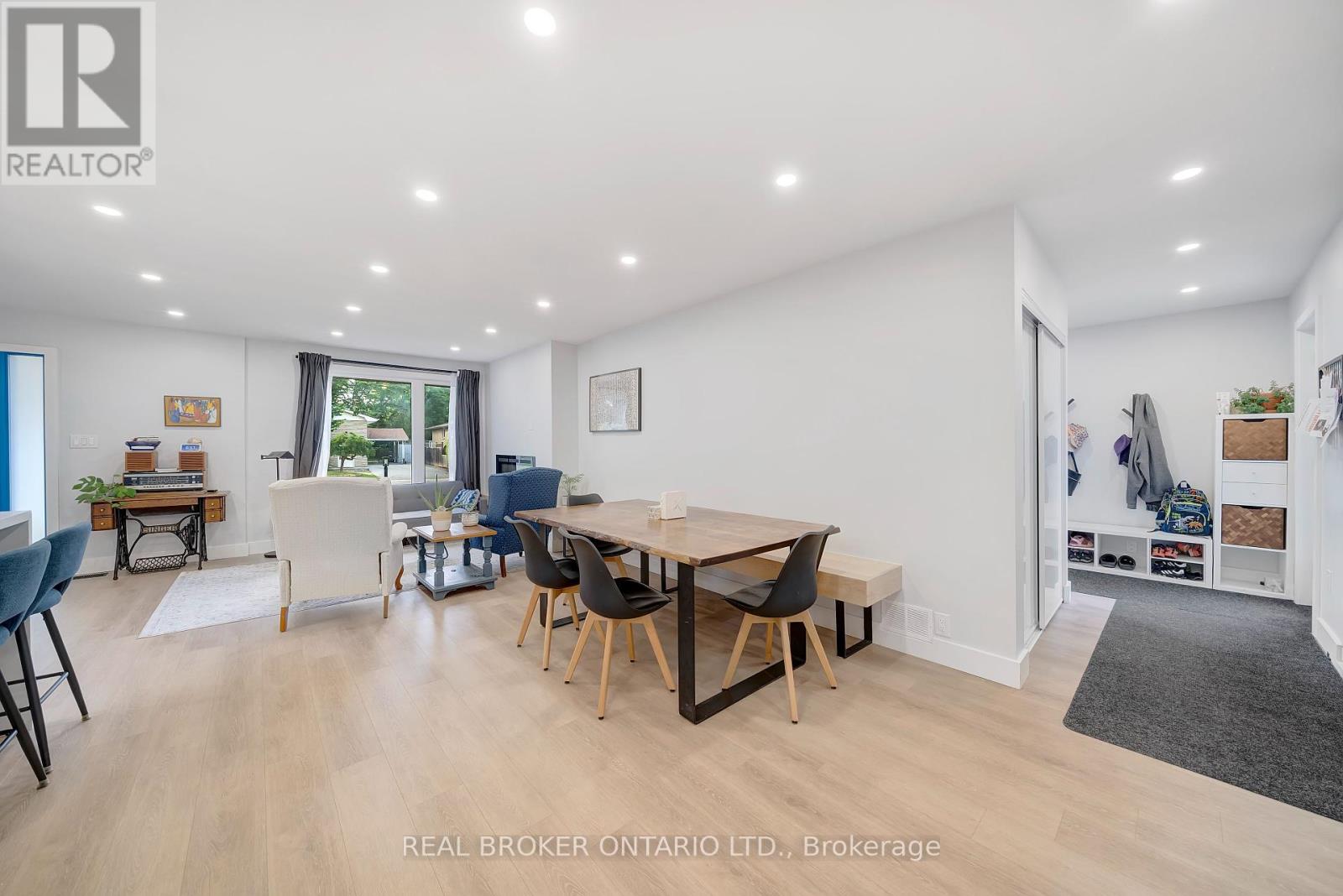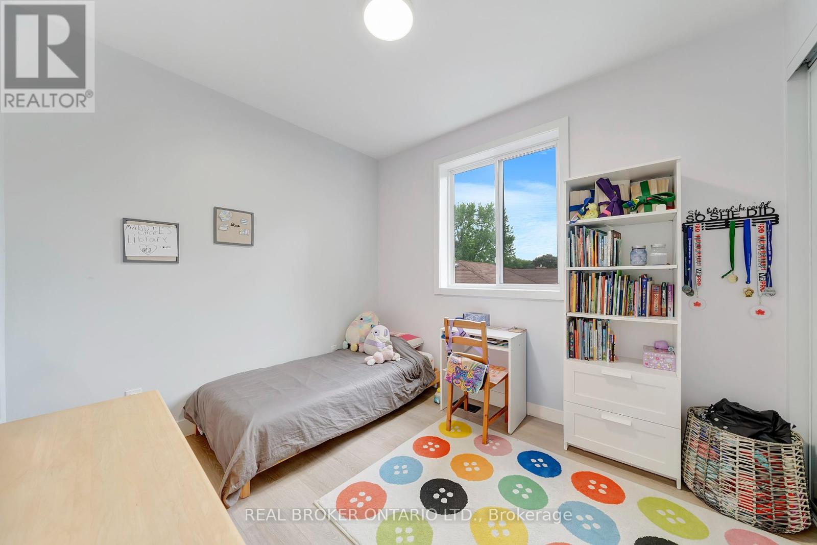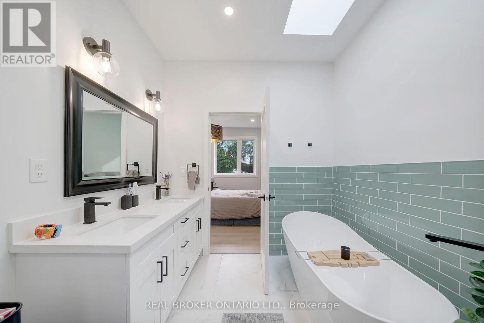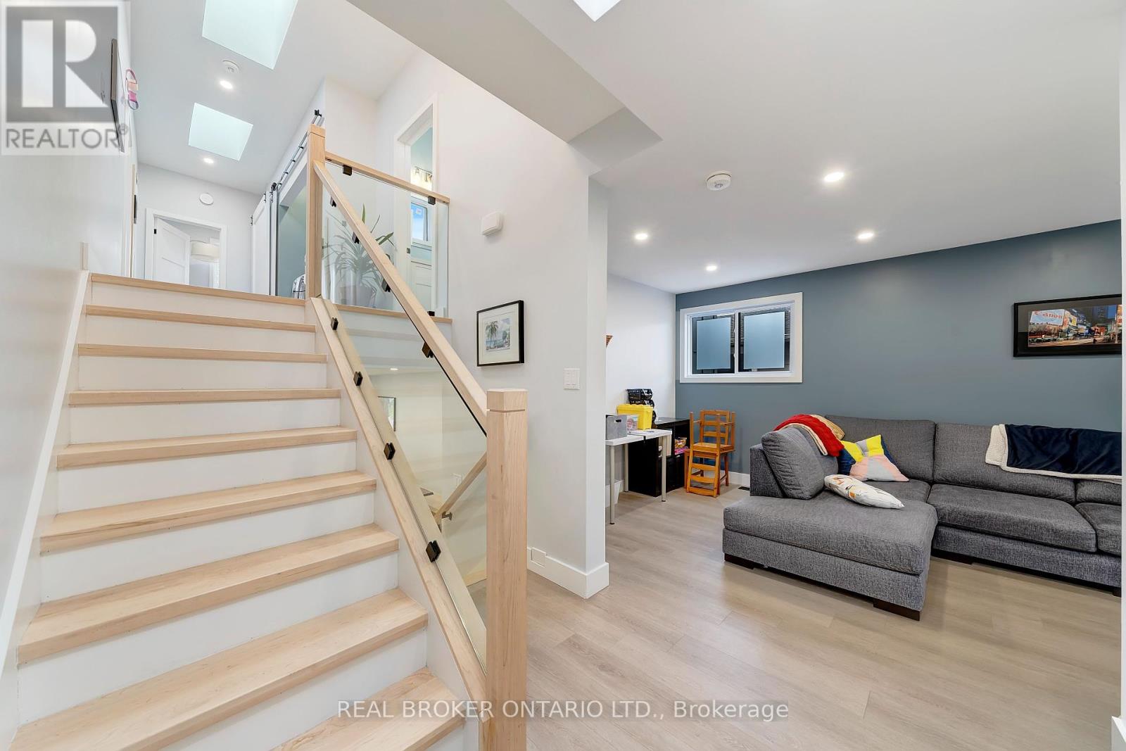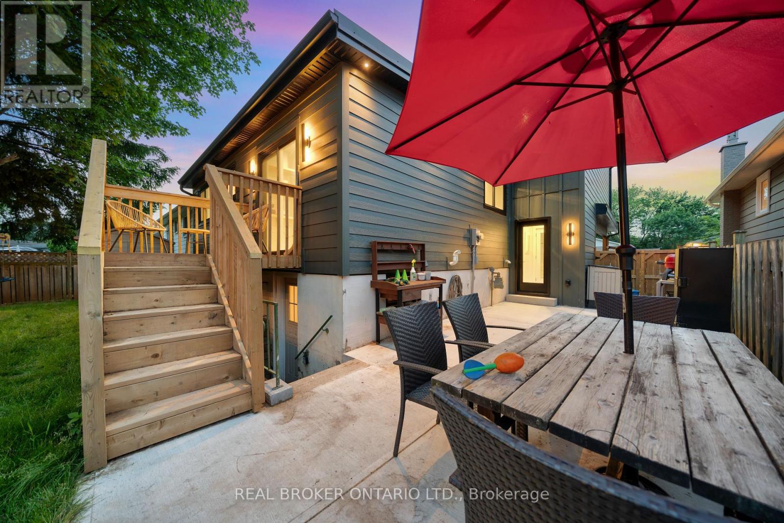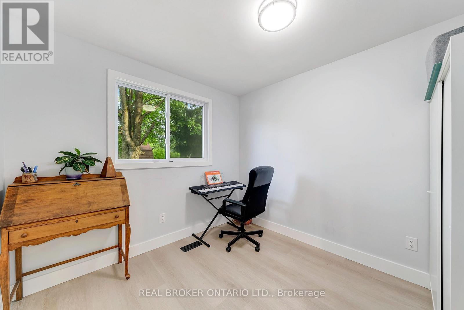 Welcome to 579 Chamberlain Road, a custom-renovated 4-bedroom + a separate home office, 4-bath home in the heart of Southeast Burlington. Set on a quiet street with Longmoor Park as your backyard, this property combines modern comfort with timeless style. The exterior makes a strong first impression with James Hardie siding, ChamClad accents, and a metal roof that's as durable as it is attractive. Inside, the chef's kitchen is the centrepiece of the home, featuring a quartz waterfall island, stainless steel appliances, and plenty of storage. Open living and dining spaces create a natural flow for family gatherings and entertaining. Upstairs, a bright family room walks out to the backyard, while the primary suite offers a walk-in closet and a spa-inspired ensuite with a skylight, double vanity, glass shower, and soaker tub. Four additional bedrooms provide flexibility for work, hobbies, or guests, with convenient second-floor laundry and four full bathrooms. The lower level adds even more living space with a recreation room, fitness area, snack bar, and a separate entrance. The backyard enjoys peaceful park views and direct access to the Centennial Bike Path. Upgrades include an EV charger, smart thermostat, video doorbells, smart switches, ethernet wiring, skylights, and a tankless water heater. Parking for three cars, a large shed, and a family-focused location near Nelson High School, Appleby GO, and major highways complete the package. Originally a backsplit, this home has been transformed with a custom second-floor addition a rare upgrade you couldn't rebuild today for this price. This is a rare opportunity to own a turnkey home in one of Burlington's most connected neighbourhoods. (id:24334)