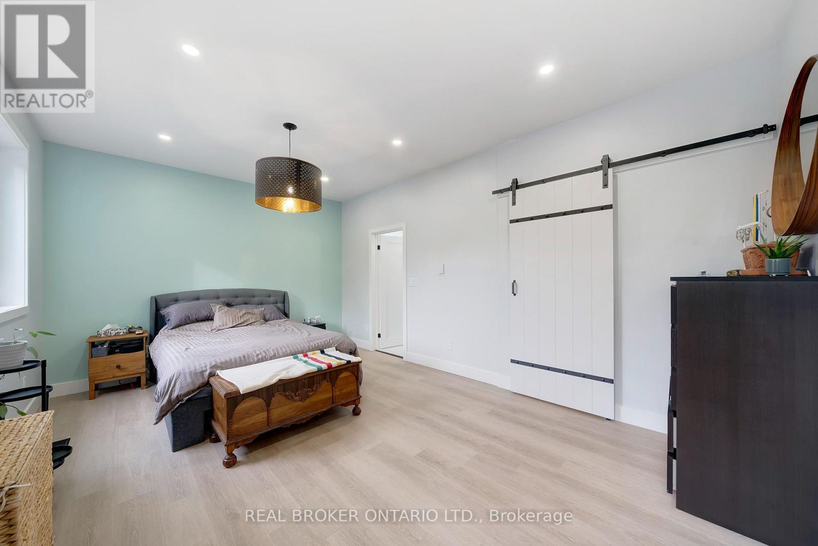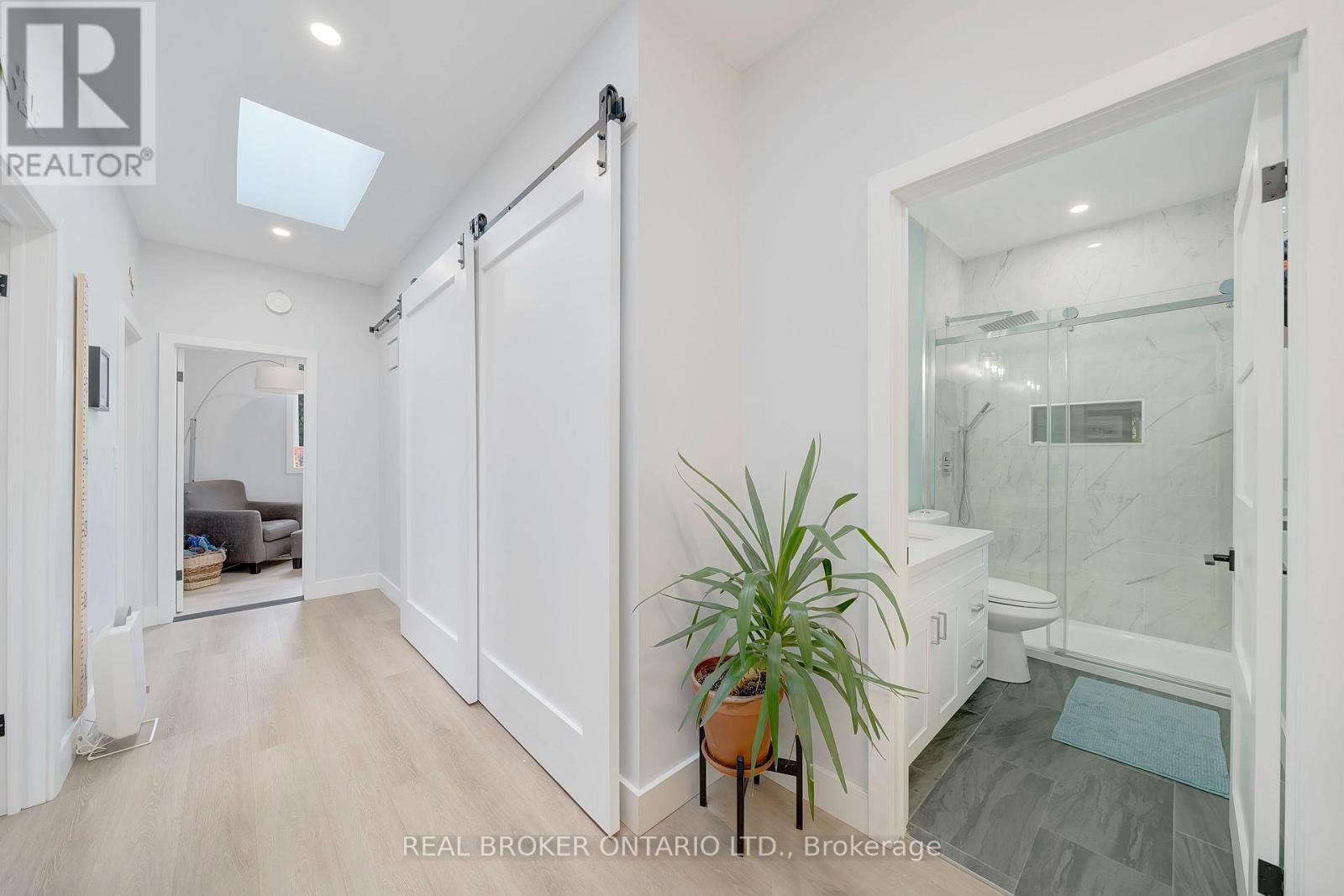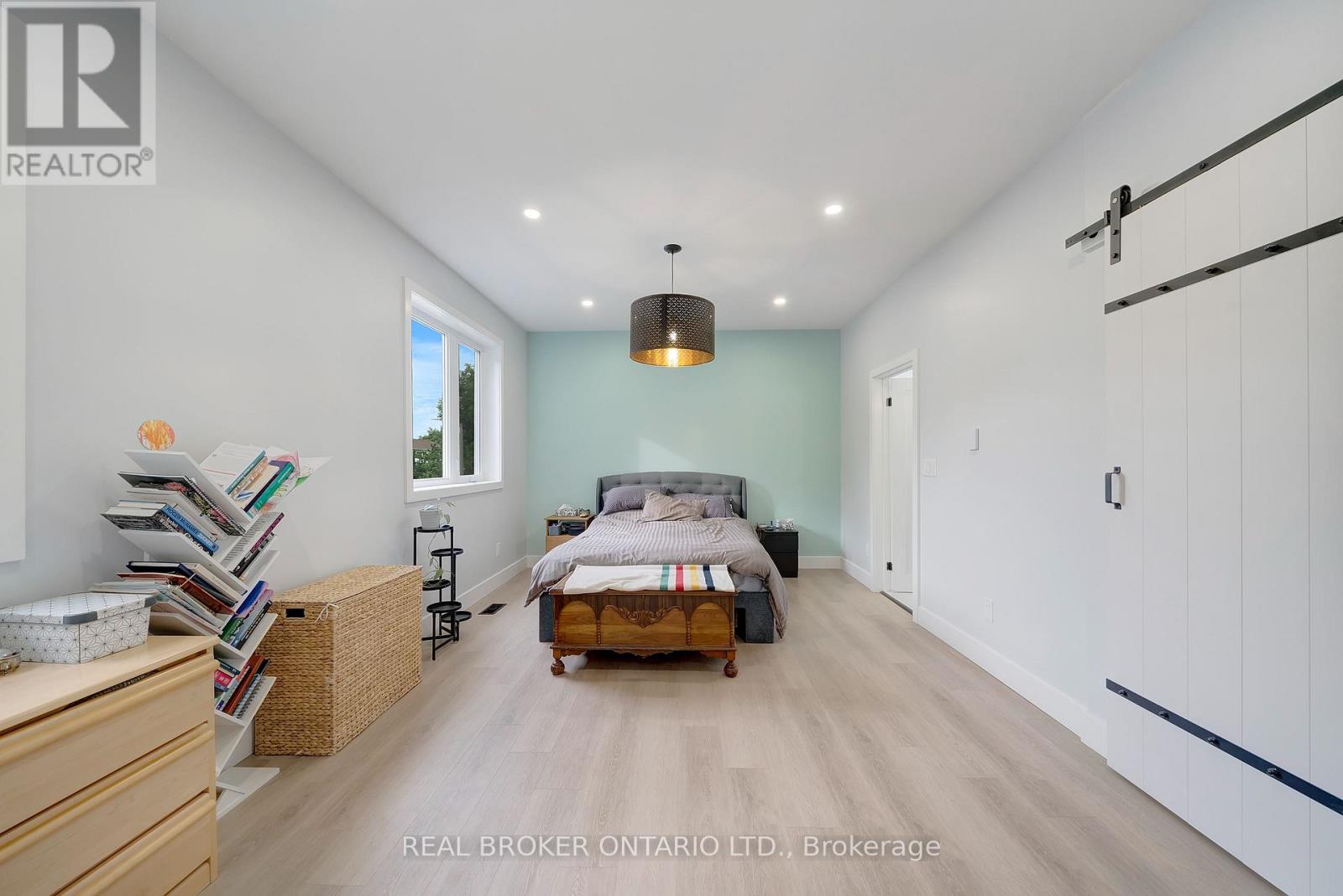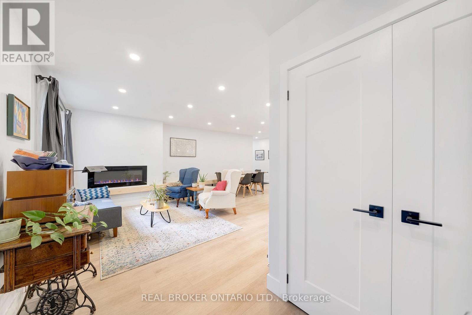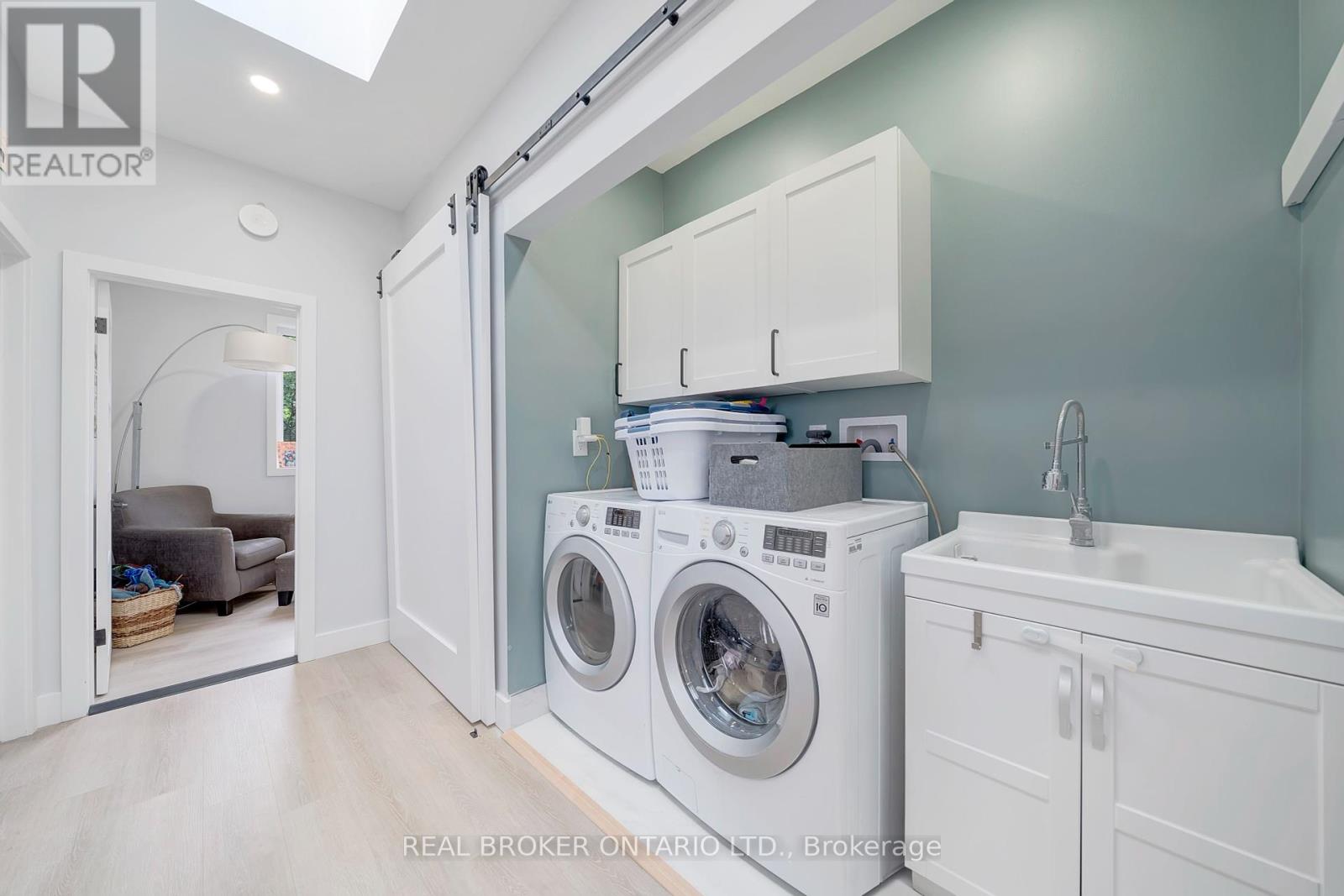 Welcome to 579 Chamberlain Road, a custom-renovated 4-bedroom + a separate home office, 4-bath home in the heart of Southeast Burlington. Set on a quiet street with Longmoor Park as your backyard, this property combines modern comfort with timeless style. The exterior makes a strong first impression with James Hardie siding, ChamClad accents, and a metal roof that's as durable as it is attractive. Inside, the chef's kitchen is the centrepiece of the home, featuring a quartz waterfall island, stainless steel appliances, and plenty of storage. Open living and dining spaces create a natural flow for family gatherings and entertaining. Upstairs, a bright family room walks out to the backyard, while the primary suite offers a walk-in closet and a spa-inspired ensuite with a skylight, double vanity, glass shower, and soaker tub. Four additional bedrooms provide flexibility for work, hobbies, or guests, with convenient second-floor laundry and four full bathrooms. The lower level adds even more living space with a recreation room, fitness area, snack bar, and a separate entrance. The backyard enjoys peaceful park views and direct access to the Centennial Bike Path. Upgrades include an EV charger, smart thermostat, video doorbells, smart switches, ethernet wiring, skylights, and a tankless water heater. Parking for three cars, a large shed, and a family-focused location near Nelson High School, Appleby GO, and major highways complete the package. Originally a backsplit, this home has been transformed with a custom second-floor addition a rare upgrade you couldn't rebuild today for this price. This is a rare opportunity to own a turnkey home in one of Burlington's most connected neighbourhoods. (id:24334)
