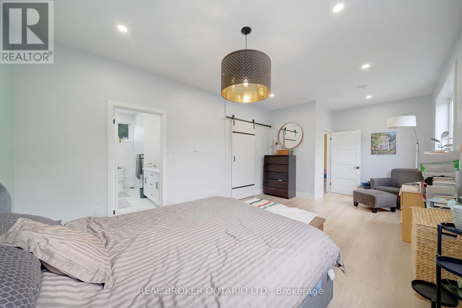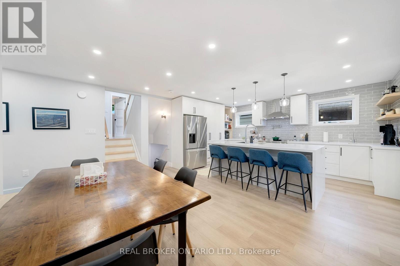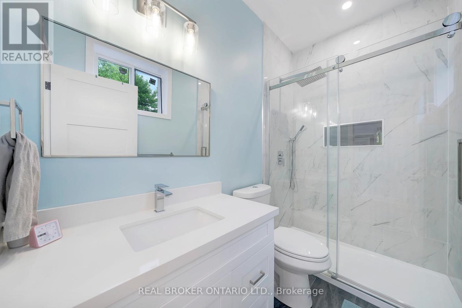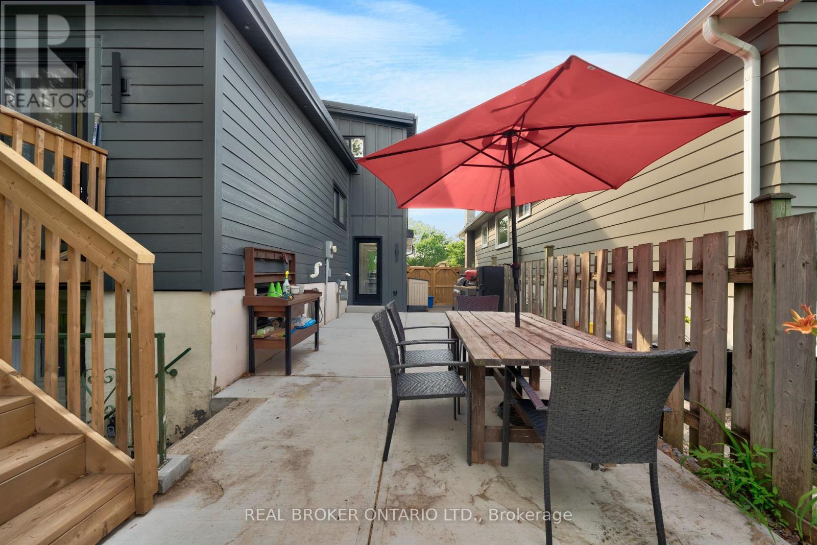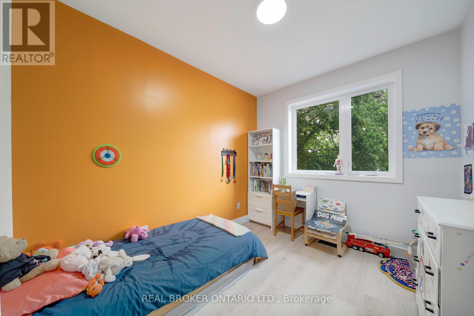 Welcome to 579 Chamberlain Road, a custom-renovated 4-bedroom + a separate home office, 4-bath home in the heart of Southeast Burlington. Set on a quiet street with Longmoor Park as your backyard, this property combines modern comfort with timeless style. The exterior makes a strong first impression with James Hardie siding, ChamClad accents, and a metal roof that's as durable as it is attractive. Inside, the chef's kitchen is the centrepiece of the home, featuring a quartz waterfall island, stainless steel appliances, and plenty of storage. Open living and dining spaces create a natural flow for family gatherings and entertaining. Upstairs, a bright family room walks out to the backyard, while the primary suite offers a walk-in closet and a spa-inspired ensuite with a skylight, double vanity, glass shower, and soaker tub. Four additional bedrooms provide flexibility for work, hobbies, or guests, with convenient second-floor laundry and four full bathrooms. The lower level adds even more living space with a recreation room, fitness area, snack bar, and a separate entrance. The backyard enjoys peaceful park views and direct access to the Centennial Bike Path. Upgrades include an EV charger, smart thermostat, video doorbells, smart switches, ethernet wiring, skylights, and a tankless water heater. Parking for three cars, a large shed, and a family-focused location near Nelson High School, Appleby GO, and major highways complete the package. Originally a backsplit, this home has been transformed with a custom second-floor addition a rare upgrade you couldn't rebuild today for this price. This is a rare opportunity to own a turnkey home in one of Burlington's most connected neighbourhoods. (id:24334)