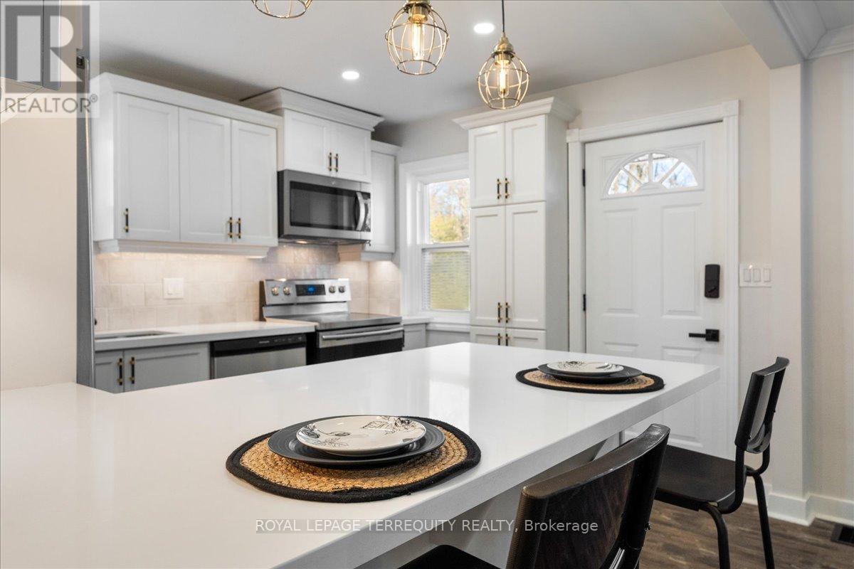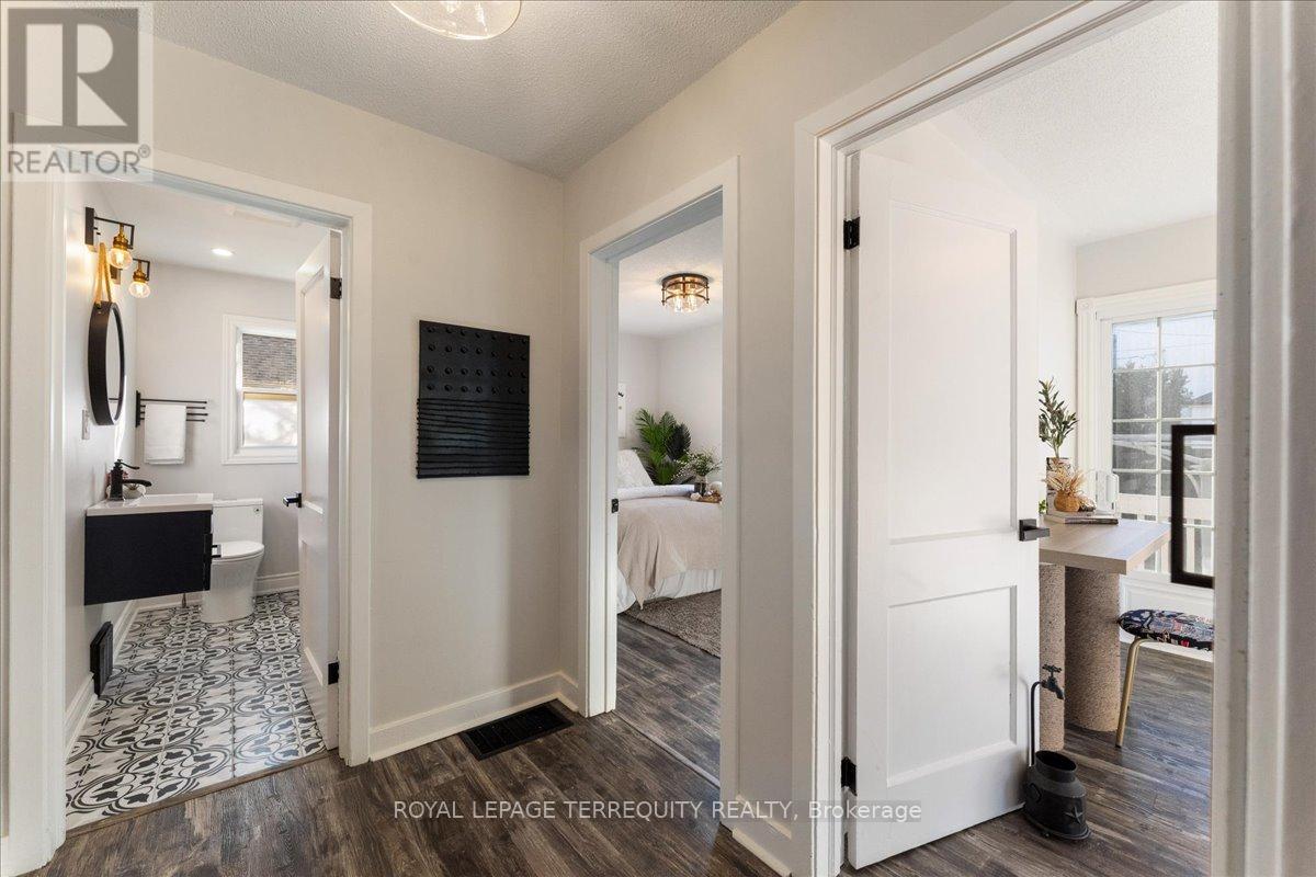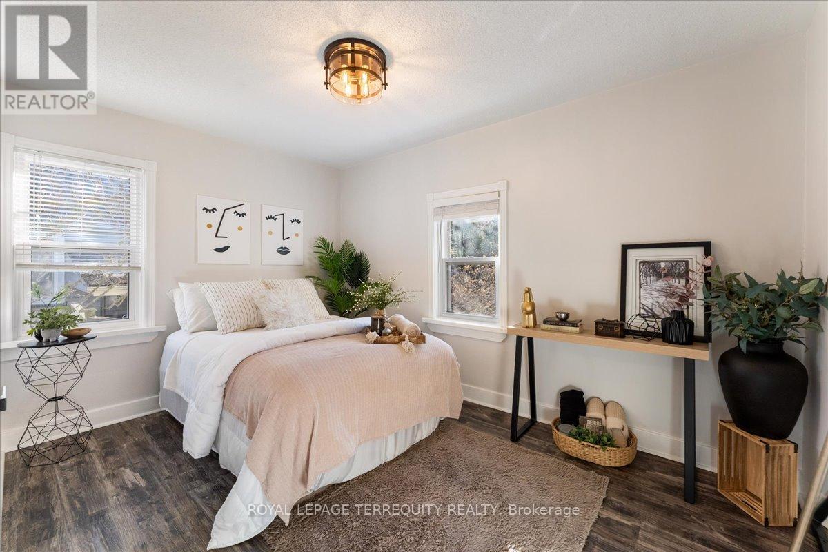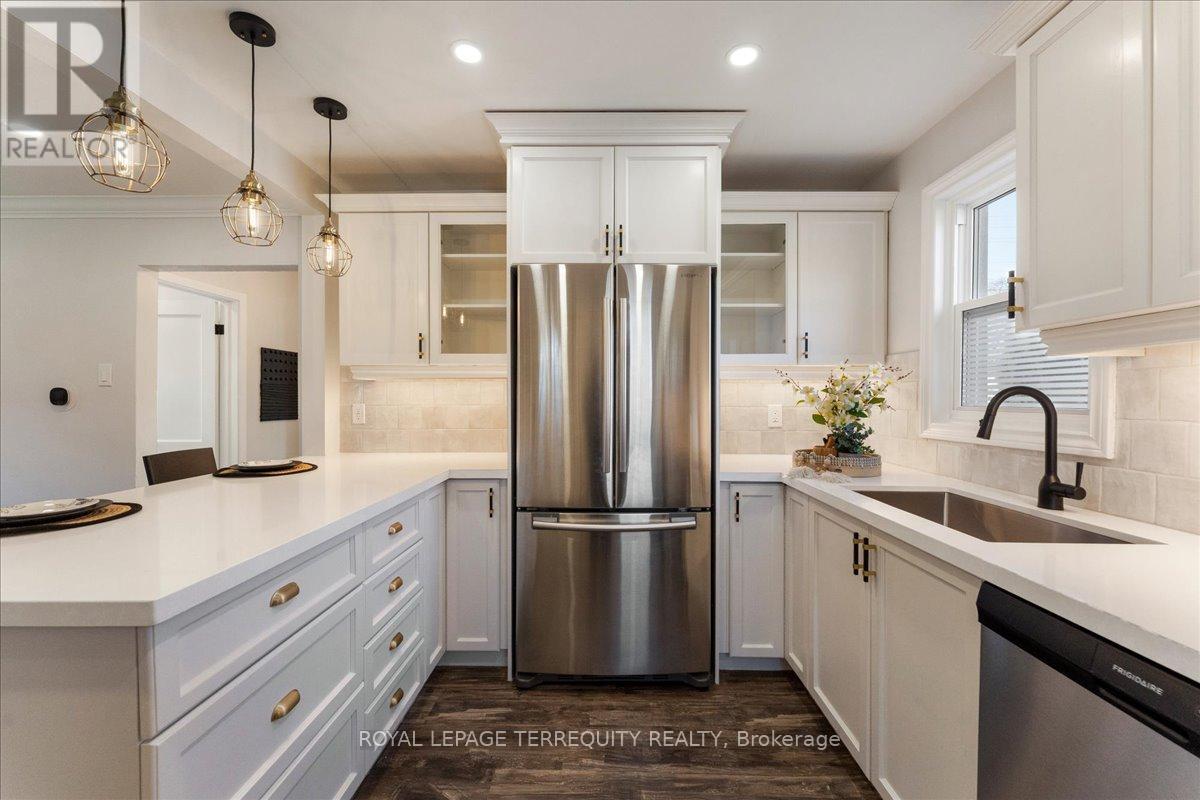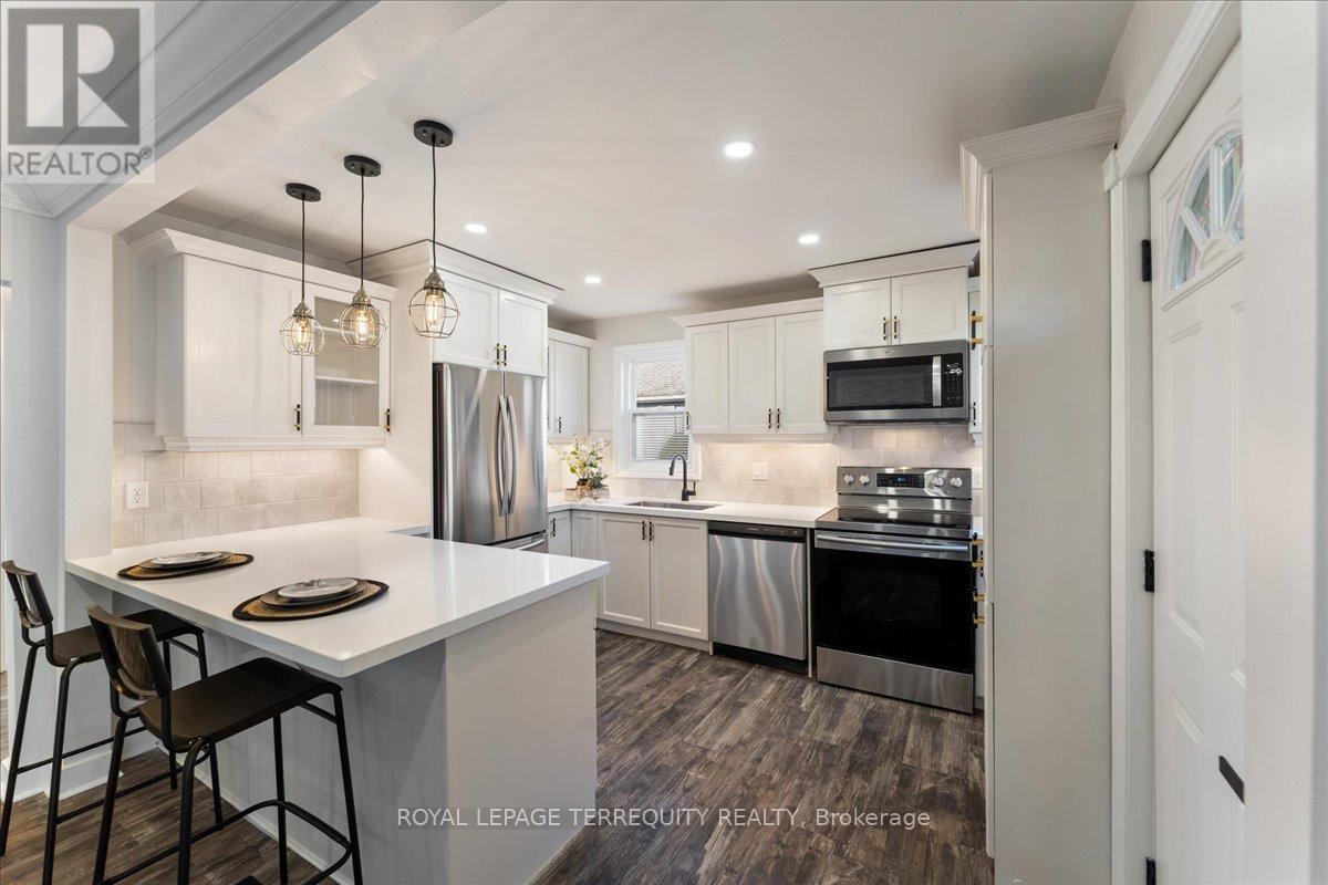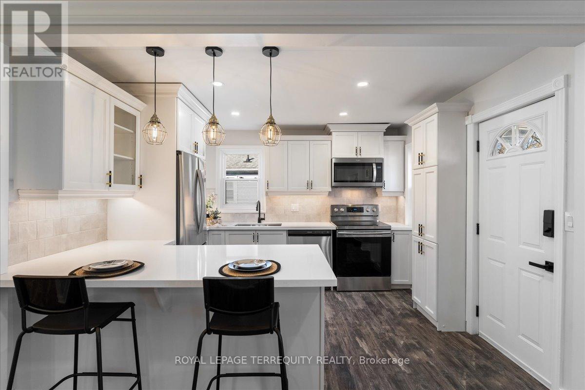 Beautifully updated detached home, just steps from vibrant downtown Burlington, the lake and Spencer Smith Park. Featuring an open-concept living, luxury vinyl flooring throughout, stainless steel appliances, and a convenient breakfast bar perfect for casual dining. 2nd bedroom offers a walk- out to a large, fenced yard, perfect for morning coffee and gardeners. Basement includes a third bedroom, plus a family room with a gas fireplace for movie nights. Smart features include thermostat and keyless entry. Window coverings in some rooms included. Driveway can accommodate 2 cars. With its mix of modern upgrades and warm charm, this home is move-in ready and a wonderful place to enjoy all Burlington has to offer. (id:24334)