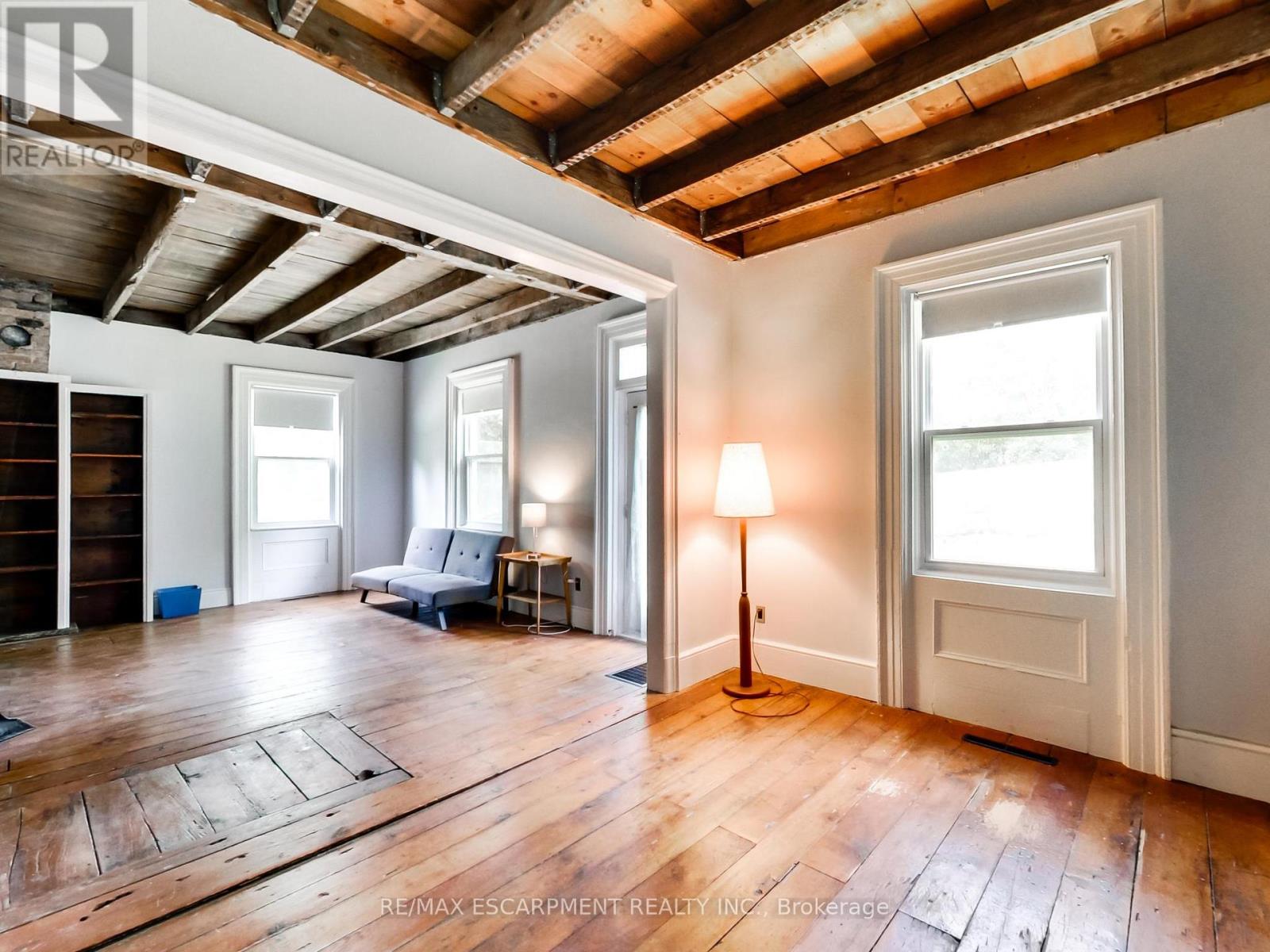 **Value is in the Land 1.1 acres** Looking for the perfect land to build your dream home? This Lowville area known for estate homes, greenspace, escarpment views and more. It's just 15 minutes from Milton or Burlington but secluded enough to get away from it all. This one is walking distance from Lowville Park, golf courses, conservation areas and close to the Bruce Trail. As a bonus to just land, there is a charming 1-1/2 storey, 2 bed, 1 bath (renovated 2020) cottage-like home that is functional and could provide rental income or a lodging while you build your new place further back on the lot. There is a separate garage with power, a large driveway with parking for up to 6 cars. The garage can be removed or repaired but for the time being, it's an established structure on the land which may prove helpful for your rebuild plans. Recent Updates to the home Include: Roof shingles (2020), Plumbing (2020), Sump & sludge pump (2020), Hot water tank (2022), Water pump & pressure tank (2022), and Reverse osmosis for drinking water (2023). Only 10 minutes away from highways 401 and 407 and not too far from shopping and other amenities. It's the spot you've been looking for. (id:24334)