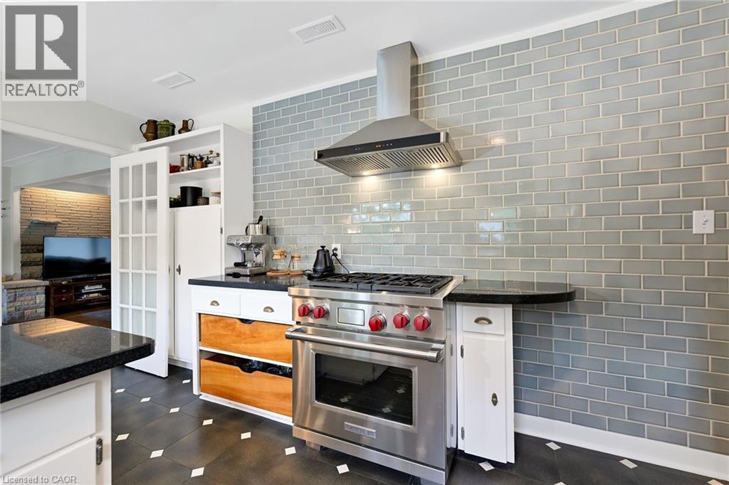 Welcome to this beautifully updated, sprawling 5-bedroom, 4-bathroom ranch offering over 3,700 sq. ft. of versatile living space. Ideally set on an expansive 96 x 124 ft private, tree-lined lot in a quiet & highly sought after South Aldershot neighbourhood, this exceptional home blends quality finishes, functional layout, stunning grounds, & an unbeatable location. The foyer greets you & opens to a bright, open concept living & dining area, with hardwood floors, striking stone fireplace, & large picture window. The kitchen is an inspiring space to cook & gather, featuring a Wolf range, generous counter space, two large pantries, a casual dine-in area, & gorgeous backyard views. The thoughtful split-bedroom floor plan is ideal for families & multi-generational living. The private primary retreat includes a den or sitting area & a luxurious, spa-inspired ensuite. A second bedroom & powder room complete this wing, while three additional generously sized bedrooms & a newly updated 3-pc bathroom are located at the other end of the home. The backyard is a true showstopper, your own private resort! Enjoy summer days by the in-ground pool, relax beneath the custom pergola, or entertain family & friends in this serene, fully fenced oasis. The finished lower level offers outstanding space & flexibility, featuring a large rec room with fireplace & custom bar, 3-pc bathroom, office, den, laundry area, workout room, & extensive storage including a cedar-lined closet. With three separate entrances, the layout is ideal for a potential in-law suite. Additional highlights include a double garage with inside entry. The location is ideal, close to Lake Ontario, walking & biking trails, parks, schools, hospital & downtown Burlington’s shops & restaurants. Plus easy commuting with quick access to the GO Train & major highways. 655 Gayne offers an abundance of space and an idyllic lifestyle. Simply move in and enjoy! A full list of features and updates is available upon request. (id:24334)