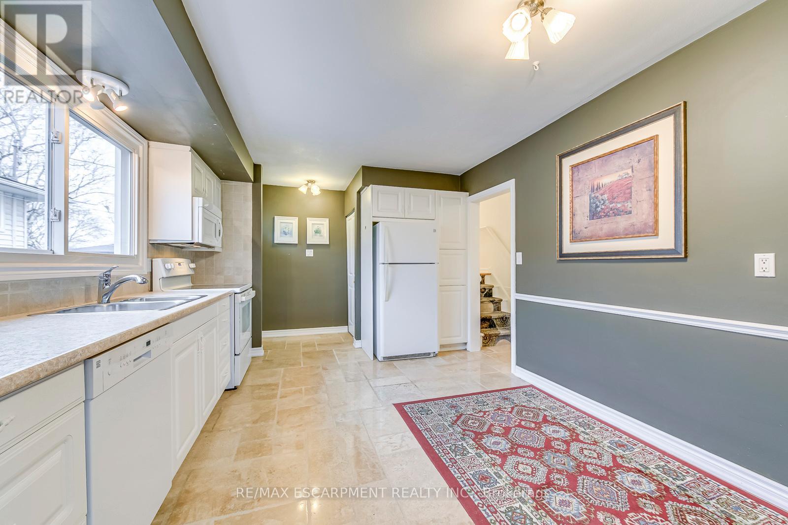 Welcome home to this beautiful and quiet detached 3-level back split located in desirable Dynes neighborhood. This home offers 3 bedroom,1.5 bath, finished lower level and a fenced yard. The welcoming front yard features a bed planted with native pollinators from Conservation Halton. Step into the main floor, where you'll find a spacious living room, dining area, and an eat-in kitchen with natural stone flooring. The upper level hosts three sizeable bedrooms and a 4pc bath. The finished lower level offers a generously sized rec room, a convenient 2pc bath, laundry area, and a spacious crawl space for additional storage. Outdoor enthusiasts will enjoy the yard with plenty of garden space. Roof replaced in 2019. Bottom of the driveway was repaved (following municipal construction) in 2023. New furnace and air conditioning installed in 2022. Rear fence replaced (along the property line) 2021. Conveniently located close to schools, parks, shopping, highway access, and within walking distance to the Burlington mall. Available Feb 1, 2026. (id:24334)
