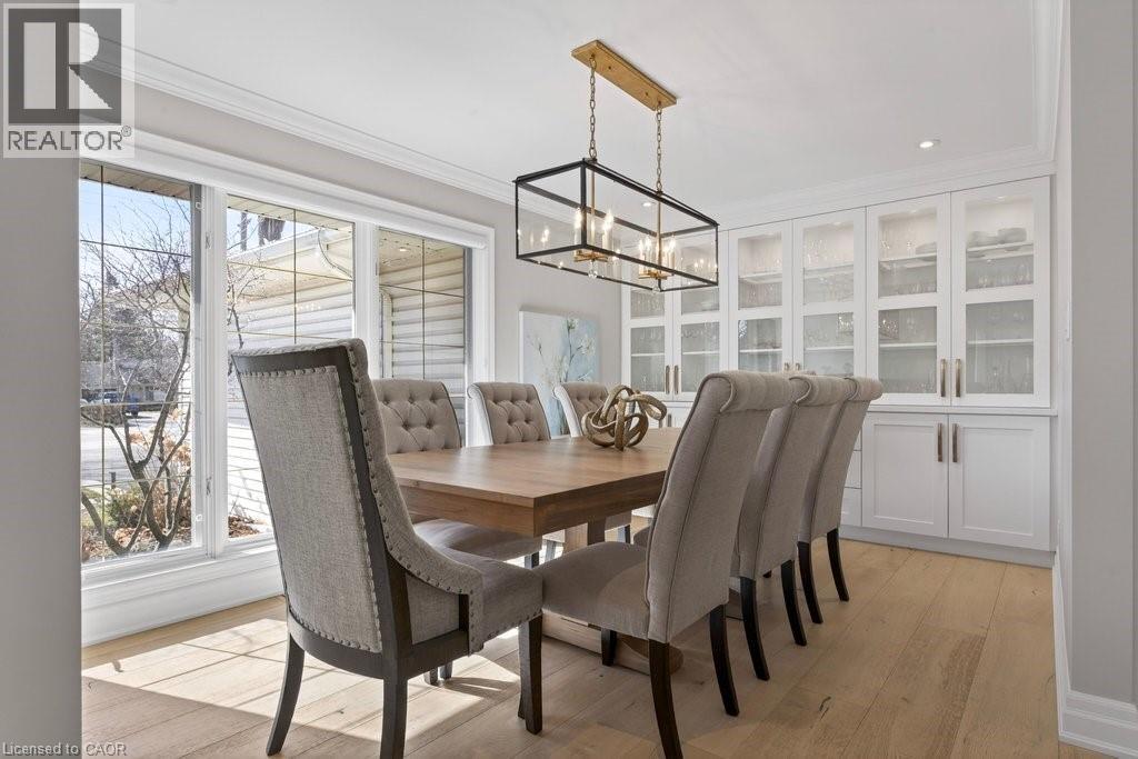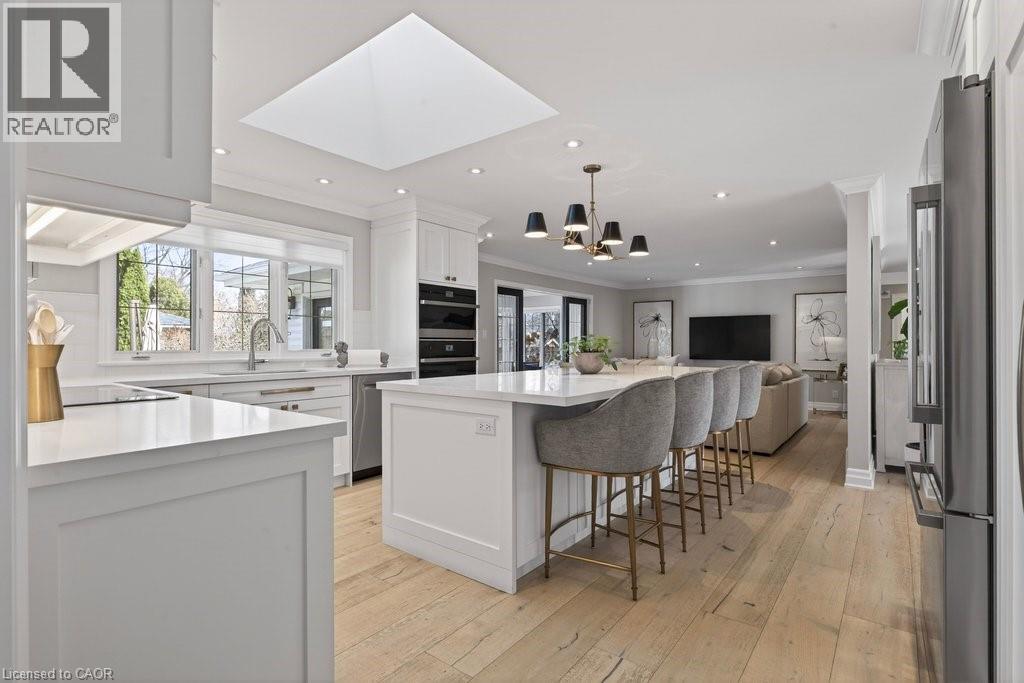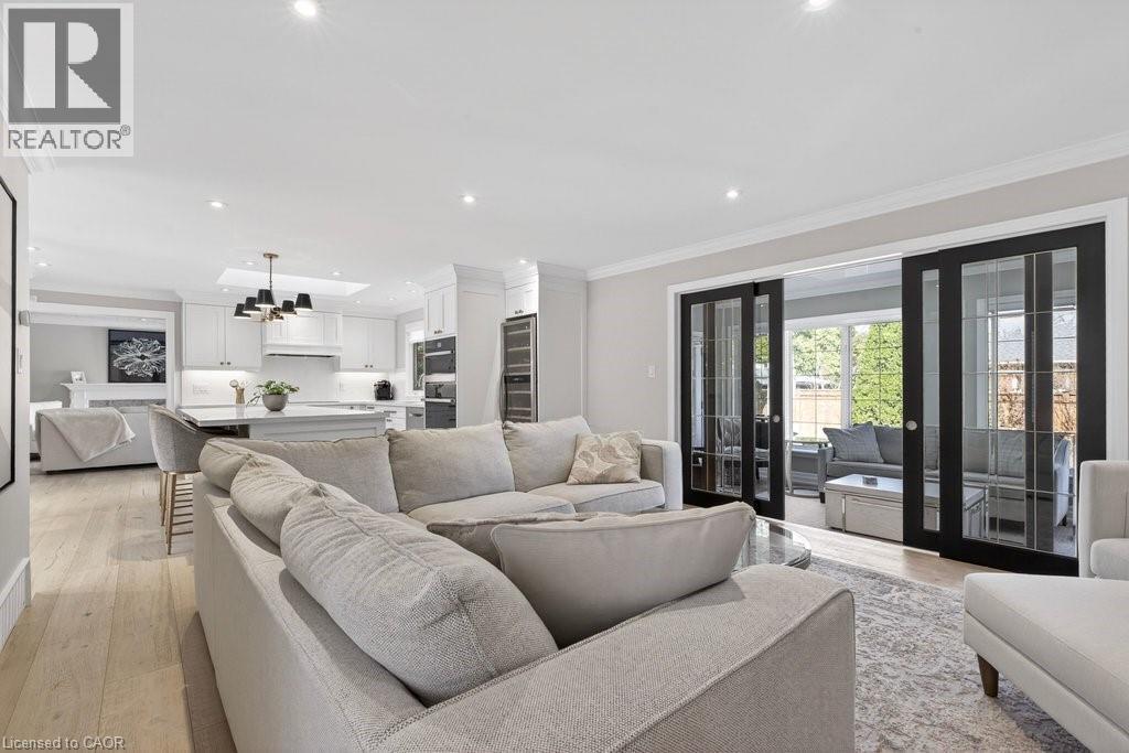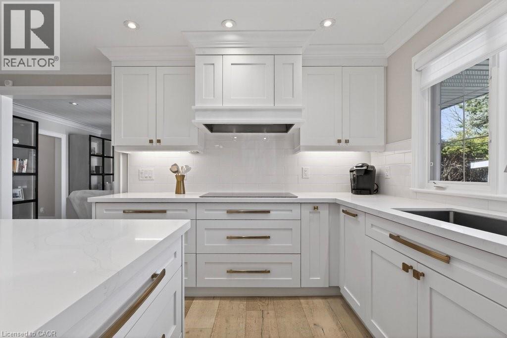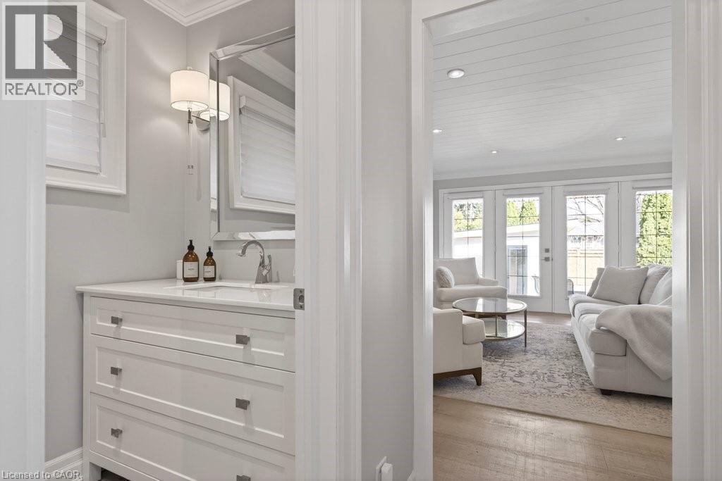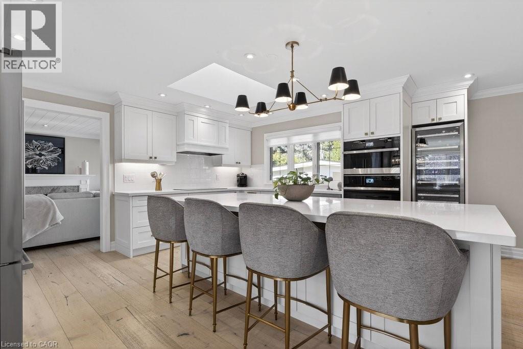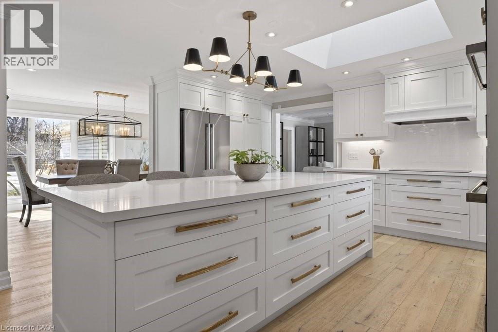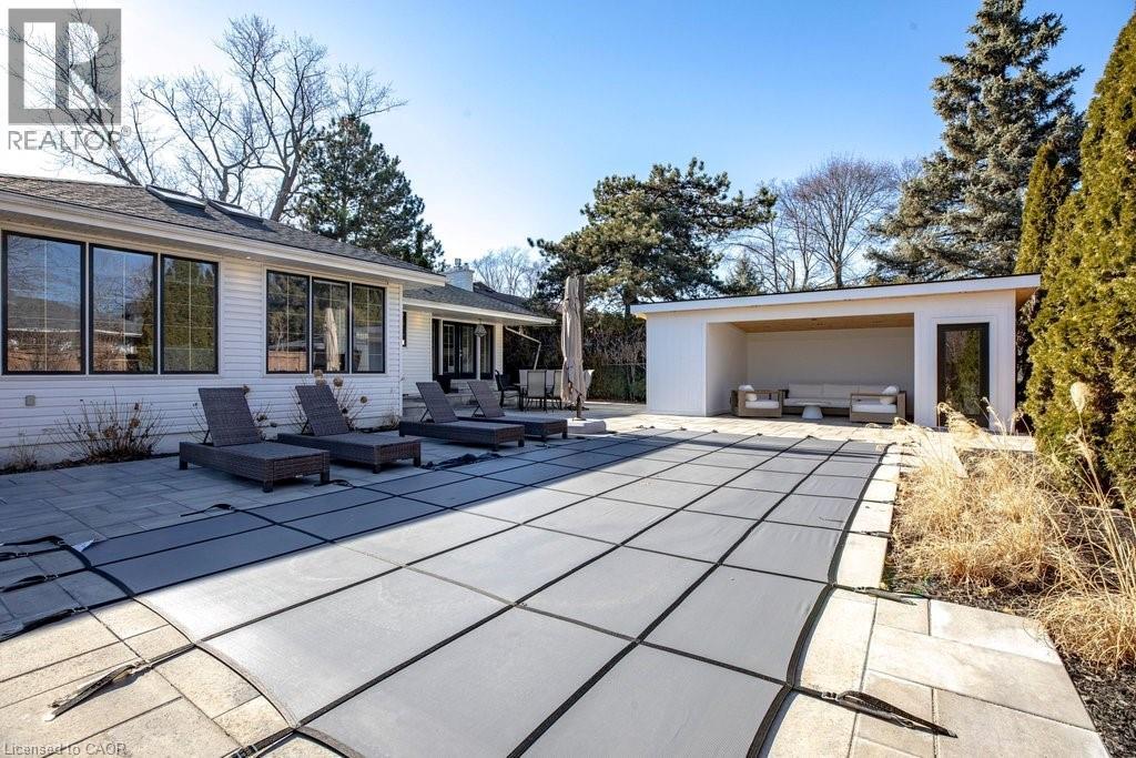 Stunning and absolutely beautiful ranch bungalow in sought-after Aldershot location! Steps to downtown, Burlington Golf & Country Club and LaSalle Park/Marina. 2,126 sq.ft. of open concept main level living space that features a custom kitchen with oversized island, quartz countertops, stainless steel appliances and wine fridge. Primary bedroom with custom built-ins, a 3-piece ensuite with heated floor, access to a walk-in closet/dressing room and a walkout to the 4-season sunroom. The main level also features a spacious family room, a second bedroom, a separate dining room and a living room with a gas fireplace and walkout to an incredible backyard oasis! The professionally designed and landscaped yard completed in 2025 features a heated fiberglass saltwater pool, cabana, gas fire pit, landscape lighting and a large stone patio with gas BBQ hookup. Additional features and finishes include engineered hardwood floors, crown moulding, pot lighting, multiple skylights and a professionally finished lower level with laundry, large crawl space for storage and an additional bedroom with access to a recent 4-piece bathroom (2024). Double garage with inside entry and epoxy floor and a recently updated circular driveway and front walkway (2025). 2+1 bedrooms and 3.5 bathrooms. (id:24334)
