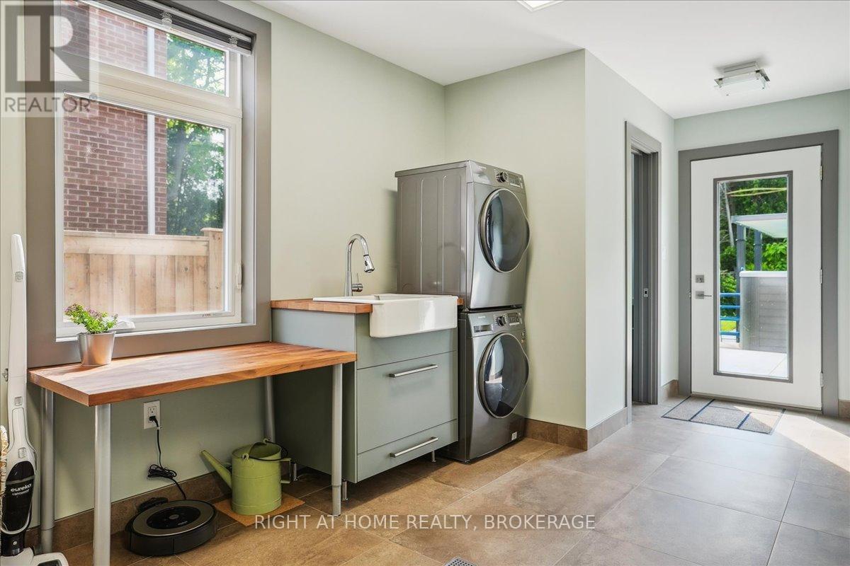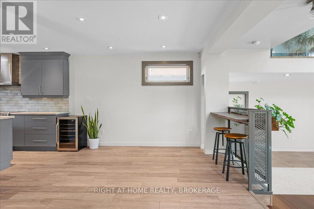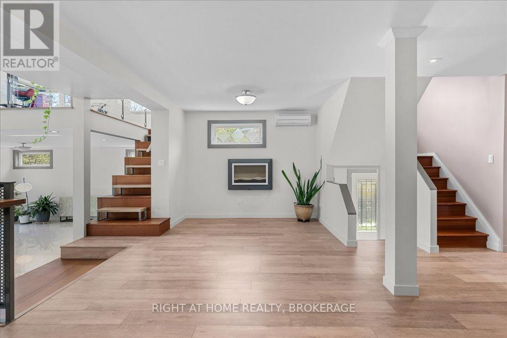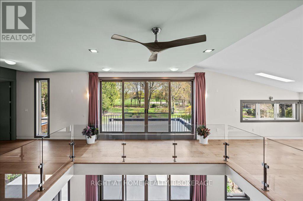 Thoughtfully reimagined in 2022 with contemporary California-style addition by Angelica Homes, this elegant home reflects lifestyle that values love of nature, craftsmanship & timeless design. Open-concept dining & living area with designer tiles and soaring wall of southeast-facing sliding doors & windows provides plenty of natural daylight. Back hallway with wardrobe closet, laundry and luxurious bathroom with Spanish designer tile accent wall and powder room leads to outdoors & swim spa. Architecturally crafted Brazilian Cherry/ Walnut staircase ascends to expansive 2nd level finished with Mercier hardwood floors. Its open layout, dual wrap-around mezzanine with custom glass railings is ideal for home office & gym/yoga space. Panoramic views from every window! Two tranquil bedrooms with oversized doors and stunning bathroom complete this level, which connects to primary suite by balcony with custom railings and triple sliding door. Main level includes modern kitchen with island & granite countertops, eating area, raised snack nook, cozy den and bedroom next to full bath. Fully finished lower level offers private entrance, family room with kitchenette, office, full bath and laundry. Energy-Efficient heat. and cool. System includes in-floor heating, radiators, heat pumps and AC. Private, backing onto city park 0.6-acre lot offers endless possibilities: tennis/basketball court/swimming pool. Spacious, covered concrete patio leads to insulated year-round extra-deep swim spa with powerful jets & automated Covana Cover. Oversized shed split between garden tools storage & hobby space. Front yard with circ. driveway offers10 park. spots & 2 in gated area, 2 Level2 electric charg. stations and prof. landscaped garden. Min. from downtown Burlington, waterfront, beach, LaSalle Park & Marina, RBG, biking trails, schools, shopping, this home offers ultimate blend of luxury, lifestyle, and location. Access to Burlington GO, major HW in Niagara and Toronto directions. (id:24334)