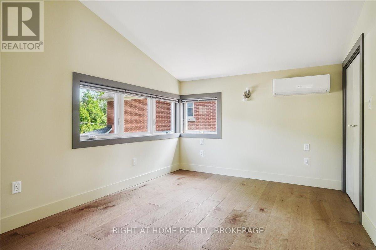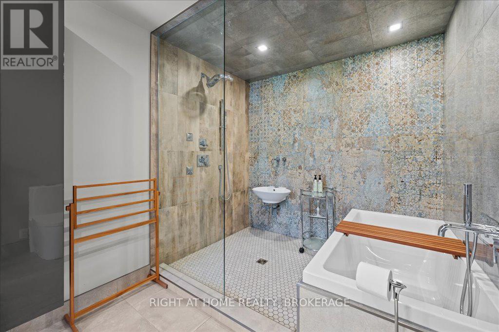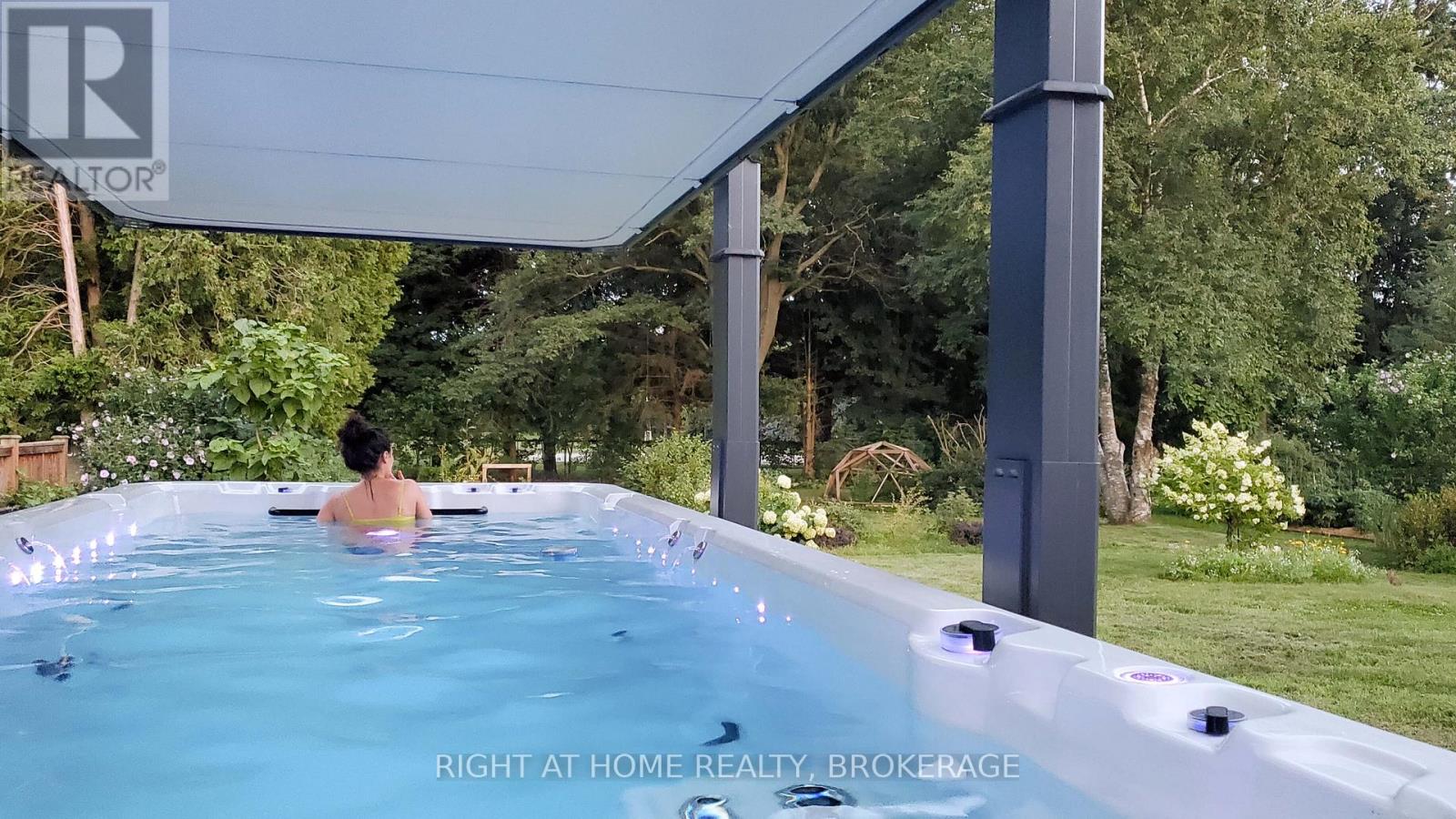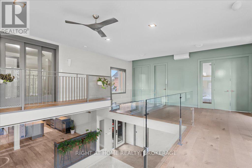 Thoughtfully reimagined in 2022 with contemporary California-style addition by Angelica Homes, this elegant home reflects lifestyle that values love of nature, craftsmanship & timeless design. Open-concept dining & living area with designer tiles and soaring wall of southeast-facing sliding doors & windows provides plenty of natural daylight. Back hallway with wardrobe closet, laundry and luxurious bathroom with Spanish designer tile accent wall and powder room leads to outdoors & swim spa. Architecturally crafted Brazilian Cherry/ Walnut staircase ascends to expansive 2nd level finished with Mercier hardwood floors. Its open layout, dual wrap-around mezzanine with custom glass railings is ideal for home office & gym/yoga space. Panoramic views from every window! Two tranquil bedrooms with oversized doors and stunning bathroom complete this level, which connects to primary suite by balcony with custom railings and triple sliding door. Main level includes modern kitchen with island & granite countertops, eating area, raised snack nook, cozy den and bedroom next to full bath. Fully finished lower level offers private entrance, family room with kitchenette, office, full bath and laundry. Energy-Efficient heat. and cool. System includes in-floor heating, radiators, heat pumps and AC. Private, backing onto city park 0.6-acre lot offers endless possibilities: tennis/basketball court/swimming pool. Spacious, covered concrete patio leads to insulated year-round extra-deep swim spa with powerful jets & automated Covana Cover. Oversized shed split between garden tools storage & hobby space. Front yard with circ. driveway offers10 park. spots & 2 in gated area, 2 Level2 electric charg. stations and prof. landscaped garden. Min. from downtown Burlington, waterfront, beach, LaSalle Park & Marina, RBG, biking trails, schools, shopping, this home offers ultimate blend of luxury, lifestyle, and location. Access to Burlington GO, major HW in Niagara and Toronto directions. (id:24334)