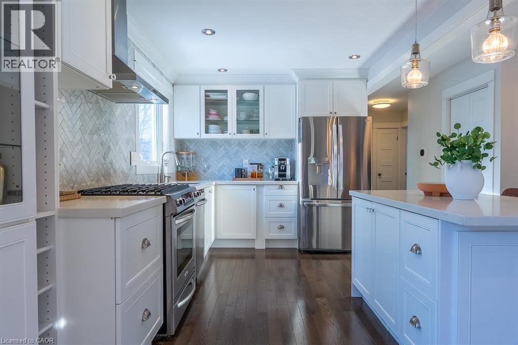 Welcome to this beautifully updated 3+1 bedroom home located in the quiet, well-established Aldershot neighbourhood known for its privacy and generous lot sizes. This home offers peace of mind with recent significant exterior and efficiency upgrades, including updated siding, energy-efficient windows and doors, and improved attic insulation. The main level features a bright, open-concept layout where the kitchen, dining, and living areas connect seamlessly, making this space ideal for both everyday living and entertaining. Modern finishes throughout are complemented by bright, functional bedrooms with smart layouts for comfortable living. The fully finished basement adds versatility by extending the living area with an additional bedroom, full 3 piece bathroom, and inviting family room, complete with a gas fireplace. Perfect for guests, family, or a flexible home office or gym setup. Step outside to a truly exceptional and private backyard backing The Francis Rd Bikeway. The expansive yard has been thoughtfully landscaped with added trees, fencing, and upgraded hardscaping. A brand new high quality composite deck and new sliding door create a seamless indoor-outdoor connection, ideal for entertaining or relaxing in a quiet, secluded setting. Ideally located with easy access to the QEW, 403, and 407 makes commuting simple, while Aldershot GO Station is just minutes away. Schools, parks, trails and everyday amenities are close at hand, along with Joseph Brant Hospital. Enjoy proximity to Burlington's Lakeshore, lined with cafés, restaurants, and shopping, as well as the Royal Botanical Gardens, local parks and trails, and nearby golf courses including Burlington Golf & Country Club. Don't miss the opportunity to own this move-in ready home in one of Burlington's most convenient locations. (id:24334)