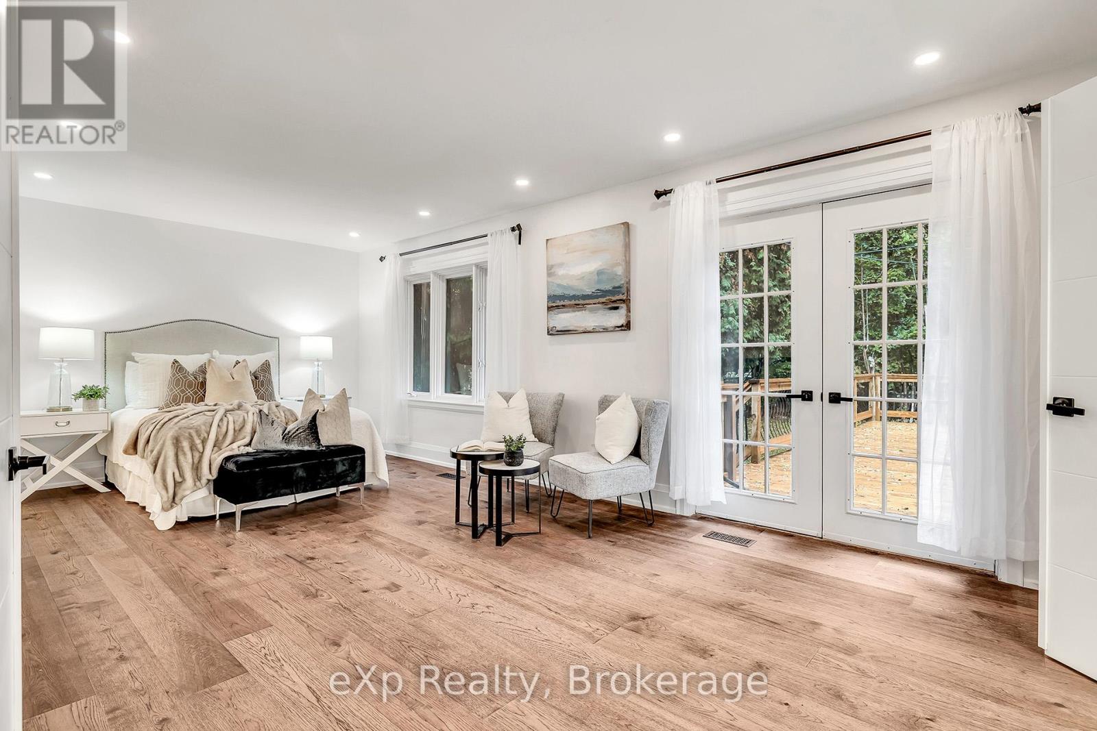 Nestled on one of South Aldershot's most serene, tree-lined streets-directly across from the Burlington Golf & Country Club-this fully reimagined luxury residence offers over 4,500 sq.ft. of refined living on an expansive 11,500+ sq.ft. lot. Every detail has been thoughtfully curated, showcasing exquisite craftsmanship, rich hardwood floors, and an abundance of natural light that fills the home with warmth and sophistication. The gourmet chef's dream kitchen serves as the heart of the home, featuring professional-grade appliances, quartz countertops, custom cabinetry, and a grand island overlooking the elegant family room with its 8-ft electric fireplace, large windows, and patio doors opening to the sun-soaked deck. The primary suite is a haven of serenity, complete with a custom walk-in closet and spa-inspired ensuite boasting heated floors, a freestanding soaking tub, glass shower, and dual vanities. Upstairs offers a private living area with a kitchenette, lounge, and ensuite bedroom-perfect for extended family or guests. The finished basement provides yet another private living space with two additional bedrooms, ideal for multi-generational living. Step outside to your private backyard oasis, featuring a new pool liner, sprawling 1,100 sq.ft. deck, lush professional landscaping, and mature trees offering total privacy. Enhanced with CCTV surveillance, new plumbing and electrical, heated floors in all bathrooms, and parking for 11 vehicles. Ideally located minutes from the lake, LaSalle Park, top-rated schools, shops, and major highways. (id:24334)