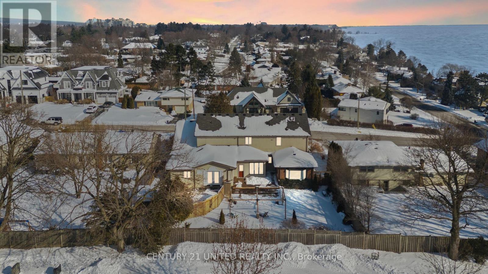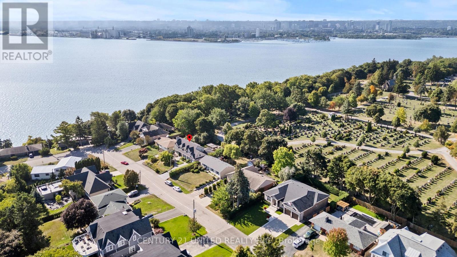 Welcome to this exceptional 6-bed, 5-bath residence offering stunning waterfront views, ideally located on a quiet street in highly sought-after South Aldershot. Designed for multi-generational living, this versatile home features a fully self-contained main-floor in-law suite with its own private entrance, backyard, kitchen, laundry, vaulted ceilings, & cozy gas fireplace.The main residence impresses with outstanding curb appeal, beautifully landscaped gardens, an interlock & stone walkway & breathtaking bay waterfront views right from your front seating area. Inside, the main floor showcases tile flooring, a thoughtful layout, & an updated custom kitchen complete with stainless steel appliances, quartz countertops, & a bright, sitting area. The formal living & dining features hardwood floors, a wood fireplace, & a wall of windows that perfectly frame the spectacular water views. Updates include new downstairs furnace (2025), upstairs furnace (2023), kitchen remodel (2024), all bathrooms updated (2024), New roof, soffit/ fascia (2020), fresh paint, updated light fixtures & more. The second level features four spacious beds all with water views, including a large primary suite with a spa-style ensuite bath. The lower level features an additional bed, expansive rec room, dedicated gym space, bonus den, & generous laundry with built-in cabinetry, offering flexibility for future use, including the potential for a 3rd kitchen. Outdoor living is impressive, with a spacious fully fenced main backyard offering a deck, pergola with shade, & a beautifully landscaped, expansive patio ideal for entertaining or relaxing. The garage has an unfinished loft space above, offering potential for additional living area to complement the in-law suite. Enjoy city living with lake views, just an 8-min drive to GO Station. 5 min drive to LaSalle Marina & Park, 11 min drive to Spencer Smith Park. A truly one-of-a-kind opportunity to live by the water while enjoying all modern amenities. (id:24334)