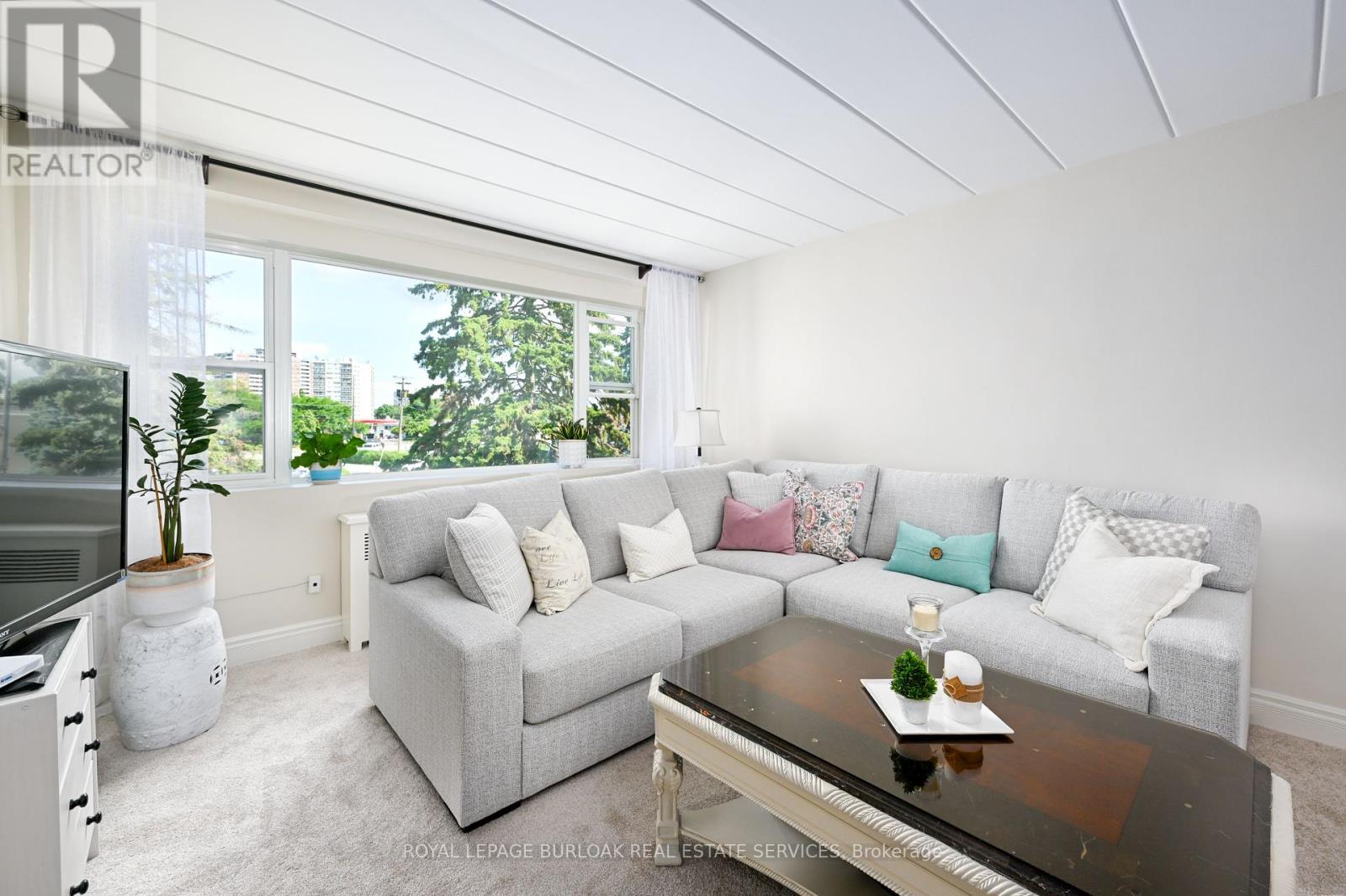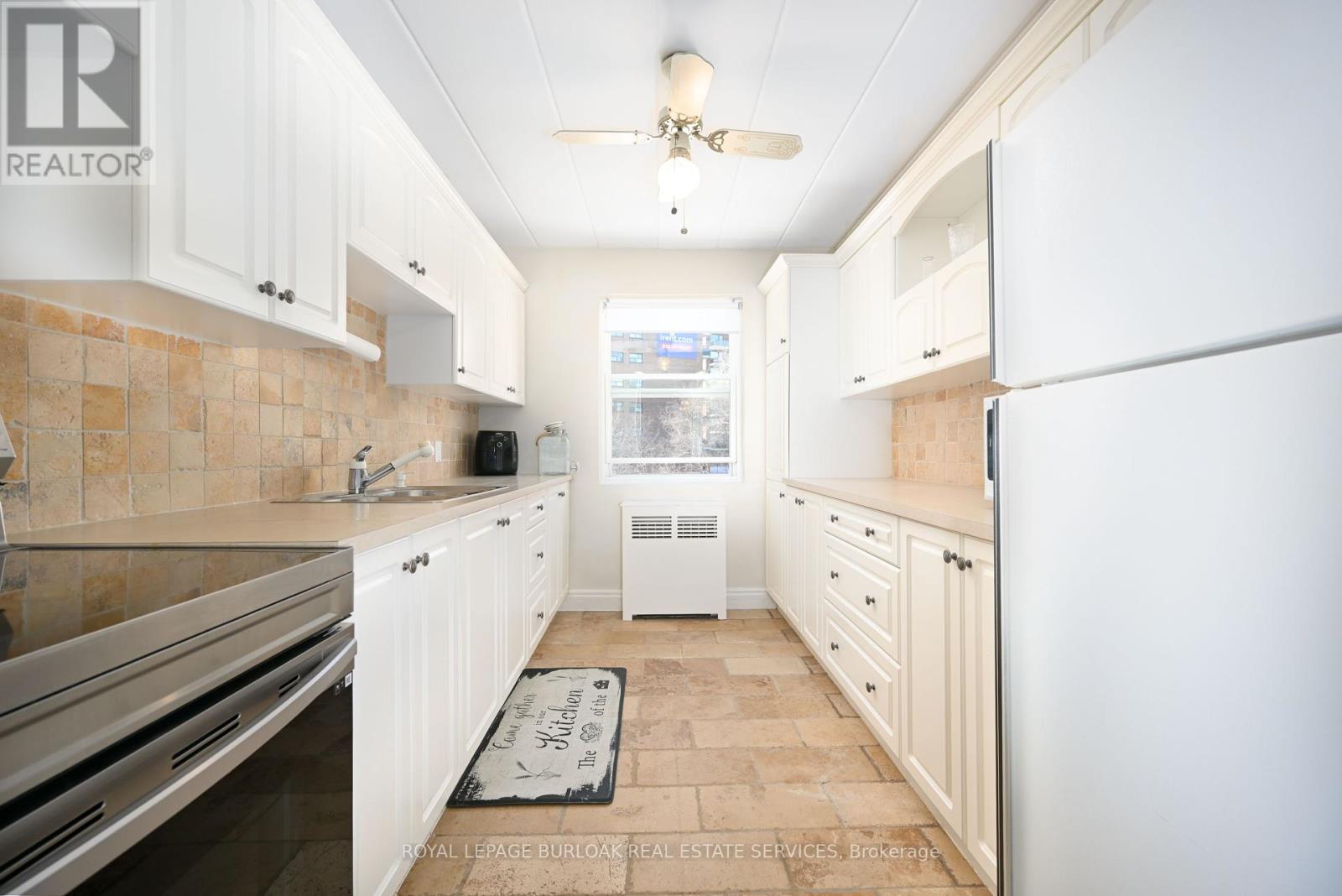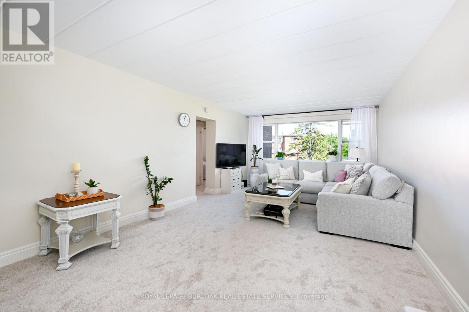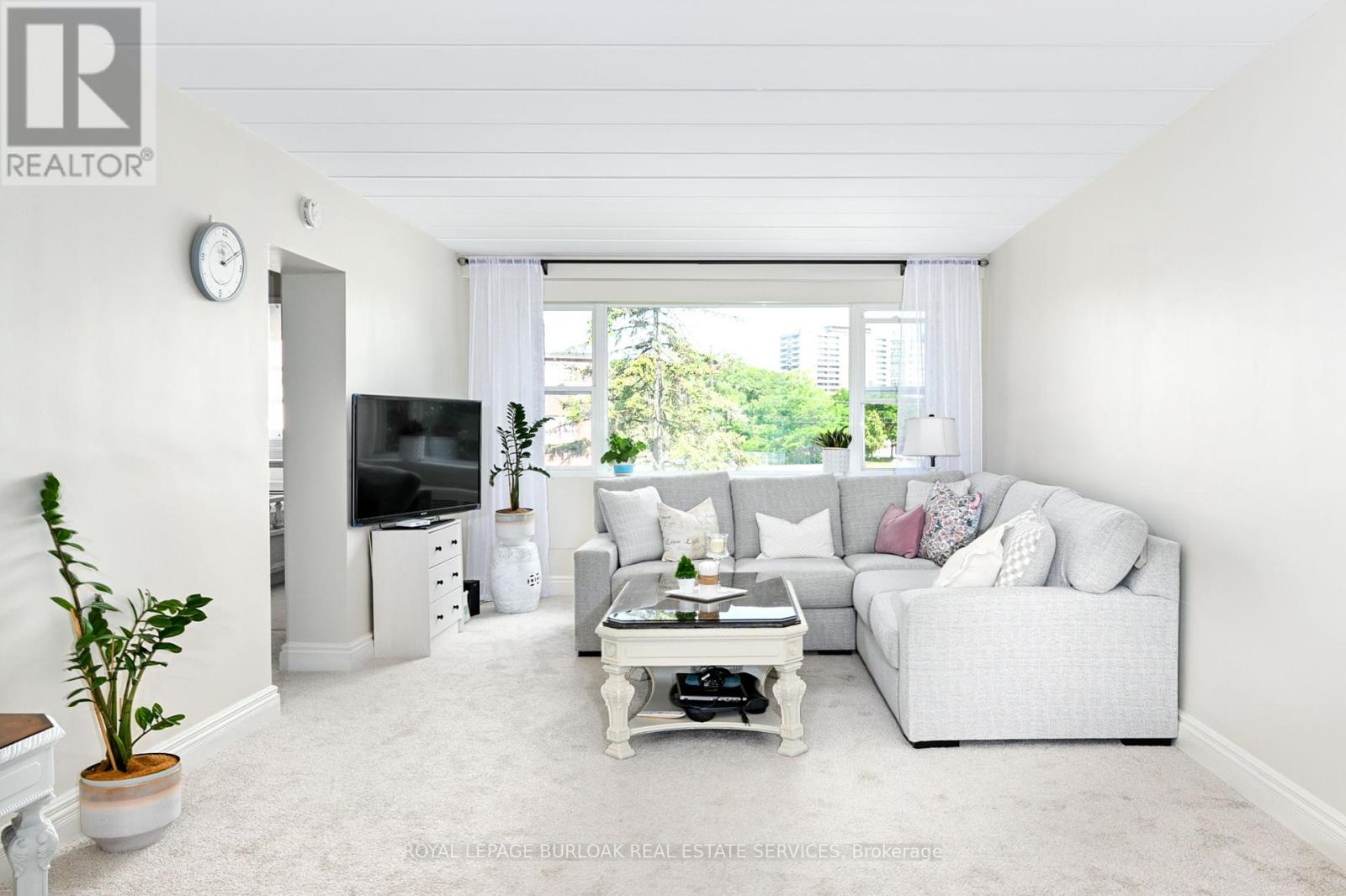Welcome to this bright and spacious, 855sqft, 2 bedroom corner unit with lots of windows and lots of natural light, in a fantastic and highly desirable central Burlington location, close to shops, dining, downtown Burlington, hospital, highways, rec/community centre, library, parks, trails, and endless other great amenities. This unit has spacious principal rooms, is an inviting and functional space ideal for those downsizing, or young professionals, and also offers an updated kitchen with high-quality white cabinetry, backsplash, travertine tile floors, newer stainless steel stove, pantry, double sink, and lots of cupboard and countertop space, 2 spacious bedrooms including the primary with large windows overlooking the courtyard and trees, an updated 4-piece bathroom, a large living room with picture windows overlooking open space and trees, a spacious dining room off of the kitchen, quality vinyl windows updated in 2018, and freshly painted throughout. This unit is very clean, fresh, and comfortable, and shows 10++. The building is located at the back of the complex, well off the road, and backs on to lawn area, and walking and biking trails. The building is very quiet and well-maintained. The building amenities also include a storage locker, visitor parking, and onsite laundry. The unit comes with 1 parking space, with potential to rent a 2nd spot if needed. The low monthly maintenance fee includes PROPERTY TAX, heat, water, parking, locker, building insurance, exterior maintenance, and visitor parking. No pets (unless service animal), and no rentals/leasing. Don't wait and miss your opportunity to call this beautiful unit Home! Dare to compare! Welcome Home! (id:24334)