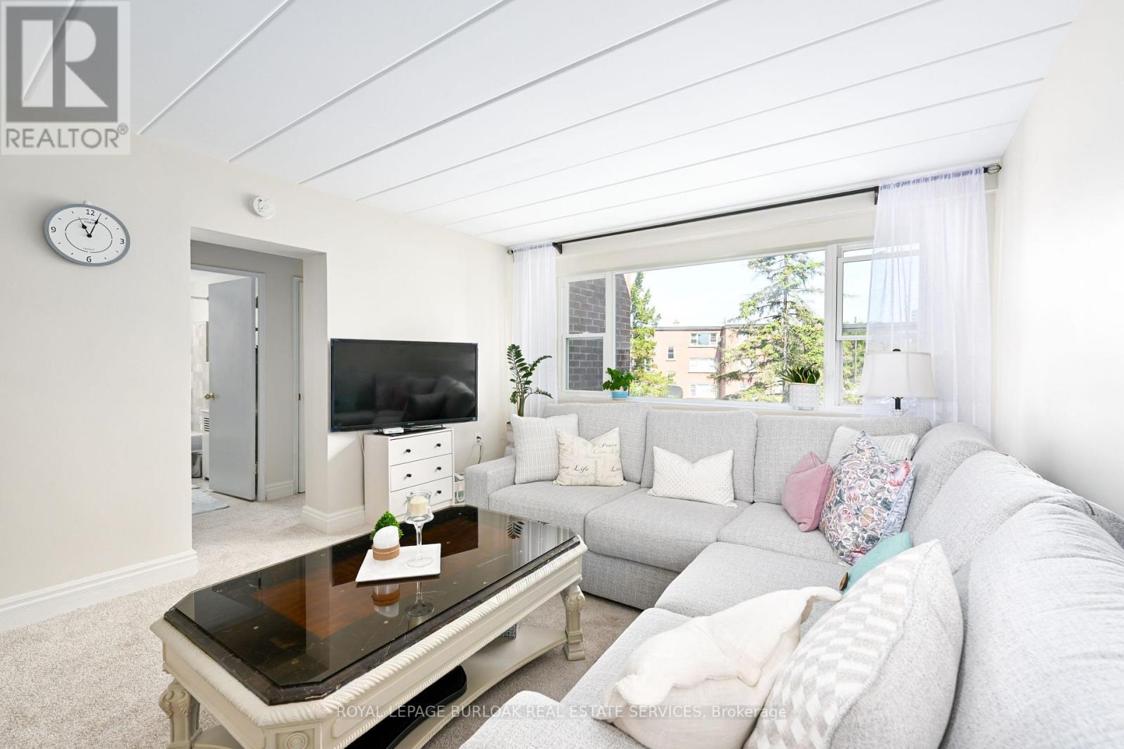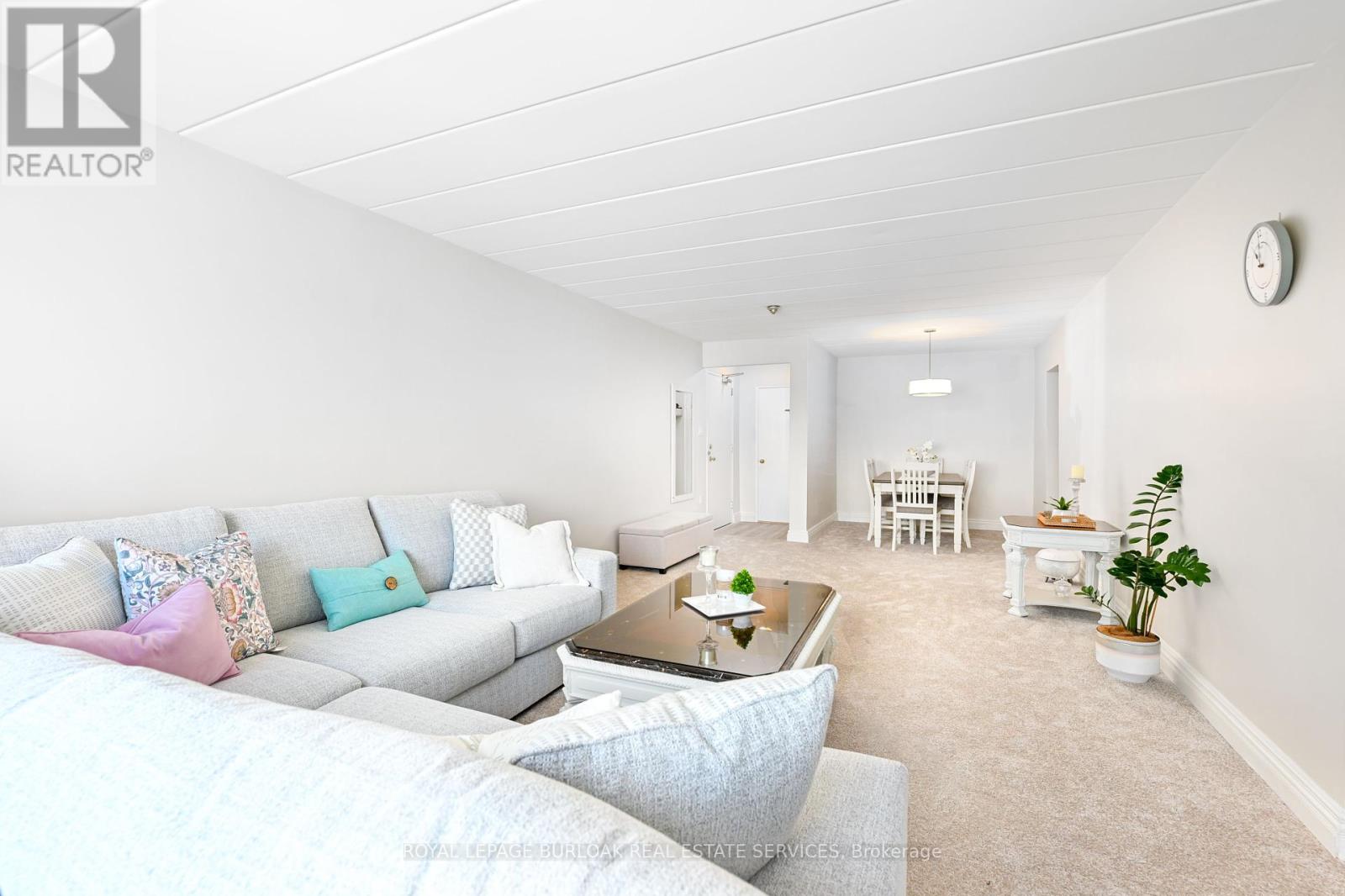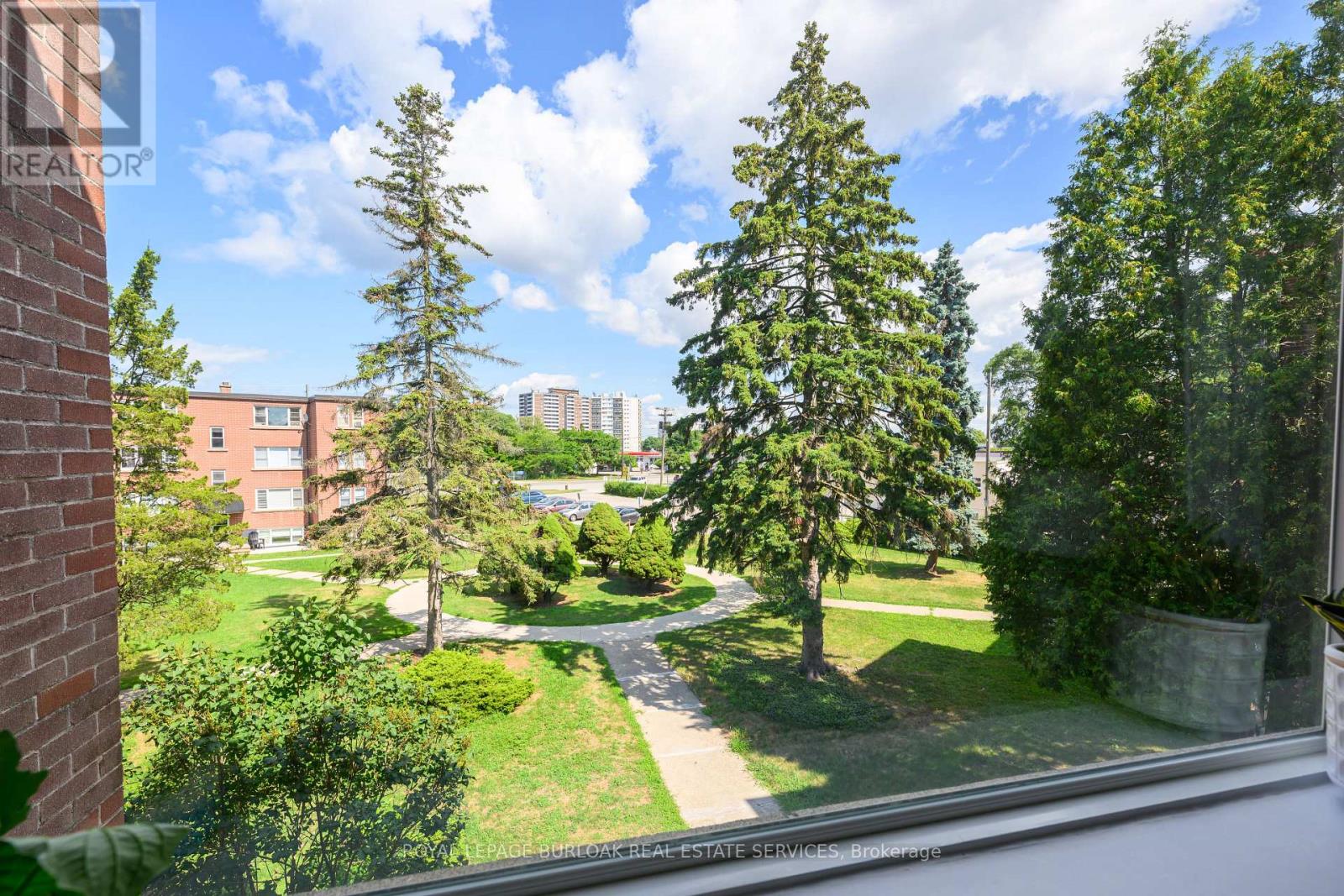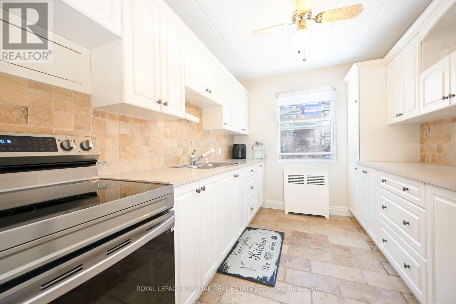 Welcome to this bright and spacious, 855sqft, 2 bedroom corner unit with lots of windows and lots of natural light, in a fantastic and highly desirable central Burlington location, close to shops, dining, downtown Burlington, hospital, highways, rec/community centre, library, parks, trails, and endless other great amenities. This unit has spacious principal rooms, is an inviting and functional space ideal for those downsizing, or young professionals, and also offers an updated kitchen with high-quality white cabinetry, backsplash, travertine tile floors, newer stainless steel stove, pantry, double sink, and lots of cupboard and countertop space, 2 spacious bedrooms including the primary with large windows overlooking the courtyard and trees, an updated 4-piece bathroom, a large living room with picture windows overlooking open space and trees, a spacious dining room off of the kitchen, quality vinyl windows updated in 2018, and freshly painted throughout. This unit is very clean, fresh, and comfortable, and shows 10++. The building is located at the back of the complex, well off the road, and backs on to lawn area, and walking and biking trails. The building is very quiet and well-maintained. The building amenities also include a storage locker, visitor parking, and onsite laundry. The unit comes with 1 parking space, with potential to rent a 2nd spot if needed. The low monthly maintenance fee includes PROPERTY TAX, heat, water, parking, locker, building insurance, exterior maintenance, and visitor parking. No pets (unless service animal), and no rentals/leasing. Don't wait and miss your opportunity to call this beautiful unit Home! Dare to compare! Welcome Home! (id:24334)
