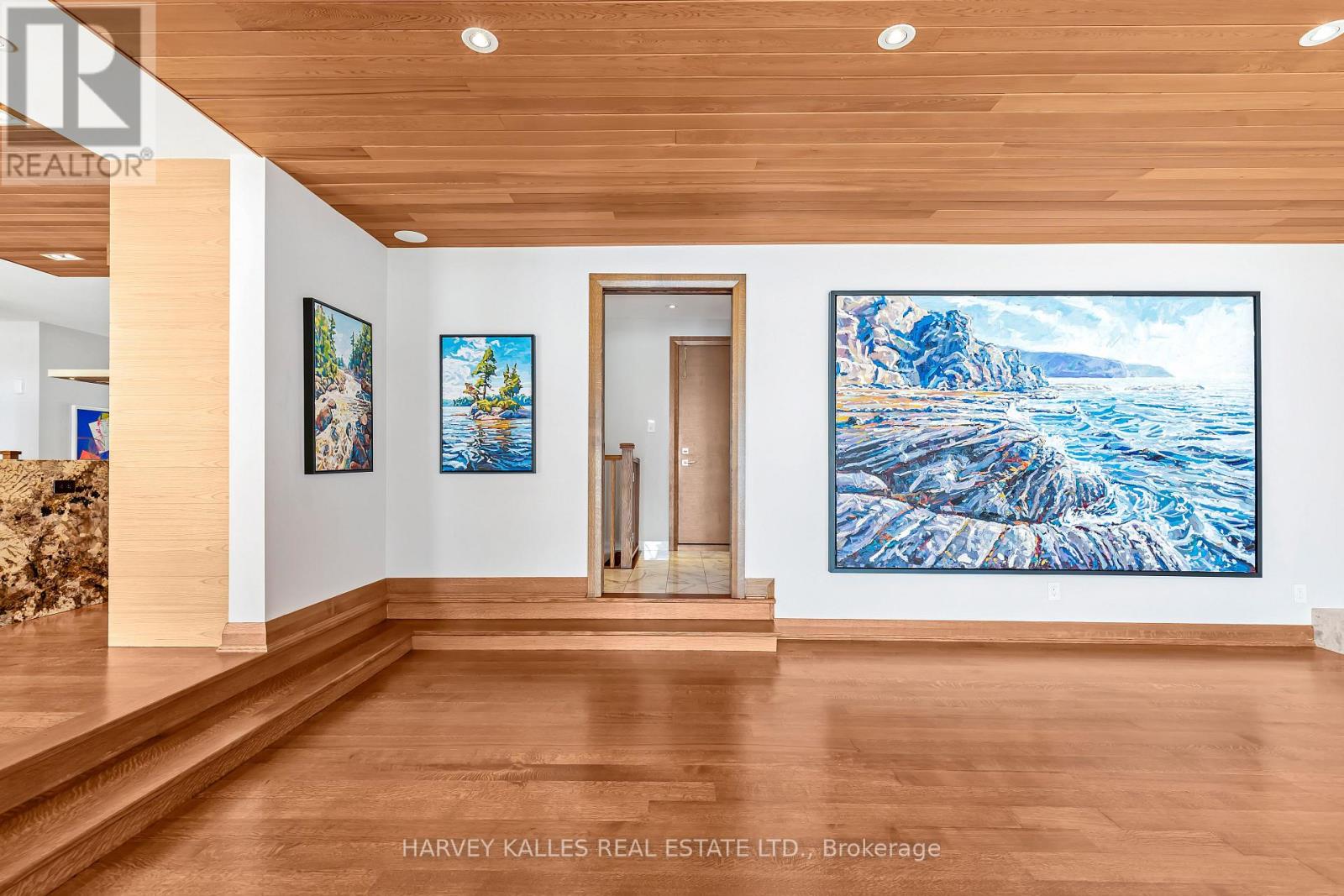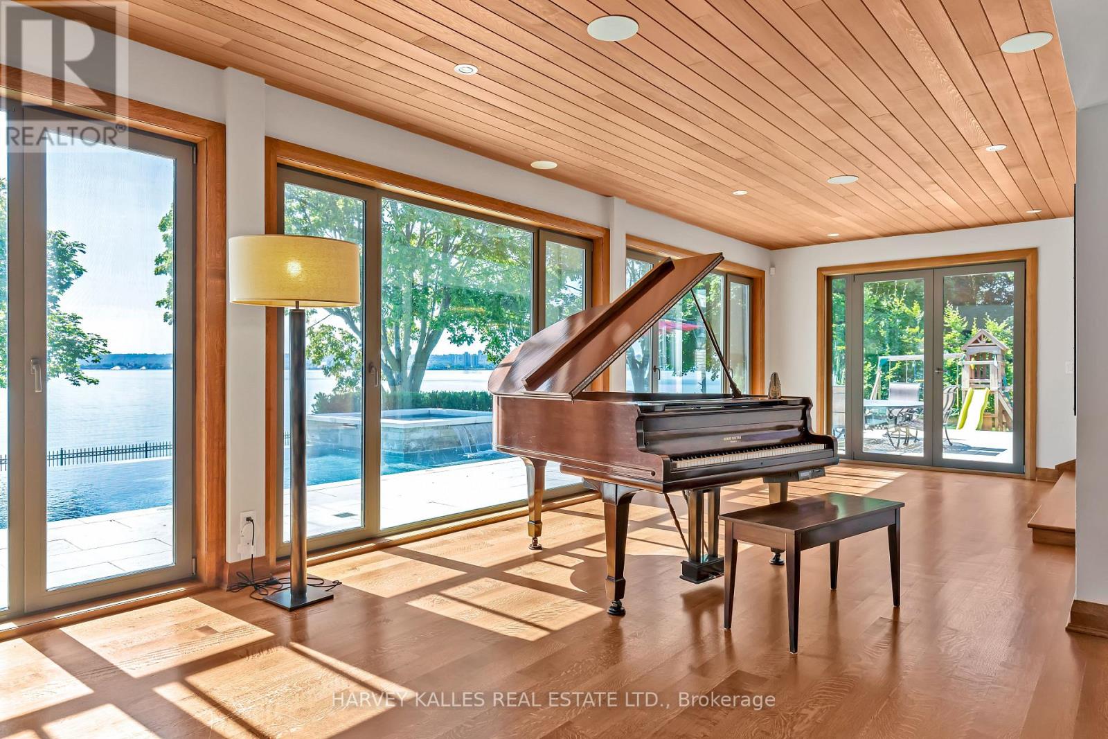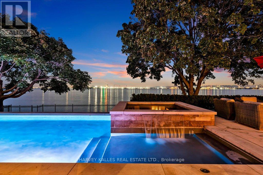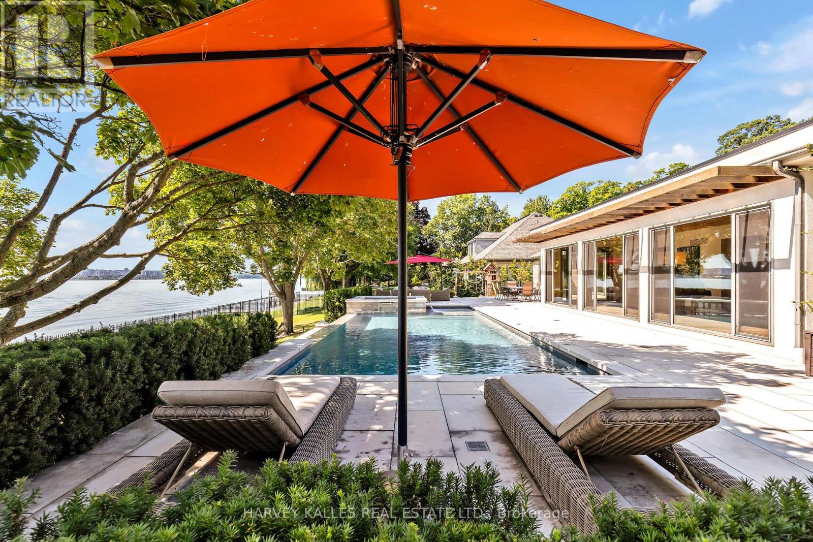 Exclusive ultra-private, this street is home to many of Canada's most prominent families. Located on the shores of Lake ON it has almost an acre, with Burlington and Oakville mins away. The multi-million reno on this bungalow has transformed it into open concept west coast modern aesthetic using natural materials of wood, marble, stone and granite. The architecture embraces the natural setting offering multiple glass walk-outs to the water and views from all the principal rooms. The hot tub, pool with infinity edge overlooking the Bay is irresistible! One a few properties that are allows for a dock. Imagine, after work, you pop into your boat or kayak for a quick work out before slipping into the hot tub. The Great Room has a book matched marble floor to ceiling marble fireplace that is calling for a roaring fire on a winters night. The Observatory Room is special place, whether it is evening drinks or morning cappuccino you will find yourself drawn to sit and watch the lake. **EXTRAS** Air exchanger, Alarm system. Separate heating controls, hot water tank & Irrigation system. (id:24334)