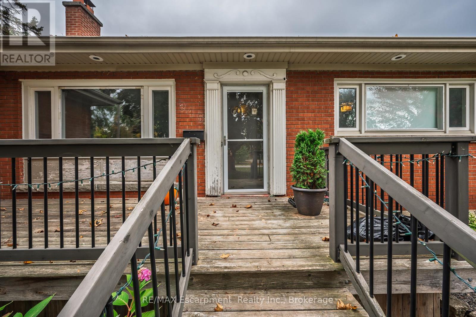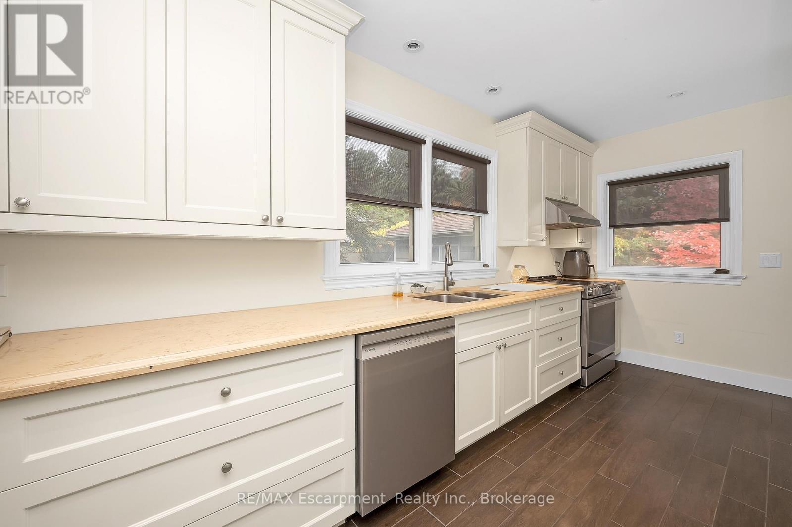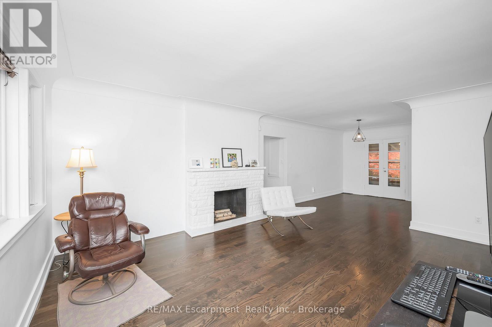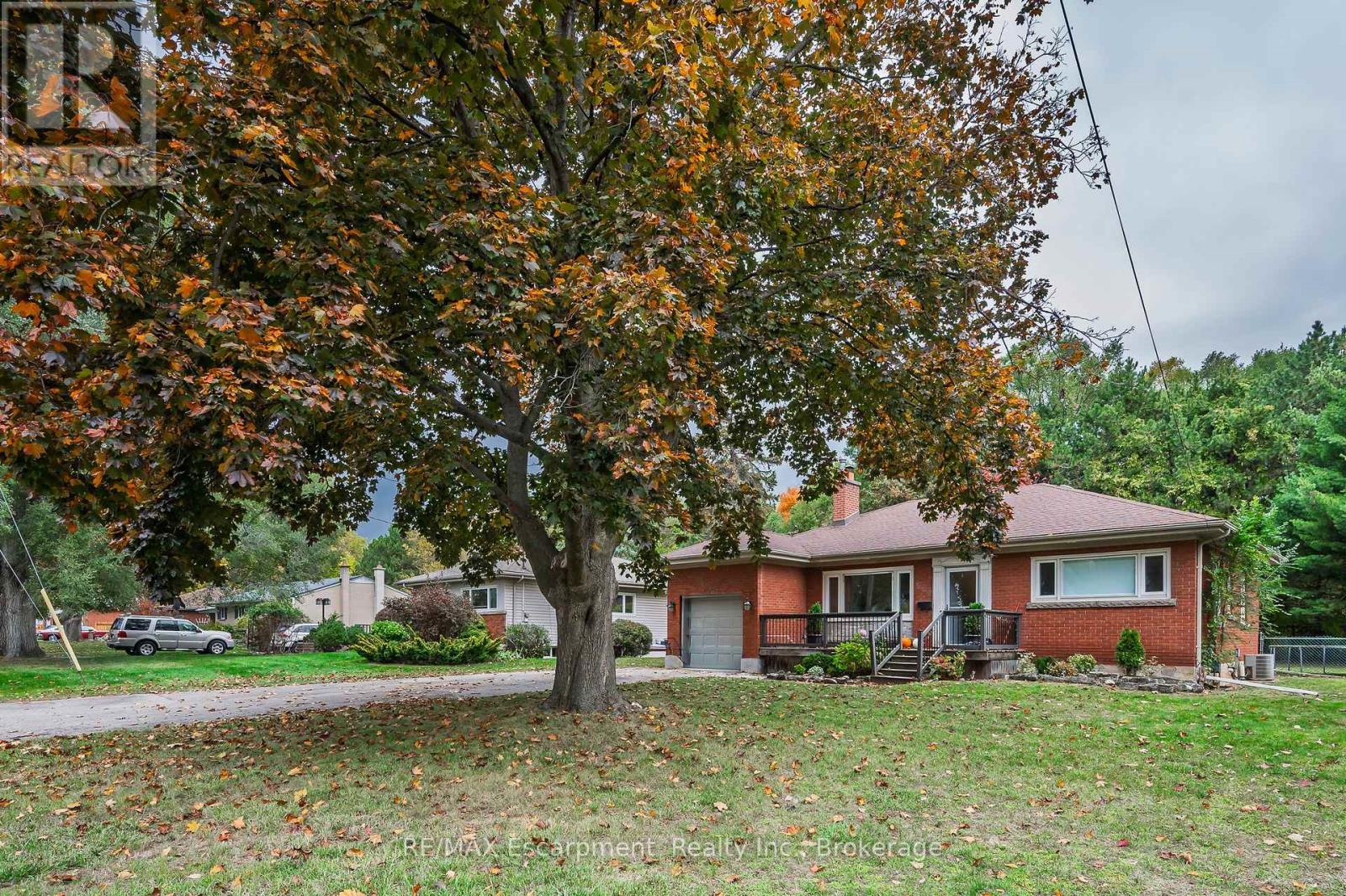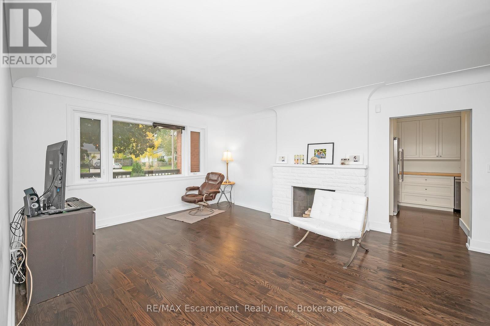 Step into a home brimming with potential in the sought-after South Aldershot community. Filled with natural light and solid, timeless bones, this property offers a rare opportunity to reimagine a classic residence on a 75 x 135 ft lot framed by mature trees and ravine views. The welcoming front porch sets the tone with charming red brick, white trim, and wood-plank flooring. Inside, the main floor features a practical, light-filled layout. The living room anchors the space with its generous proportions, original character, and classic brick fireplace-large windows brighten the room throughout the day. Adjacent to the kitchen, the dining area offers easy flow for everyday living and entertaining. Expansive windows and glass doors connect to the backyard, showcasing the lot's depth and privacy. The kitchen blends charm and function with cream cabinetry, warm wood accents, stainless steel appliances, and abundant natural light. The bedrooms are bright and comfortable with hardwood floors, neutral finishes, and practical layouts suited to any style. The main bathroom features a clean, updated aesthetic with a four-piece layout and ensuite privilege from the primary bedroom. A standout feature is the detached studio-an adaptable space ideal for a home office, creative studio, gym, or hobby room. With durable flooring, neutral finishes, and an as-is heating/cooling system, it expands your possibilities. The open, unfinished basement offers a generous footprint for future customization. With concrete floors, exposed ceiling joists, natural light, and a four-piece bathroom (as-is), it's a solid base for your vision. Outdoors, the backyard is truly special. Backing onto a lush ravine and surrounded by mature trees, it offers privacy and serenity. A covered deck extends the living space outdoors-perfect for quiet mornings or relaxed entertaining. With its level lawn and generous size, the property provides ample room for gardening, play, or future projects. (id:24334)