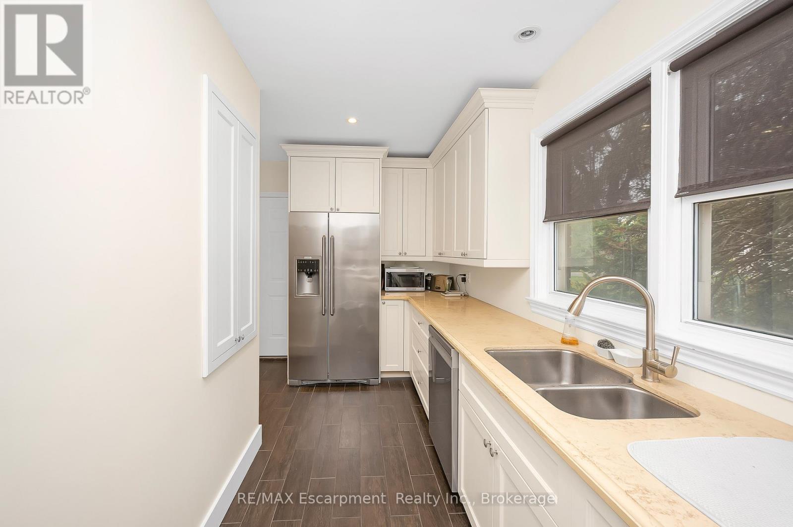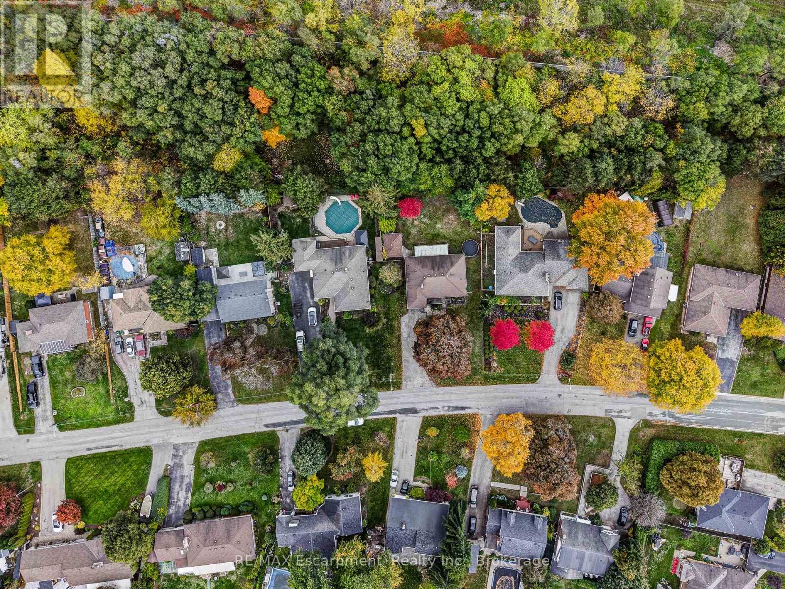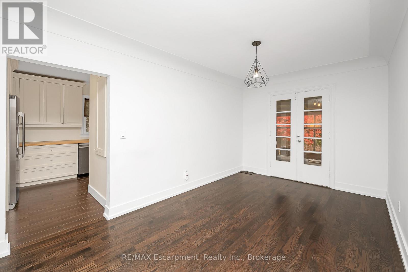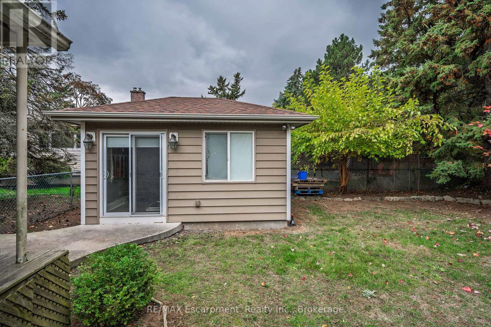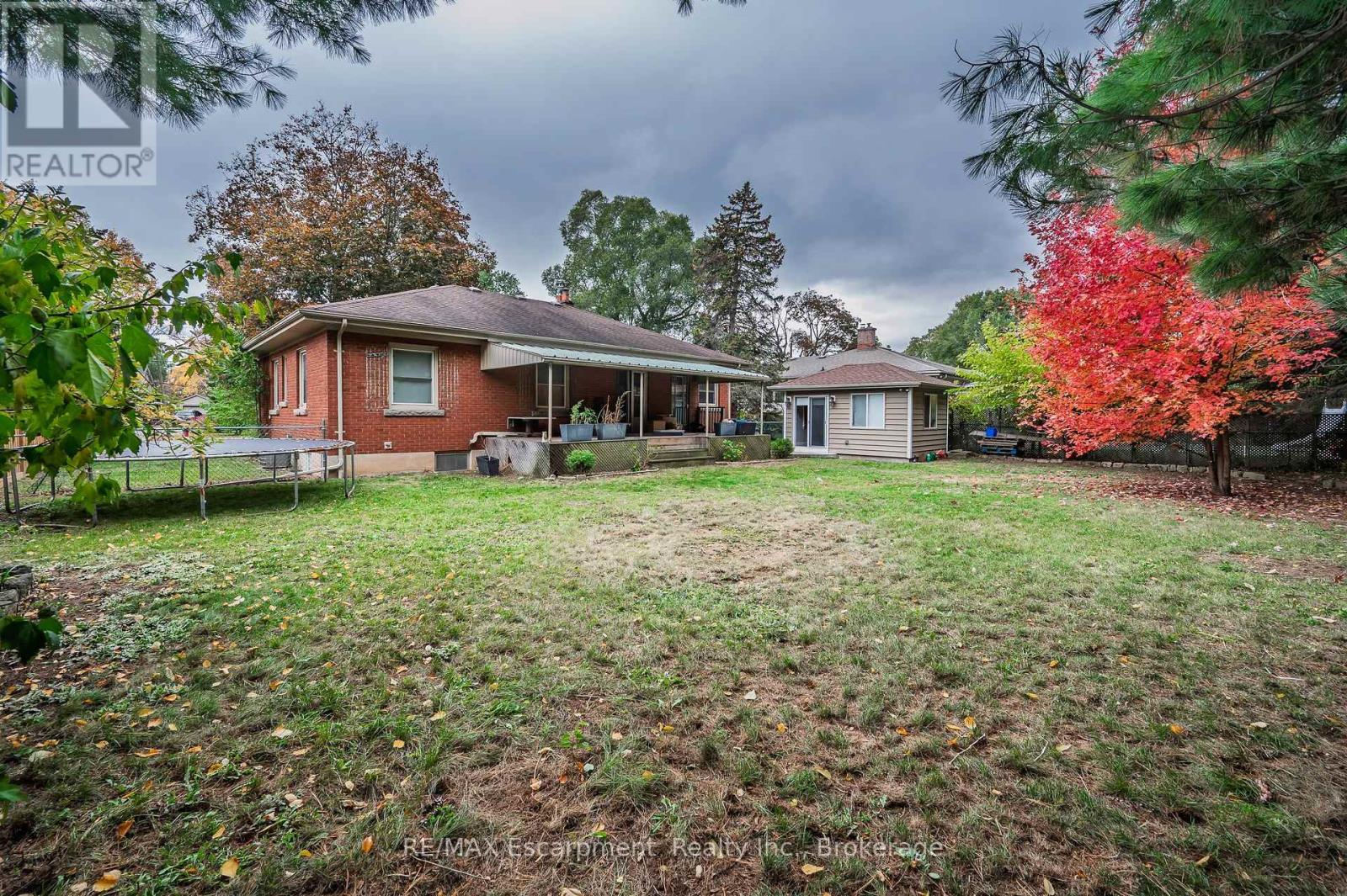 Step into a home brimming with potential in the sought-after South Aldershot community. Filled with natural light and solid, timeless bones, this property offers a rare opportunity to reimagine a classic residence on a 75 x 135 ft lot framed by mature trees and ravine views. The welcoming front porch sets the tone with charming red brick, white trim, and wood-plank flooring. Inside, the main floor features a practical, light-filled layout. The living room anchors the space with its generous proportions, original character, and classic brick fireplace-large windows brighten the room throughout the day. Adjacent to the kitchen, the dining area offers easy flow for everyday living and entertaining. Expansive windows and glass doors connect to the backyard, showcasing the lot's depth and privacy. The kitchen blends charm and function with cream cabinetry, warm wood accents, stainless steel appliances, and abundant natural light. The bedrooms are bright and comfortable with hardwood floors, neutral finishes, and practical layouts suited to any style. The main bathroom features a clean, updated aesthetic with a four-piece layout and ensuite privilege from the primary bedroom. A standout feature is the detached studio-an adaptable space ideal for a home office, creative studio, gym, or hobby room. With durable flooring, neutral finishes, and an as-is heating/cooling system, it expands your possibilities. The open, unfinished basement offers a generous footprint for future customization. With concrete floors, exposed ceiling joists, natural light, and a four-piece bathroom (as-is), it's a solid base for your vision. Outdoors, the backyard is truly special. Backing onto a lush ravine and surrounded by mature trees, it offers privacy and serenity. A covered deck extends the living space outdoors-perfect for quiet mornings or relaxed entertaining. With its level lawn and generous size, the property provides ample room for gardening, play, or future projects. (id:24334)