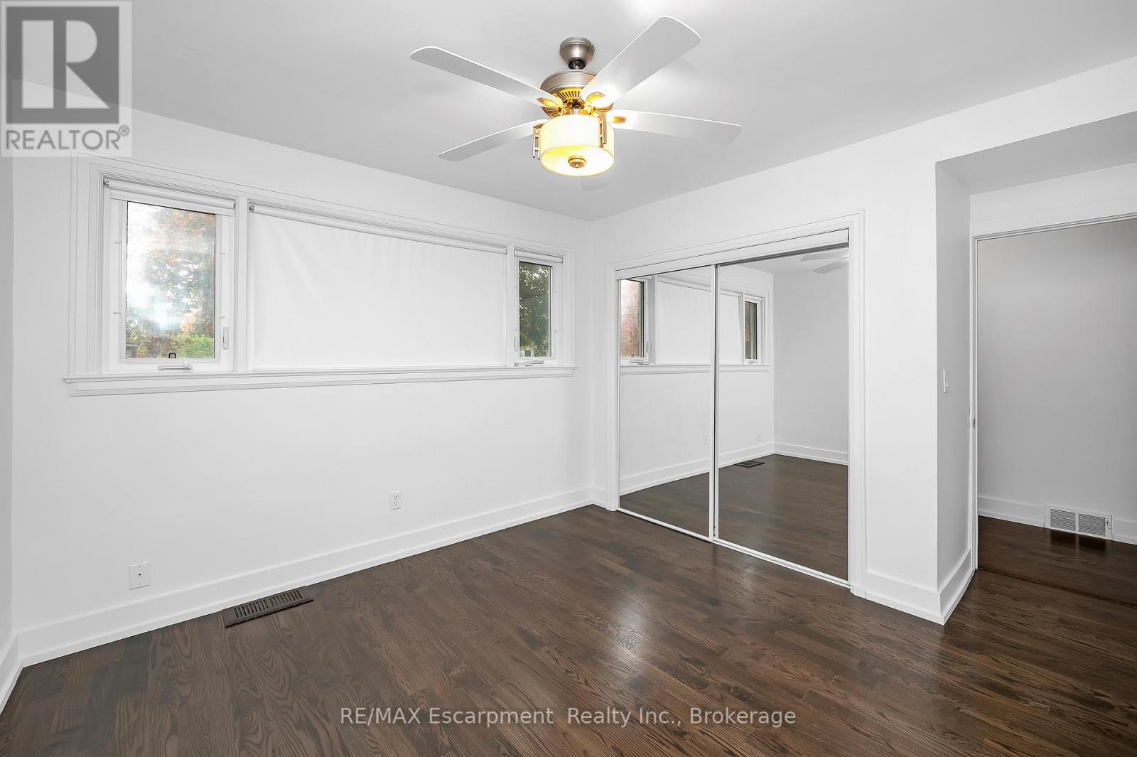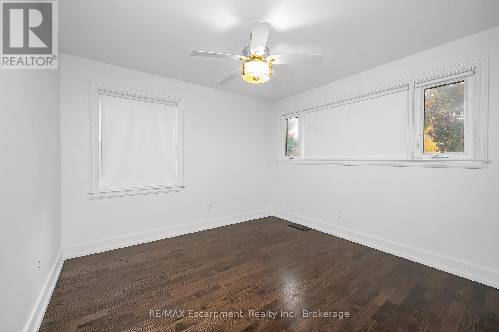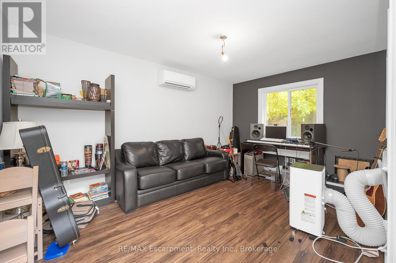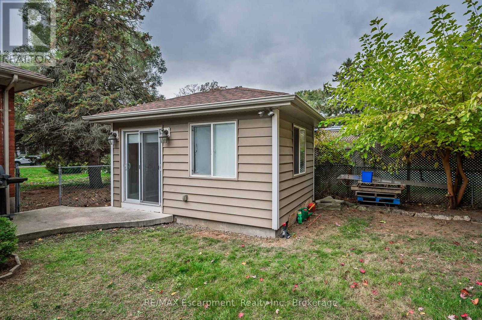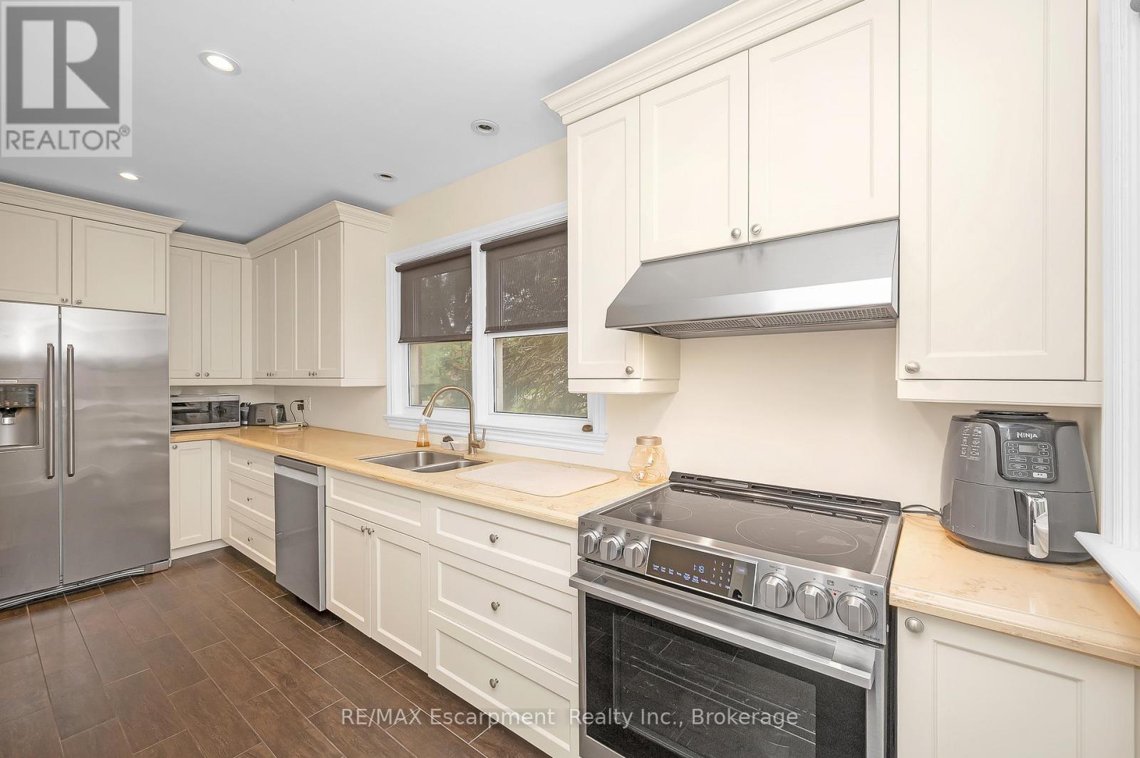 Step into a home brimming with potential in the sought-after South Aldershot community. Filled with natural light and solid, timeless bones, this property offers a rare opportunity to reimagine a classic residence on a 75 x 135 ft lot framed by mature trees and ravine views. The welcoming front porch sets the tone with charming red brick, white trim, and wood-plank flooring. Inside, the main floor features a practical, light-filled layout. The living room anchors the space with its generous proportions, original character, and classic brick fireplace-large windows brighten the room throughout the day. Adjacent to the kitchen, the dining area offers easy flow for everyday living and entertaining. Expansive windows and glass doors connect to the backyard, showcasing the lot's depth and privacy. The kitchen blends charm and function with cream cabinetry, warm wood accents, stainless steel appliances, and abundant natural light. The bedrooms are bright and comfortable with hardwood floors, neutral finishes, and practical layouts suited to any style. The main bathroom features a clean, updated aesthetic with a four-piece layout and ensuite privilege from the primary bedroom. A standout feature is the detached studio-an adaptable space ideal for a home office, creative studio, gym, or hobby room. With durable flooring, neutral finishes, and an as-is heating/cooling system, it expands your possibilities. The open, unfinished basement offers a generous footprint for future customization. With concrete floors, exposed ceiling joists, natural light, and a four-piece bathroom (as-is), it's a solid base for your vision. Outdoors, the backyard is truly special. Backing onto a lush ravine and surrounded by mature trees, it offers privacy and serenity. A covered deck extends the living space outdoors-perfect for quiet mornings or relaxed entertaining. With its level lawn and generous size, the property provides ample room for gardening, play, or future projects. (id:24334)